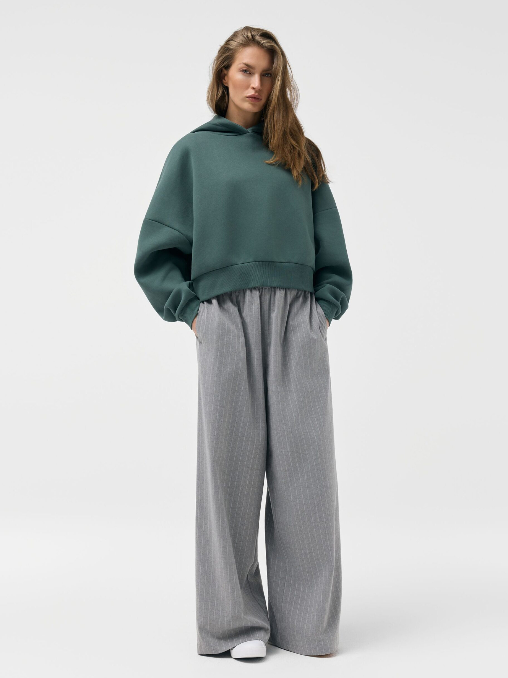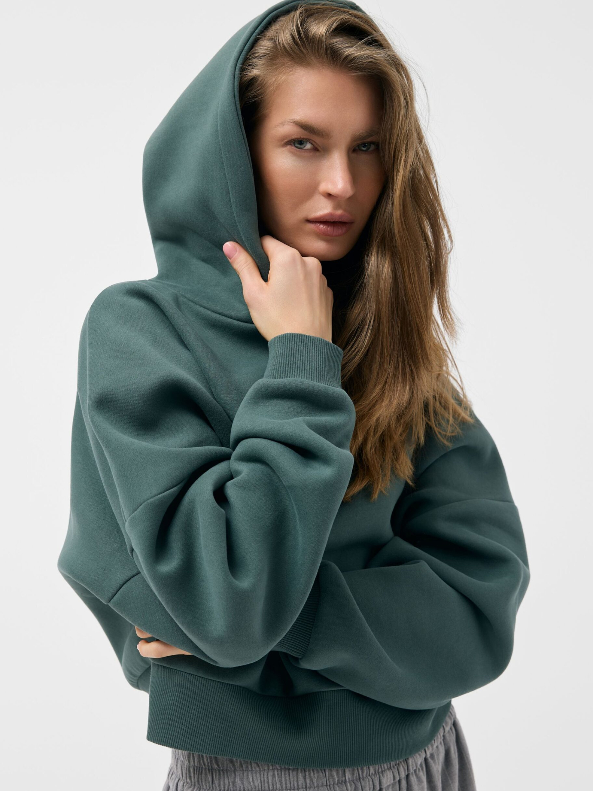 Худи FURRE B 261 / ID: 10048827 Рост модели: 177 см Размер товара: S Свободное женское худи удобного кроя: - объемный капюшон, - лого под капюшоном, - хлопковая ткань, - укороченный крой, - низ и рукава толстовки обработаны резинками. Прекрасно подойдет для повседневных городских образов в теплые дни. Внешний состав 60% хлопок 40% полиэстер Уход: - стирка при максимум 30 °С - не отбеливать - не сушить в сушильной машине - гладить максимум при темп. 150 °С - не подвергать химчистке Размер: XS S М L Общая длина спинки: 50 52 54 56 Ширина снизу: 50 52 54 56 Ширина груди: 66 68 70 72 Внешняя длина рукава: 47,5 48,5 49,5 50,5