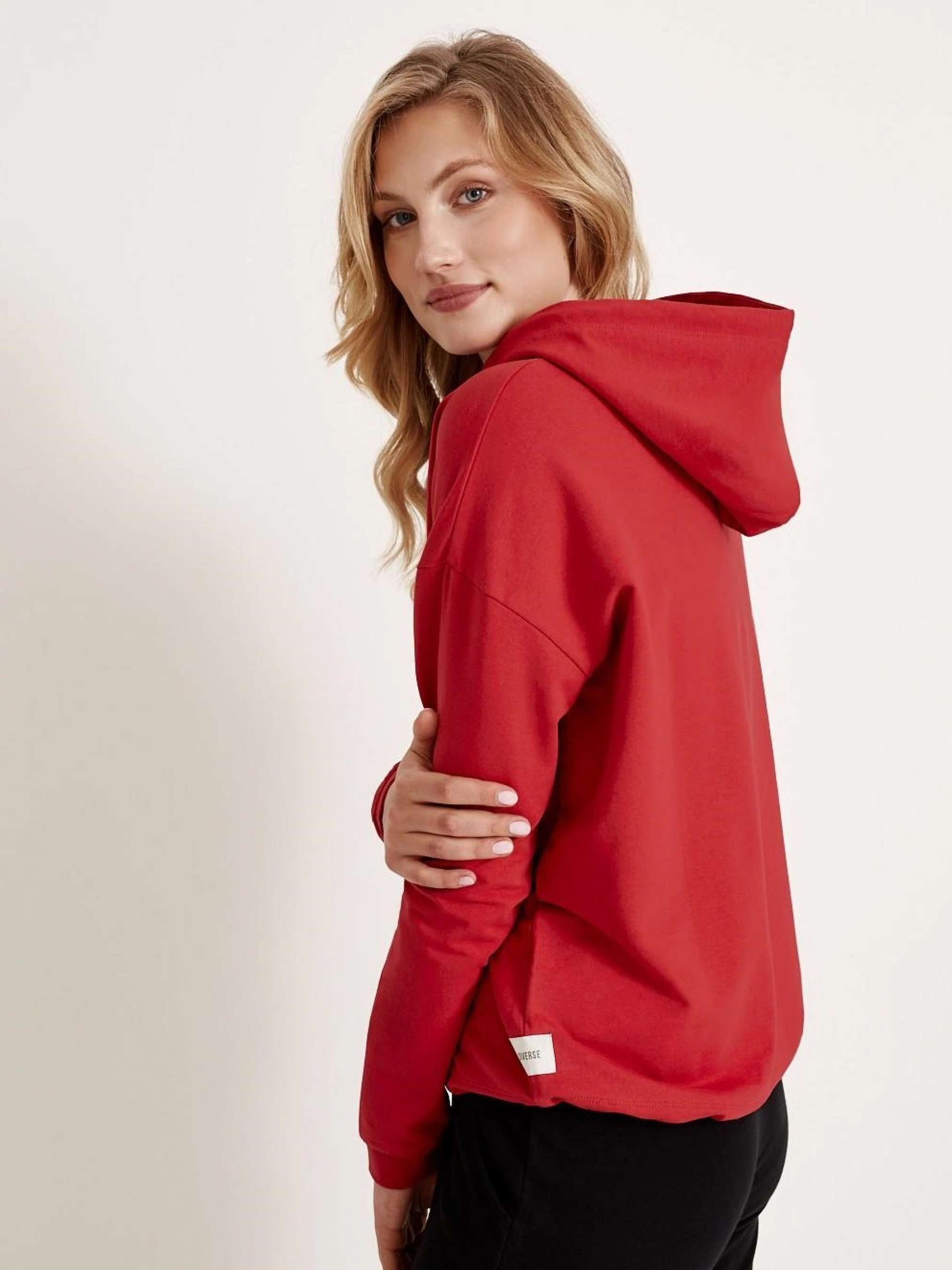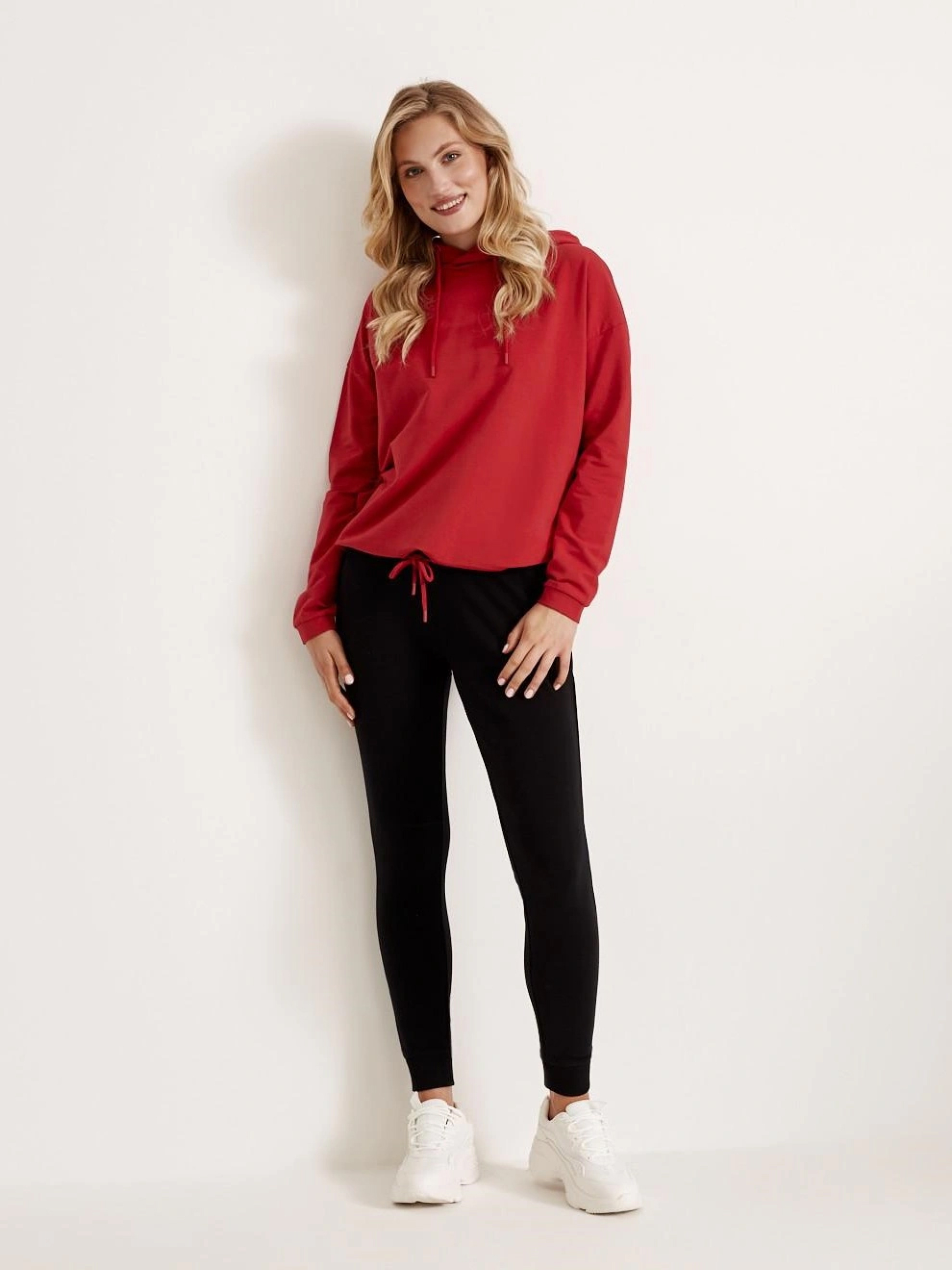 Толстовка женская FIONIA, с капюшоном и декоративной окантовкой внизу: - из мягкого хлопкового трикотажа с добавлением эластана, - с декоративной аппликацией спереди, - с капюшоном, - внизу хлопковая завязка, – красный. Сезон: осень/зима. Состав: 95% хлопок 5% эластан. РАЗМЕР: XS, S, М, L, ОБЩАЯ ДЛИНА СПИНЫ: 60 СМ, 62 СМ, 64 СМ, 66 СМ, ШИРИНА НИЗА: 52 СМ, 54 СМ, 56 СМ, 58 СМ, ШИРИНА ГРУДИ: 61 СМ, 63 СМ, 65 СМ, 67 СМ, ДЛИНА ВНЕШНЕГО РУКАВА: 50 СМ, 51 СМ, 52 СМ, 53 СМ,
