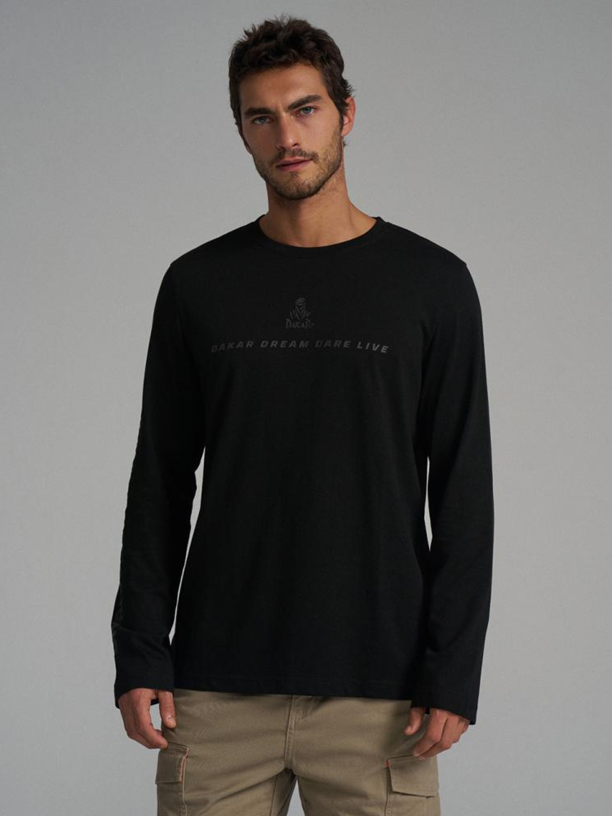 Лонгслив DKR LG 0124 10045683 Футболка DAKAR с длинным рукавом и принтом. Обычного кроя. Для изделий этой серии характерны изысканные детали: - принт с логотипом DAKAR спереди на груди, - логотип на рукаве, - декоративный ярлык сбоку, - доступно в черном цвете. Сезон: осень/зима 2024 Состав: 100% хлопок Уход: - стирка при максимум 30 °С - деликатные вещи - не отбеливать - не сушить в сушильной машине - гладить максимум при темп. 110 °С - не химчистка Размер на модели – XL Рост модели – 187 см