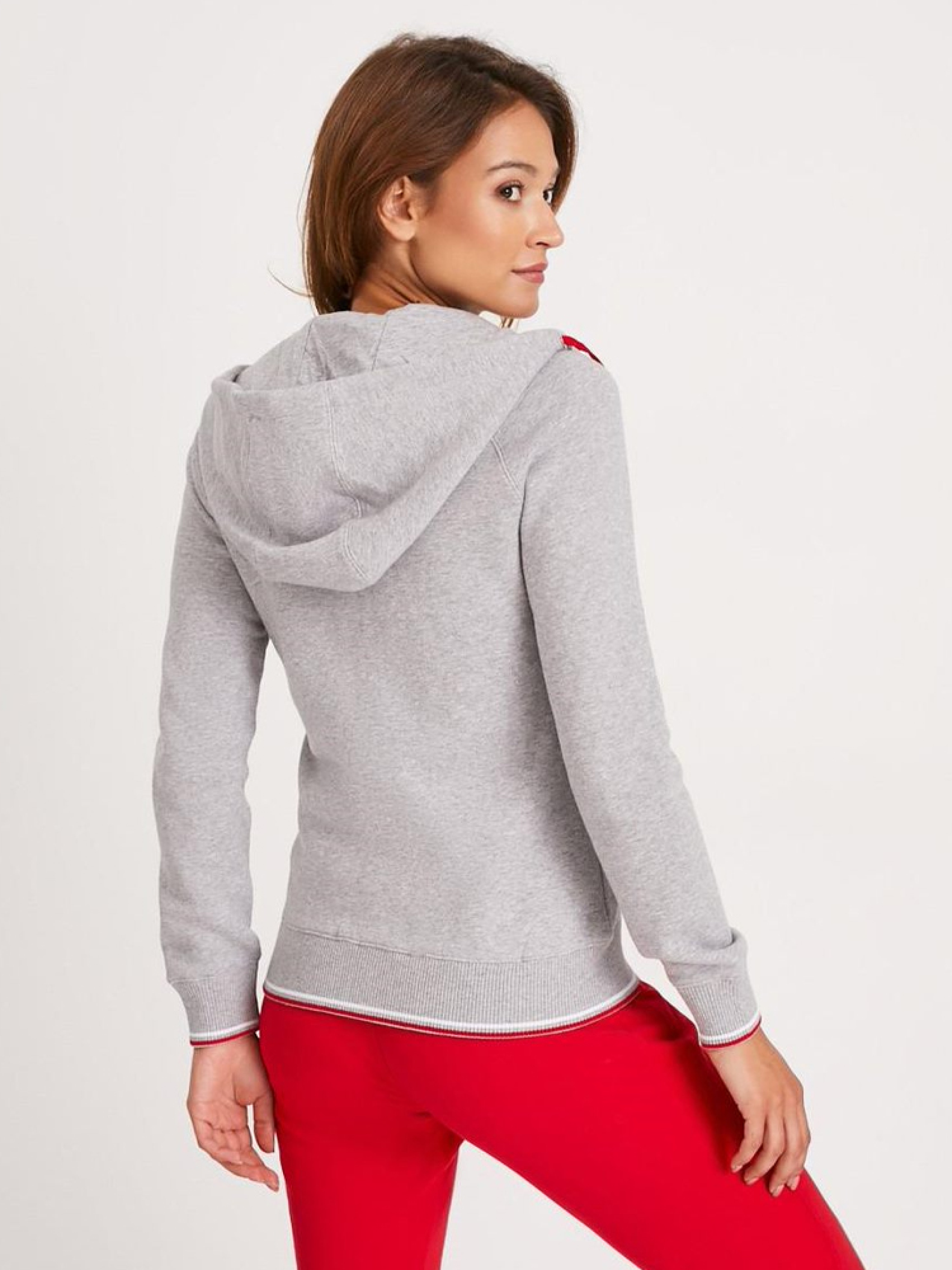 Толстовка женская OLKKA с декоративной радужной вышивкой. Изготовлена из пушистой и приятной на ощупь ткани с преобладанием хлопка: - приталенный крой, - застегивается на металлическую молнию, - капюшон с плоскими красными завязками, - внутренняя часть капюшона обработана цветной тесьмой, - пришитые карманы спереди, – низ и рукава, обработанные трикотажной резинкой. Сезон: Осень-зима Состав: 70% хлопок 30% полиэстер Размер на модели – S Рост модели – 180 см