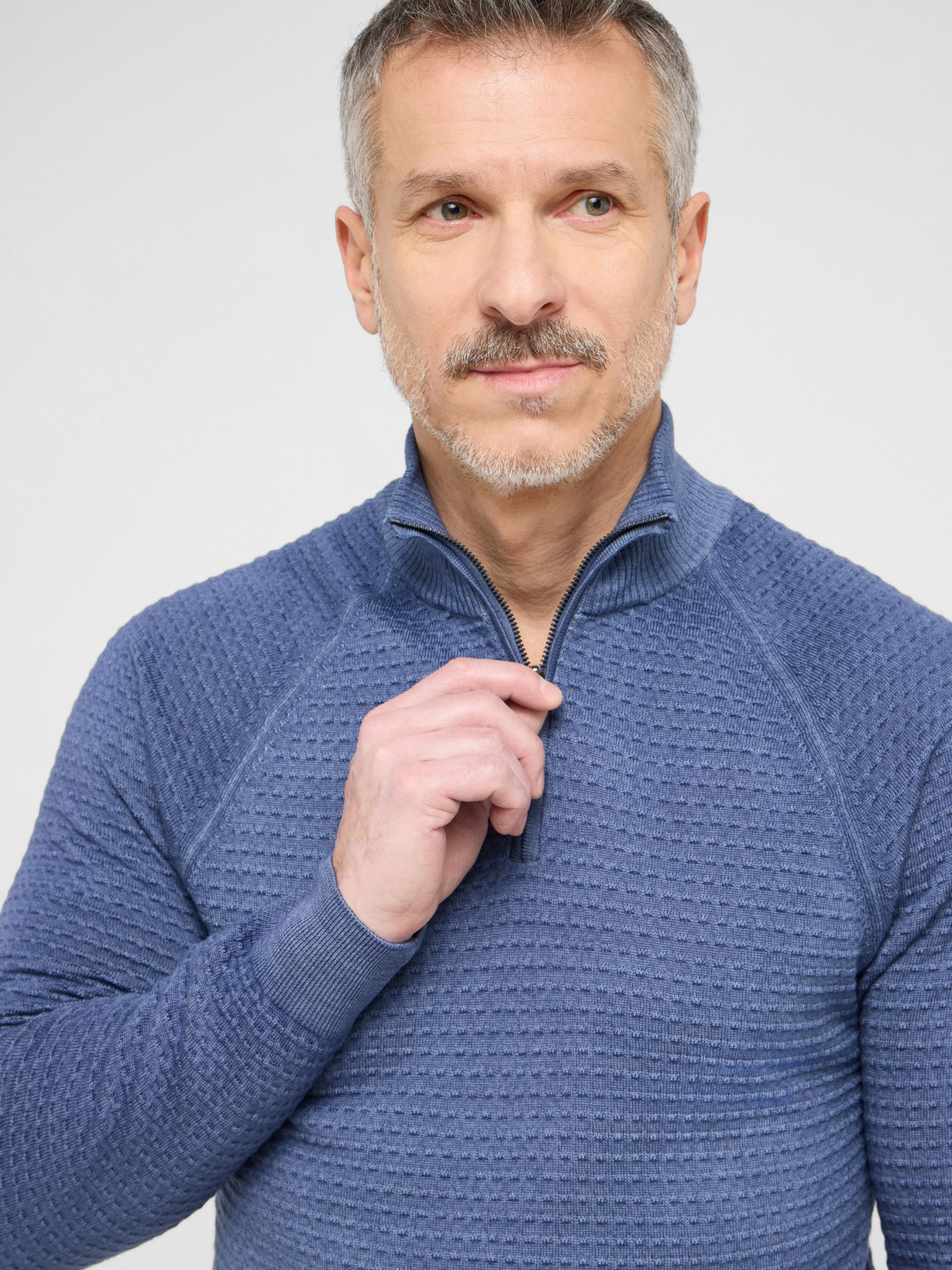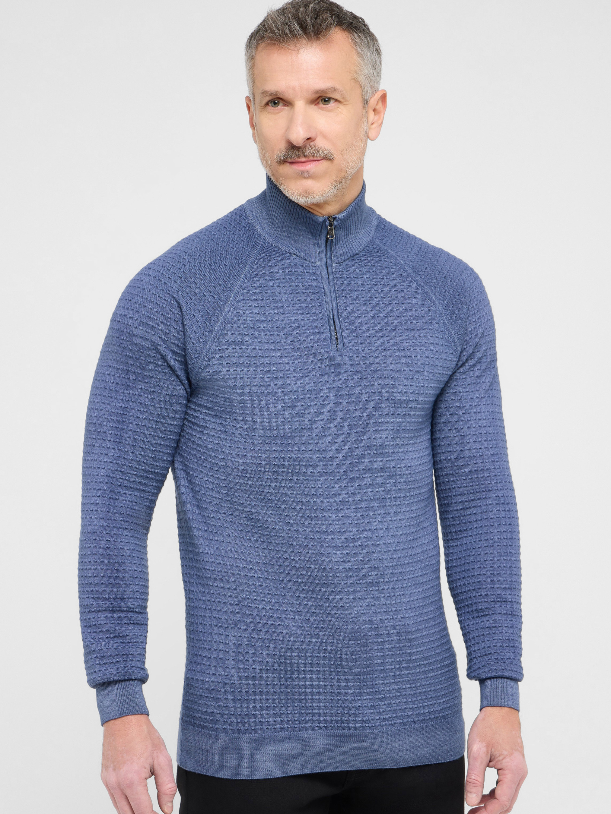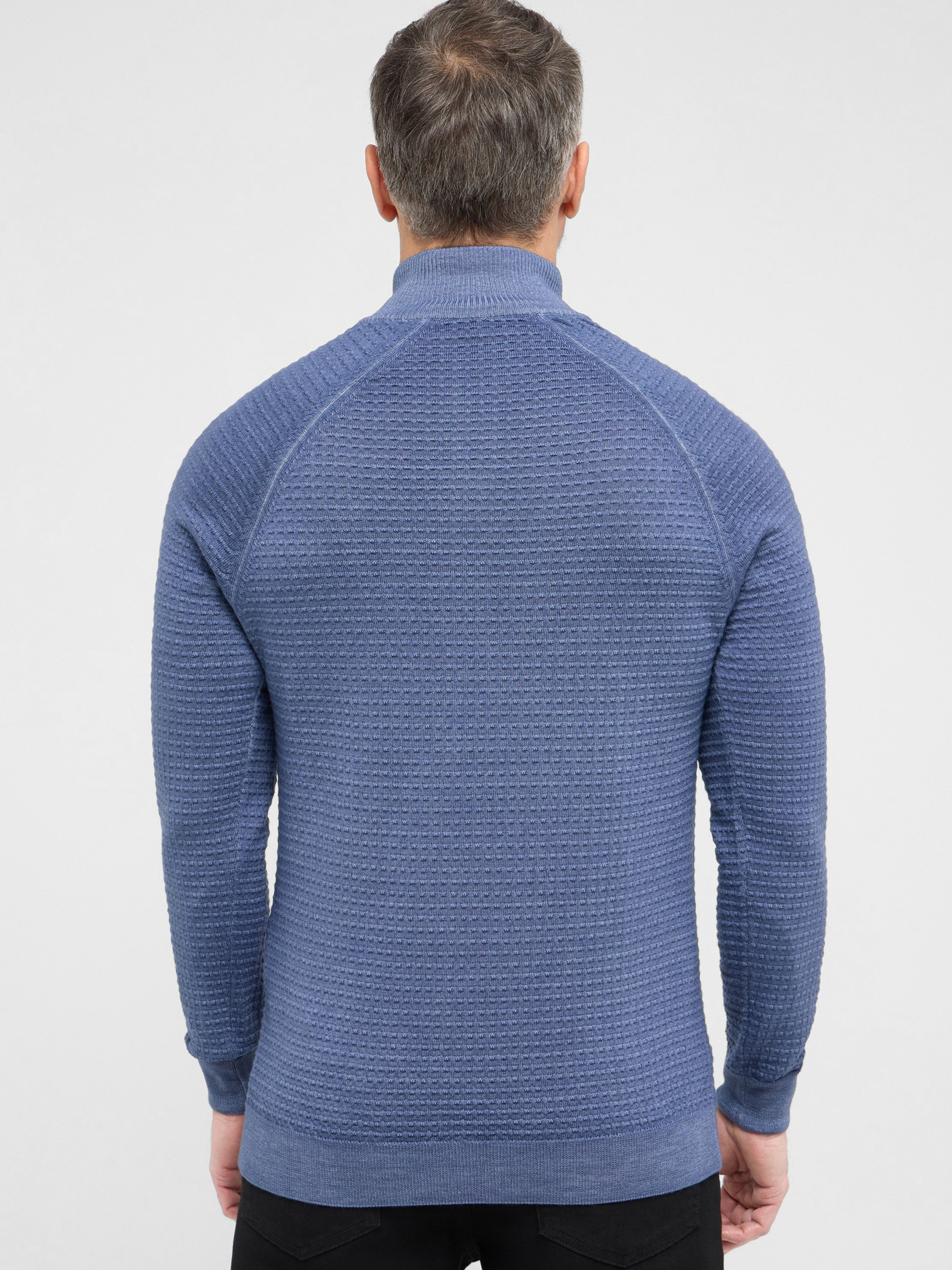 Синий шерстяной свитер Eterna — стильная и комфортная модель с фактурной вязкой, сочетающая современный дизайн и высокое качество исполнения. Изготовлен из 100% натуральной шерсти, обеспечивающей мягкость, тепло и долговечность. Свитер выполнен с воротником-стойкой и короткой молнией, что придаёт образу динамичность и функциональность. Посадка Modern Fit обеспечивает аккуратный силуэт и комфорт при движении. Благодаря глубокому тёмно-синему цвету и выразительной фактуре модель легко вписывается как в повседневный, так и в деловой гардероб. Характеристики: Бренд: Eterna Цвет: синий Материал: 100% шерсть Вязка: фактурная Воротник: стойка с молнией Посадка: Modern Fit Сезон: осень/зима Преимущества: Натуральная шерсть дарит тепло и комфорт Фактурная вязка добавляет выразительности Воротник-стойка с молнией подчёркивает современный стиль Посадка Modern Fit идеально сидит по фигуре Безупречное немецкое качество Eterna