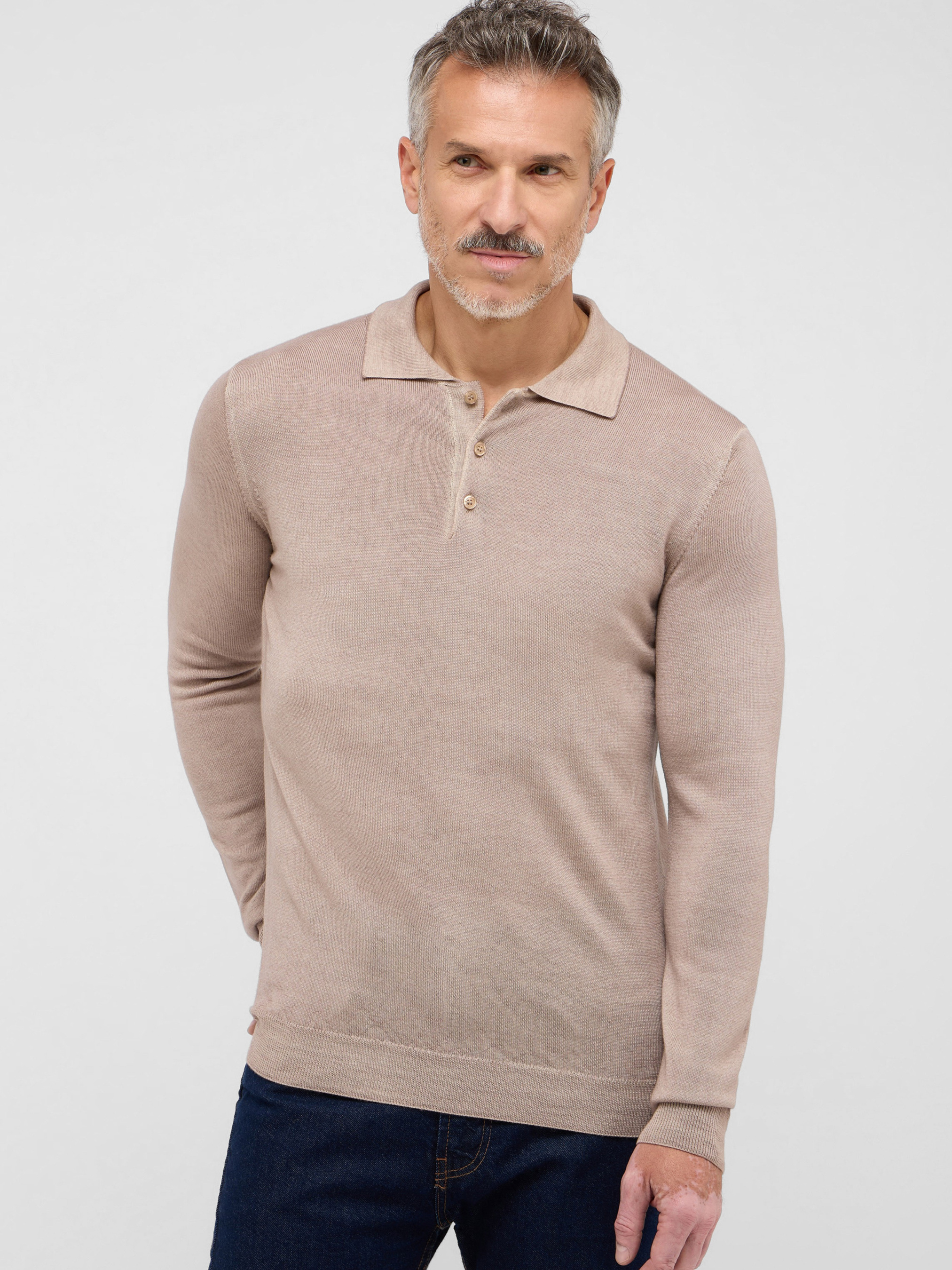 Из нашей премиальной коллекции ''1863 by ETERNA'' — абсолютный must-have в вашем гардеробе! Это классическое мужское вязаное поло однотонного цвета с планкой на три пуговицы — который подходит практически к любой одежде. Высококачественный премиум-материал, изготовленный из 100% мериносовой шерсти, невероятно мягкий и обеспечивает отличный комфорт при носке. Индивидуальные цветовые эффекты с легкими неровностями, особенно на швах, создаются с помощью специального процесса окрашивания.
