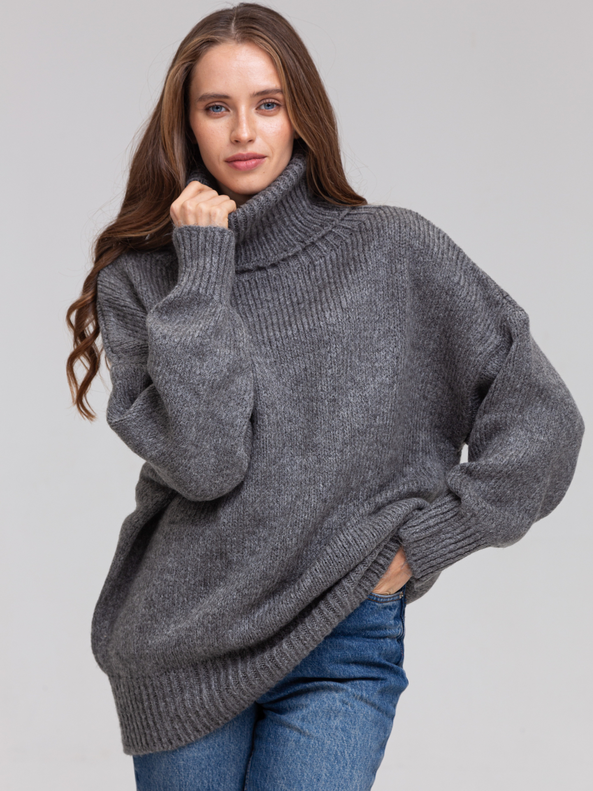 Свитер вязаный oversize однотонный KOF-223009 Настоящей находкой в холодное время станет теплый вязаный свитер с воротником. Универсальная вещь любого гардероба, которая создаст уникальный образ, который точно не останется без внимания окружающих. Цвета: Зеленый, Синий, Серый, Молочный, Черный Состав свитера 37% Полиэстер, 33% Акрил, 30% Хлопок. Такая смесовая ткань очень приятна на ощупь, отличается особой мягкостью. Ткань тонкая и легкая, но она будет прекрасно согревать в прохладную погоду. Доля эластана придает изделию прочность и эластичность. Преимущества материала: Ткань очень легкая и хорошо сохраняет тепло; Прочный материал; : Легкий уход. Изделие из этой ткани выдерживает частую стирку без потери качества, легко гладится и даже отбеливается. Уход:1.Его можно стирать вручную или в стиральной машине при температуре 40 градусов; 2.Стирайте его стандартными моющими средствами - порошком, гелем, мылом; 3.Однотонный свитер является абсолютно универсальной вещью в гардеробе. Заказывайте свитер на нашем сайте с быстрой доставкой, или выбирайте самовывоз. В нашем магазине можно примерить водолазку другого цвета или подобрать стильный аксессуар.