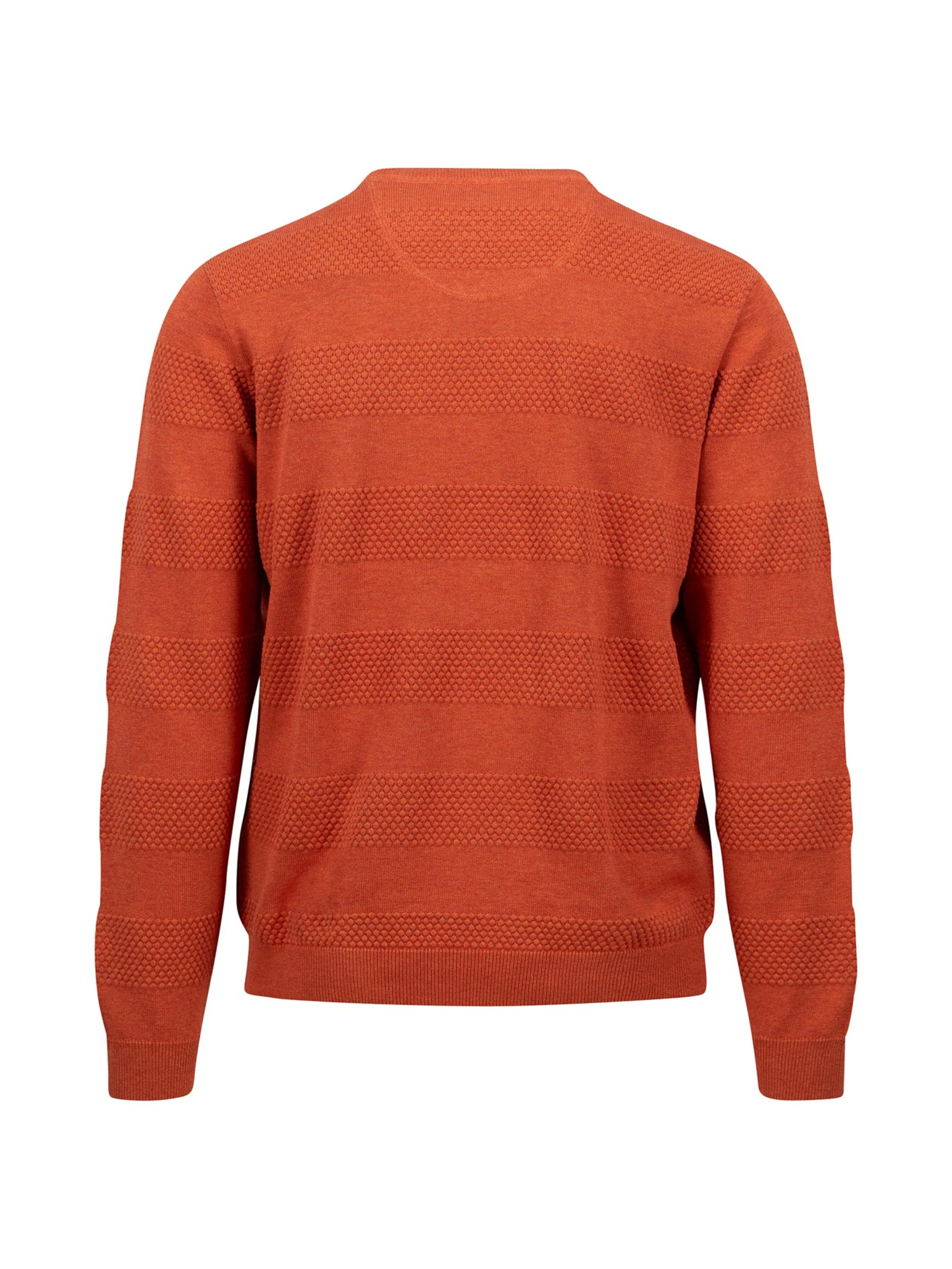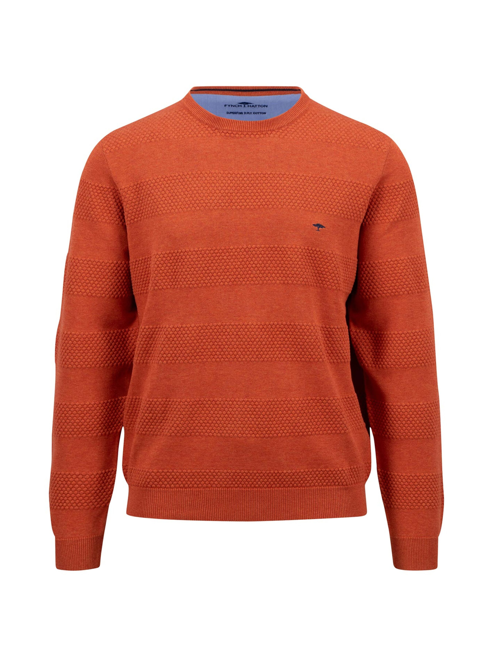 Мужской свитер Fynch-Hatton — Терракотовый комфорт с характером Добавьте яркий акцент в осенне-зимний гардероб с этим стильным свитером от Fynch-Hatton. Выполненный из премиального хлопка Supima, он сочетает в себе исключительное качество, мягкость и износостойкость. Эффектная текстурная вязка чередуется с гладкими полосами, создавая динамичный и современный образ. Глубокий терракотовый оттенок придаёт свитеру тепло и универсальность, легко сочетается как с джинсами, так и с классическими брюками. Материал: 100% хлопок Supima — дышащий и приятный к телу Фактурные полосы для стильного объёма Эластичные манжеты, горловина и низ для идеальной посадки Маленький вышитый логотип на груди — фирменная деталь бренда Будьте уверены в себе и своём стиле — с Fynch-Hatton комфорт всегда выглядит безупречно.