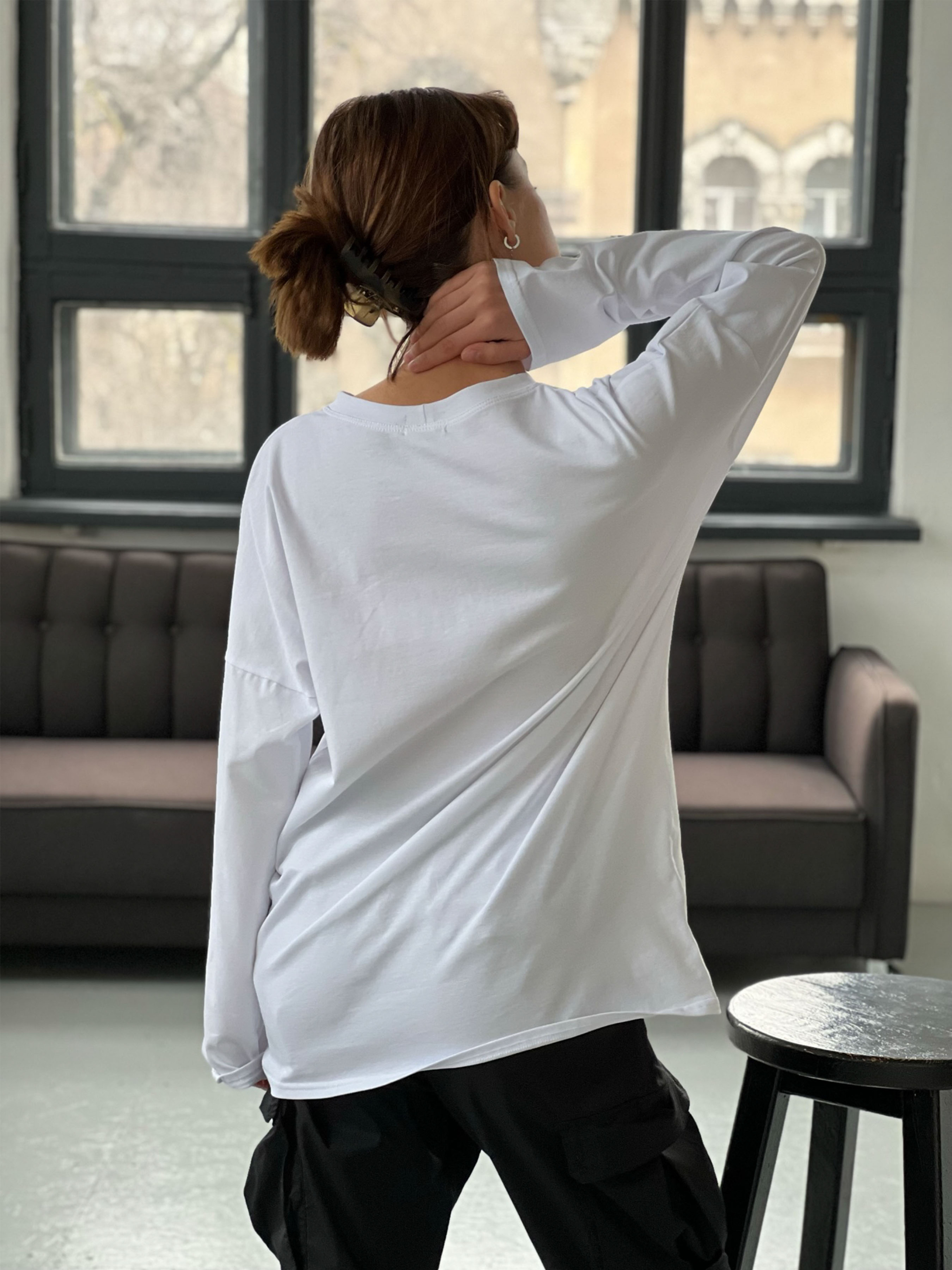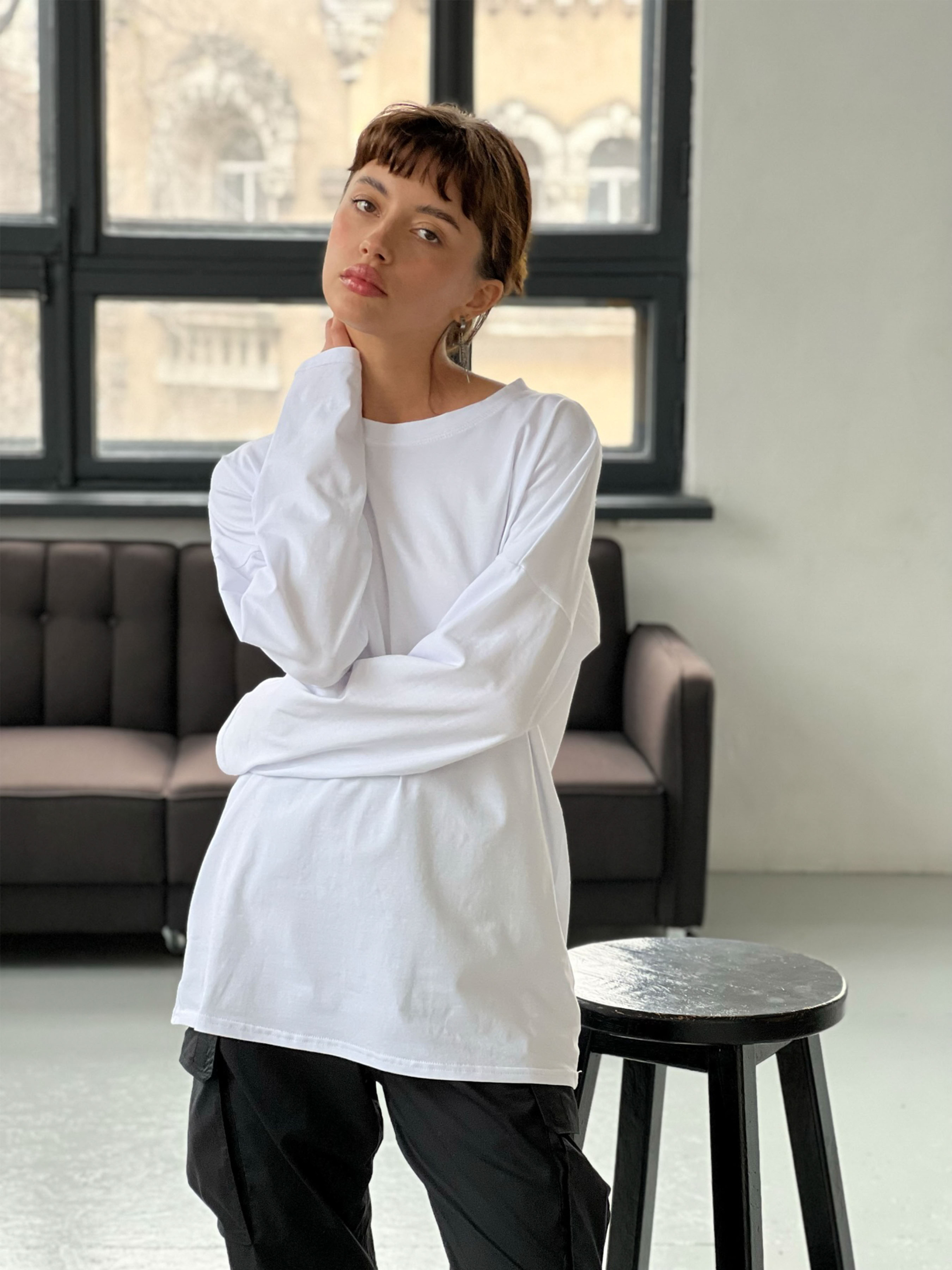 Оверсайз лонгслив: - По настоящему свободный крой; - Приспущенная линия плеча; - Базовая модель, которая будет отлично сочетаться с любой одеждой - Длинный рукав теплее зимой и защищает от солнечных ожогов летом Материал: футболочный трикотаж класса Пенье (лучший класс трикотажа) Состав: 100% хлопок. Плотность 185г/м Материал очень мягкий, не скатывается Рекомендации по уходу: стирка в воде до 30 градусов, небольшие обороты отжима Замеры по изделию: 1 размер: Обхват груди/талия 100 см, длина по спинке 70 см, длина рукава от горловины 70 см 2 размер: Обхват груди/талия 110 см, длина по спинке 73 см, длина рукава от горловины 75 см 3 размер Обхват груди/талия 120 см, длина по спинке 76 см, длина рукава от горловины 80 см На фото: Мелания 165 см рост, параметры 90-60-80 см -1размер Ксения 160 см рост, параметры 118-93-111см -2 размер
