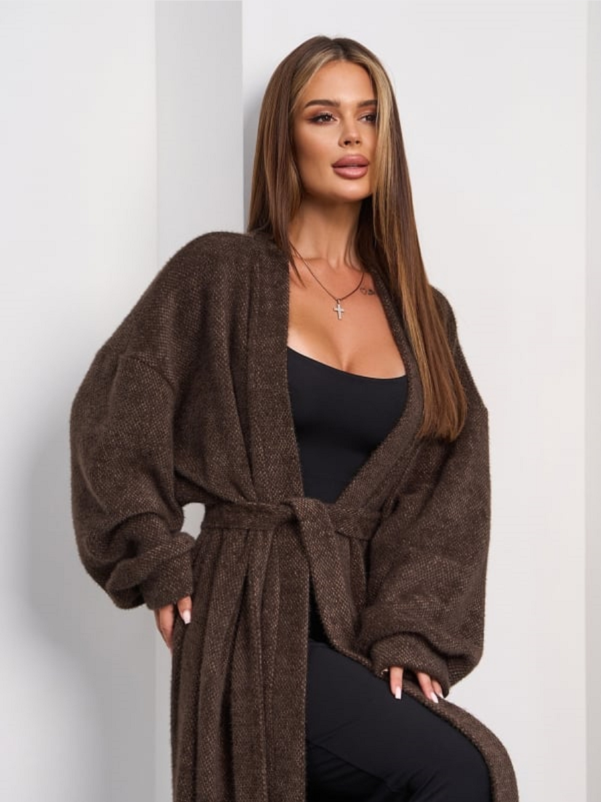 Кардиган ISSA Plus модель 15294_темно_коричневый