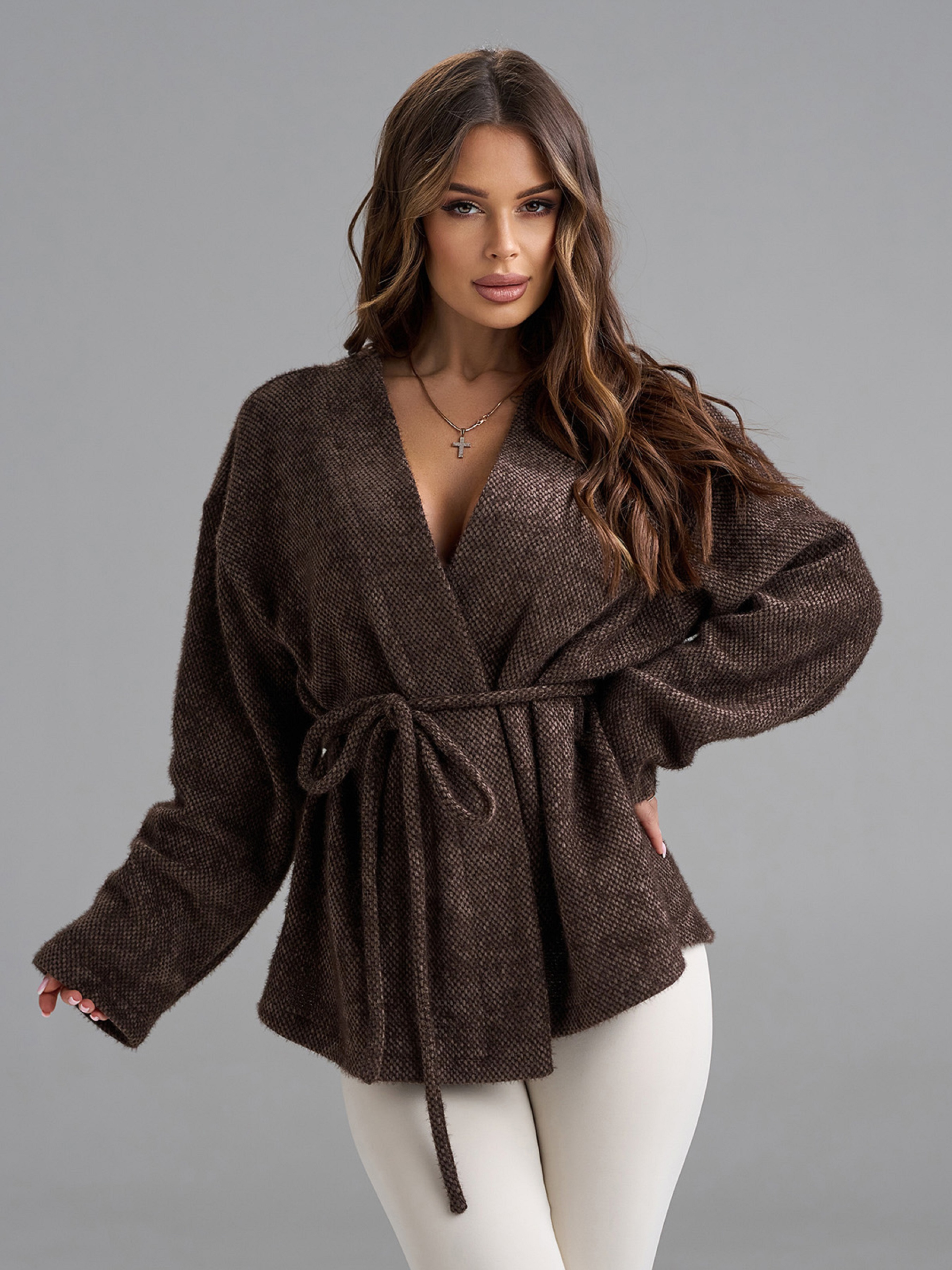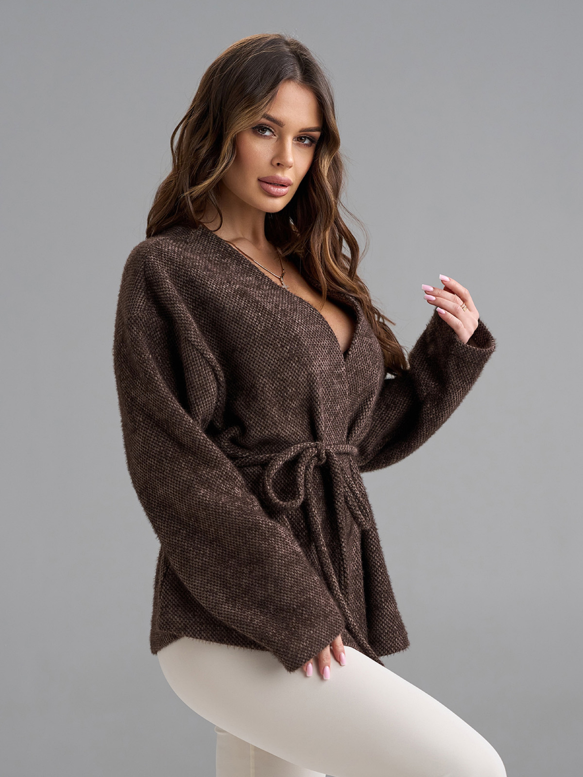 Кардиганы модель 15490_темно-коричневый