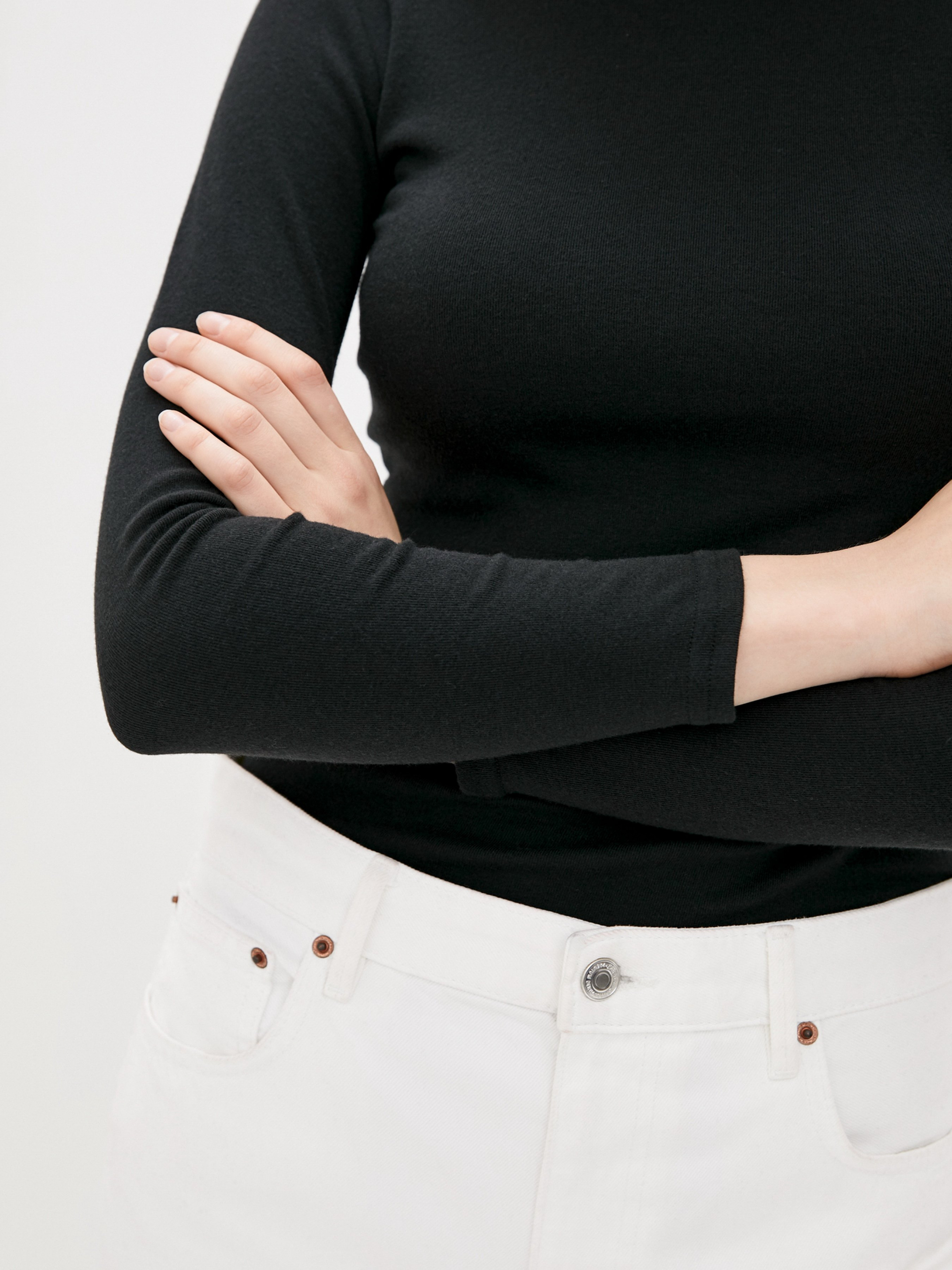 Черный утепленный гольф на каждый день. Эластичная удобная модель с высокой горловиной и длинными рукавами. Гольф выглядит довольно тонким, но он утеплен флисом, что позволит вам не испытывать дискомфорта в холода. Состав: 92% хлопок, 8% эластан Растяжимость: Грудь: S (74-84), M (78-88), L (82-92), XL (86-96).XXL (90-100), 3XL (94-104), 4XL (98-108), 5XL (102-112), Рукав - 55. Длина - 53.
