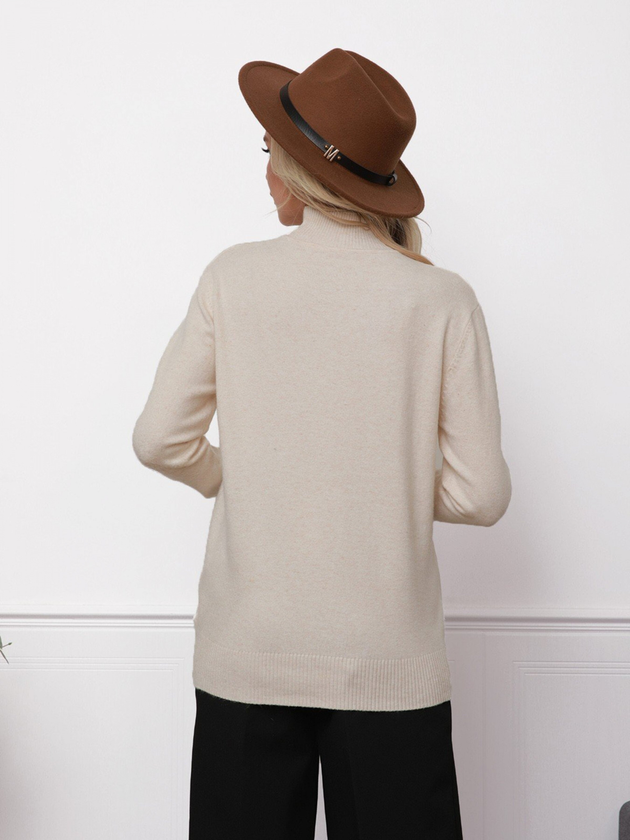 Вязаная эластичная водолазка оснащенная длинными рукавами. Модель свободного традиционного кроя с фактурными манжетами и воротником-стойкой. Модель представлена в бежевом базовом цвете. Состав: 50% хлопок, 35% вискоза, 15% полиэстер. Материал: Трикотаж-вязка. Полуобхват: Грудь: S (49), M (50), L (51), XL (52), Длина изделия - 64, Рукав - 59, Ткань: Высокой эластичности.