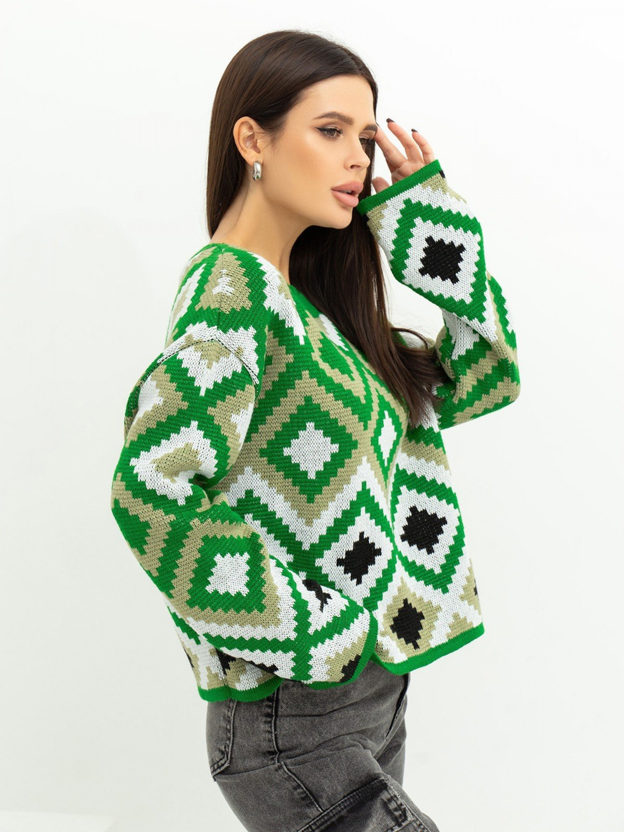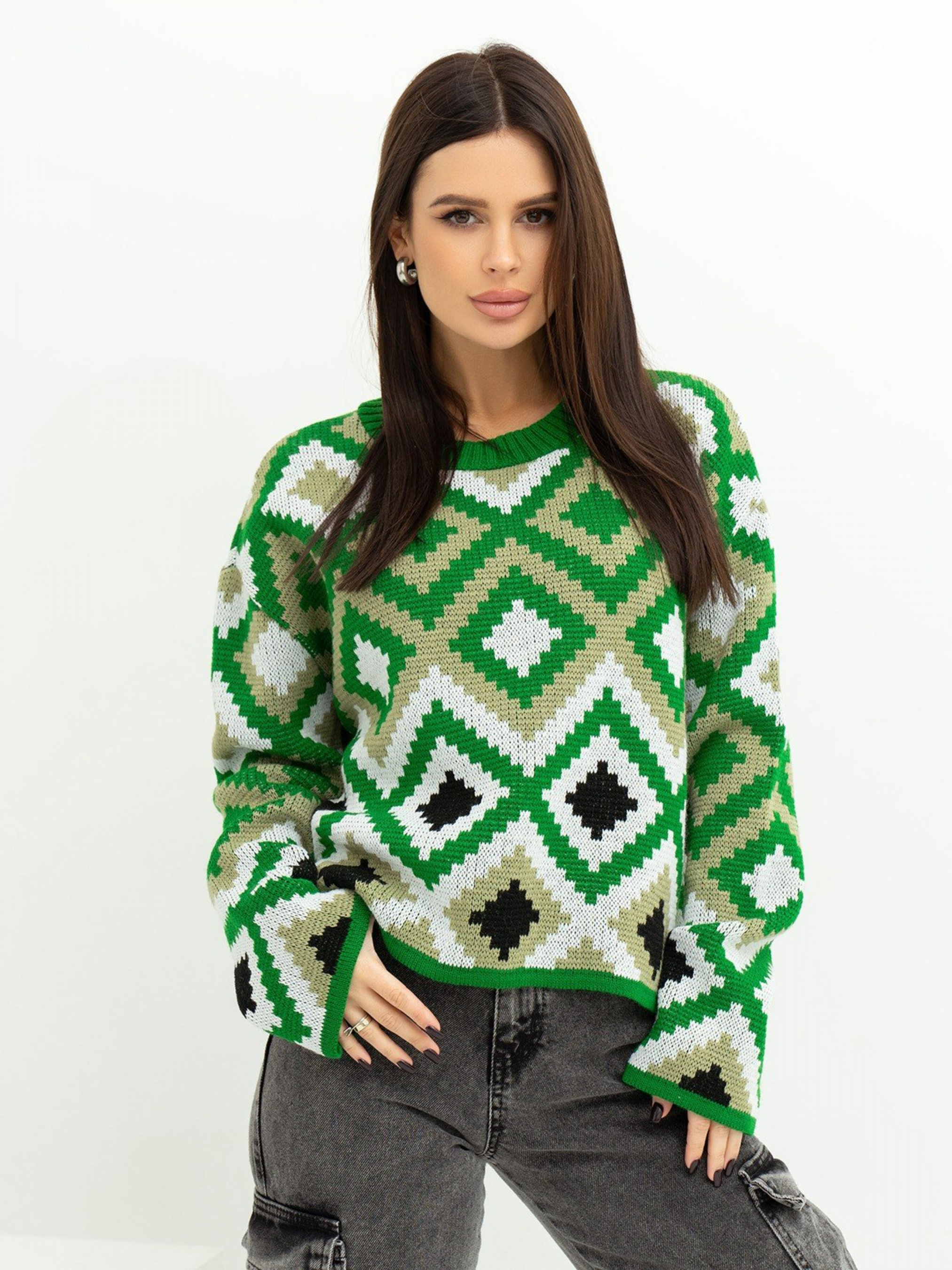 Свитер ISSA Plus модель WN20-366_greenbeige