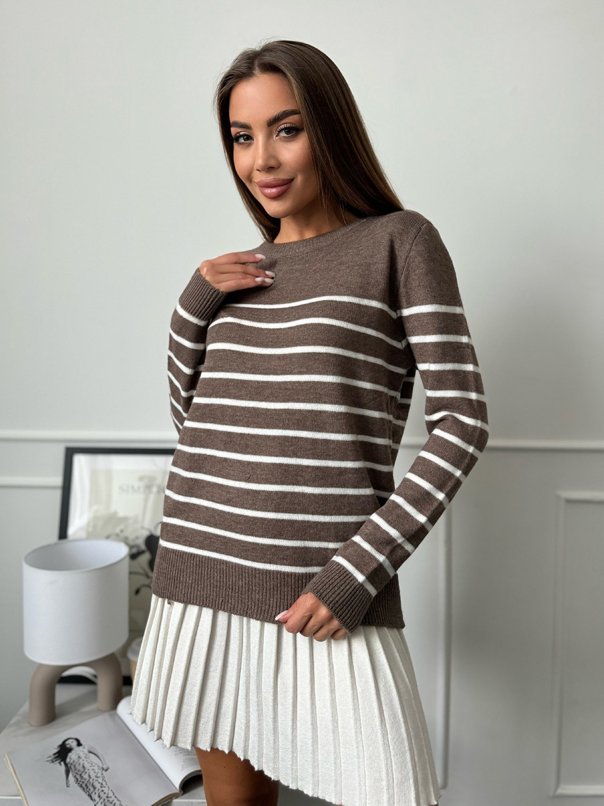 Джемпер ISSA Plus модель WN20-661_коричневый