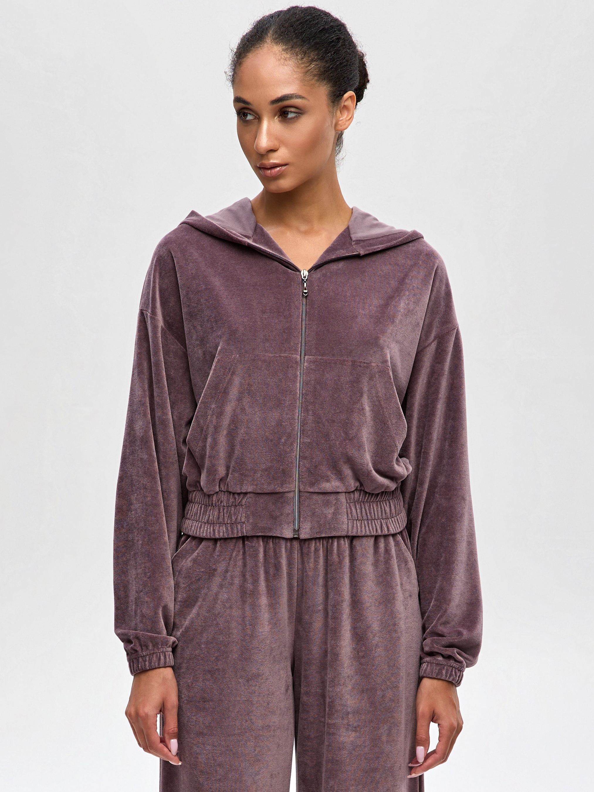 56% модал, 24% бавовна, 20% поліестер. Об’ємний силует, капюшон і вражаючий вид - яскравий та стильний джемпер на блискавці, що закриває всі «прохолодні» сценарії. Це справжній oversize джемпер для жінок: м’який, тактильний, легко нашаровується на топ чи боді. Можна купити або замовити онлайн та зібрати трендовий велюровий одяг у форматі готового сету. Оксамитова поверхня джемперу додає глибини відтінку «какао», а блискавка - зручно в русі та дорозі. У парі з жіночими велюровими штанами на резинці виходить повсякденний міський лук, зі штанами - більш легкий, динамічний силует. Це велюровий одяг для жінок, який доречний після тренування, у подорожі, на вихідних і в офісі з мінімалістичним топом. Капюшон додає відчуття захищеності, а oversize-посадка залишає простір для багатошарових комбінацій. Якщо плануєш купити джемпер онлайн, він стане ядром капсульного гардеробу з велюру (й не тільки!) - річ, що тримає образ і задає настрій.
