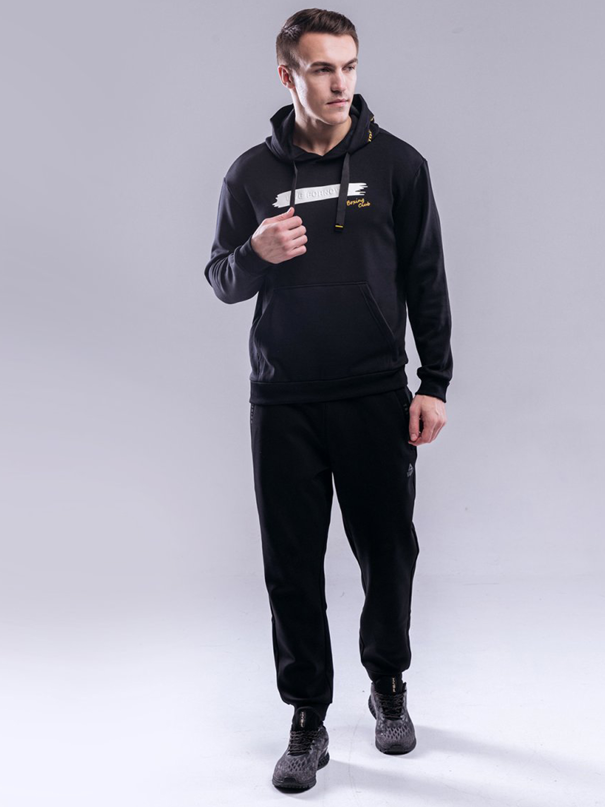 Худи утепленная черного цвета. Состав 67% полиэстер 30,4% хлопок 2,6% спандекс. Изделие имеет капюшон с надписью «PEAK TO LIVE FOR NOW» Данная модель оснащена надписью «LIVE FOR NOW boxing club». Рукава и низ изделия - с широким манжетом. На передней части присутствует один сплошной карман. Внутренняя часть на флисовой основе, которая задерживает тепло и не создает лишнего веса.