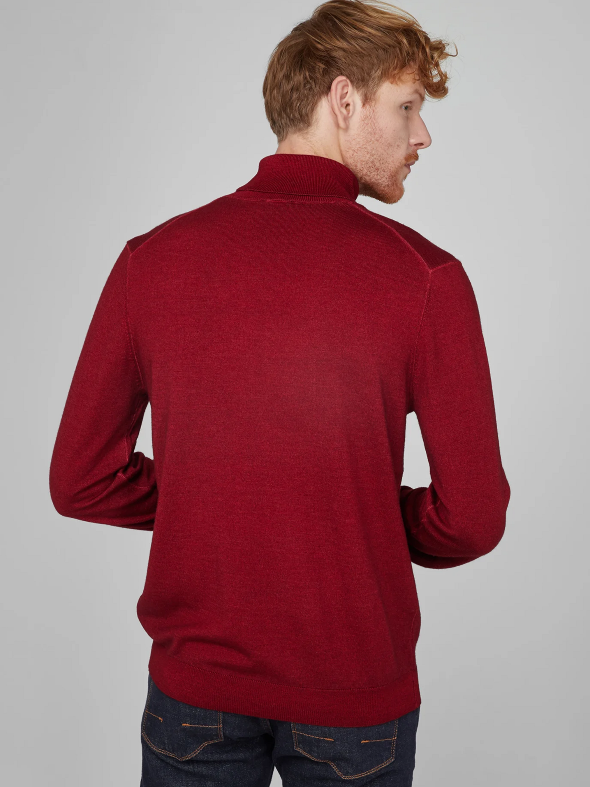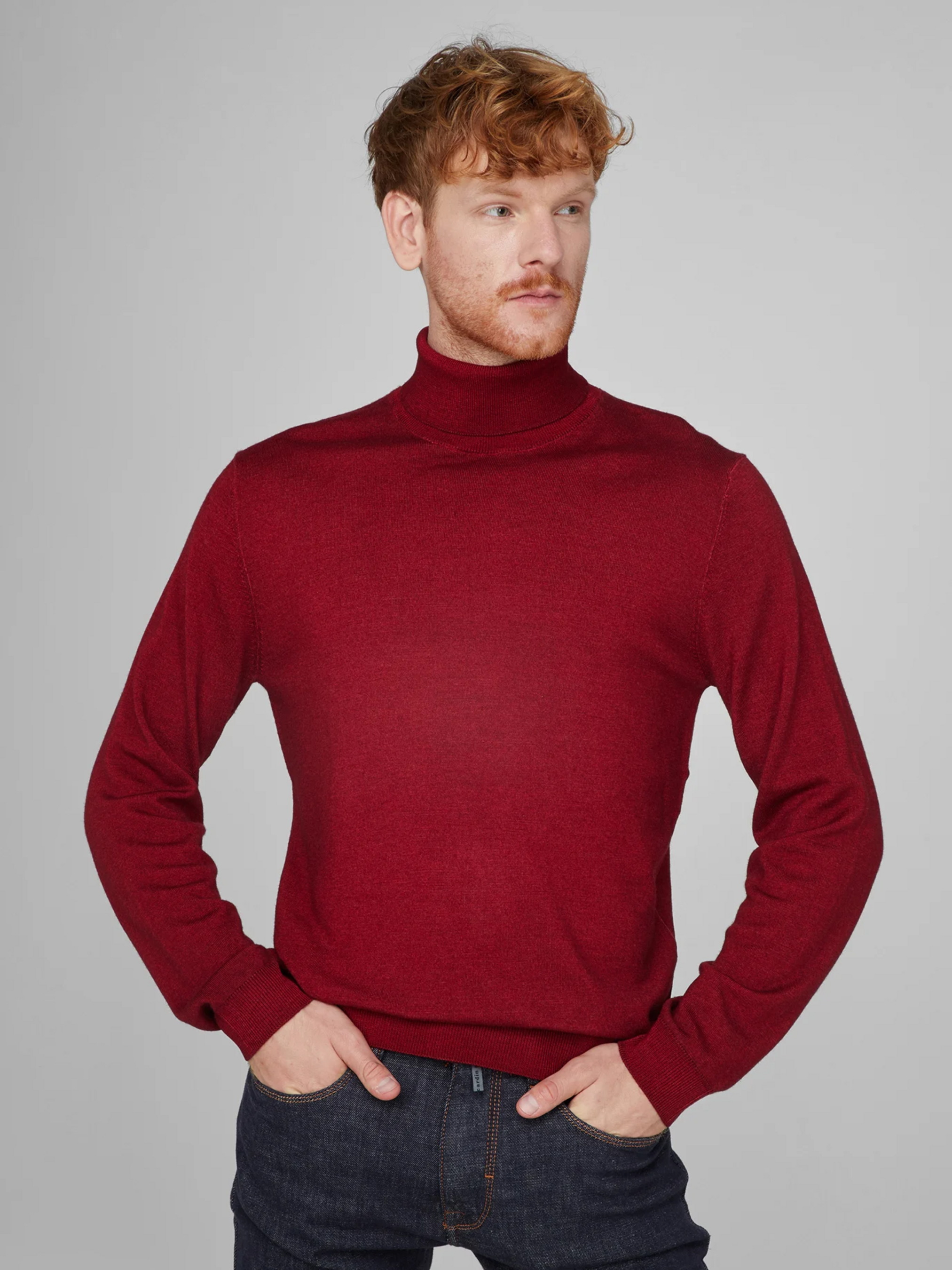 Эта мужская красная водолазка — воплощение утонченного стиля и максимального комфорта. Изготовленная из 100% шерсти, она не только мягкая на ощупь, но и отлично сохраняет тепло, создавая идеальные условия для прохладной погоды. Водолазка имеет полуприталенный фасон, который элегантно подчеркивает фигуру, оставаясь при этом удобной в носке. Круглый вырез горловины и стойка воротника создают гармоничный образ, идеально сочетающийся с классикой и современными трендами. Легкий эффект потертости добавляет изделиям нотку непринужденного шарма, создавая винтажное настроение. Длинные рукава подчеркивают ее универсальность и делают водолазку комфортной для повседневной носки. Немецкое качество и инновационная технология Futureflex обеспечивают эластичность и долговечность изделия, не ограничивая движений. Подходит для мужчин ростом 185 см и представлена в размере М. Чтобы сохранить оригинальный вид водолазки, рекомендуется деликатный уход: ручная стирка, отсутствие отбеливания и машинной сушки, а также глажка при низкой температуре. Не подвергать химчистке.