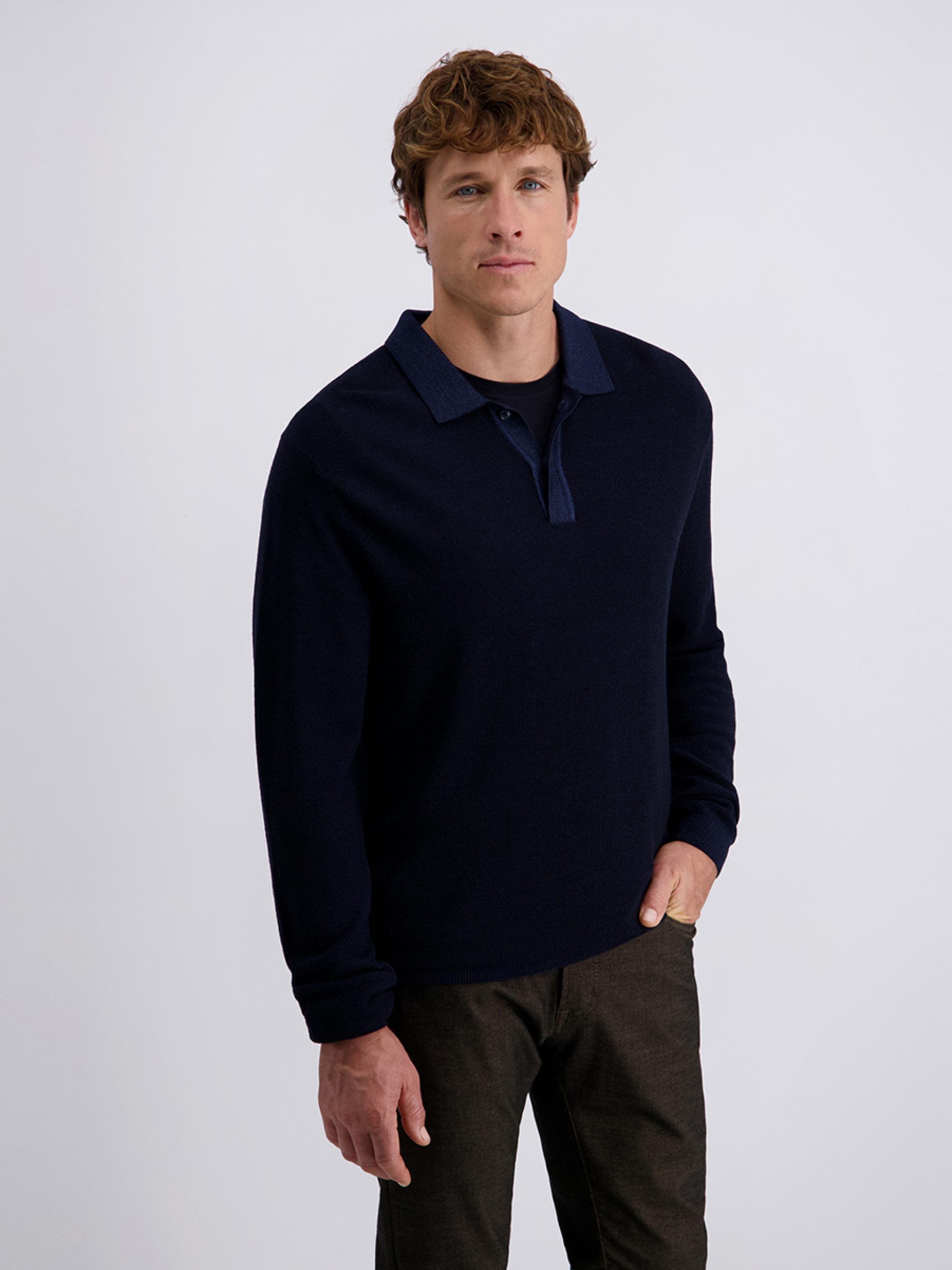 Элегантный темно-синий свитер-поло с длинным рукавом от Pierre Cardin — стильное сочетание классики и комфорта. Модель выполнена из мягкой и тёплой смеси 55 % шерсти и 45 % хлопка, что обеспечивает приятные тактильные ощущения и износостойкость. Полуприлегающий крой Modern Fit подчёркивает силуэт, не сковывая движений.