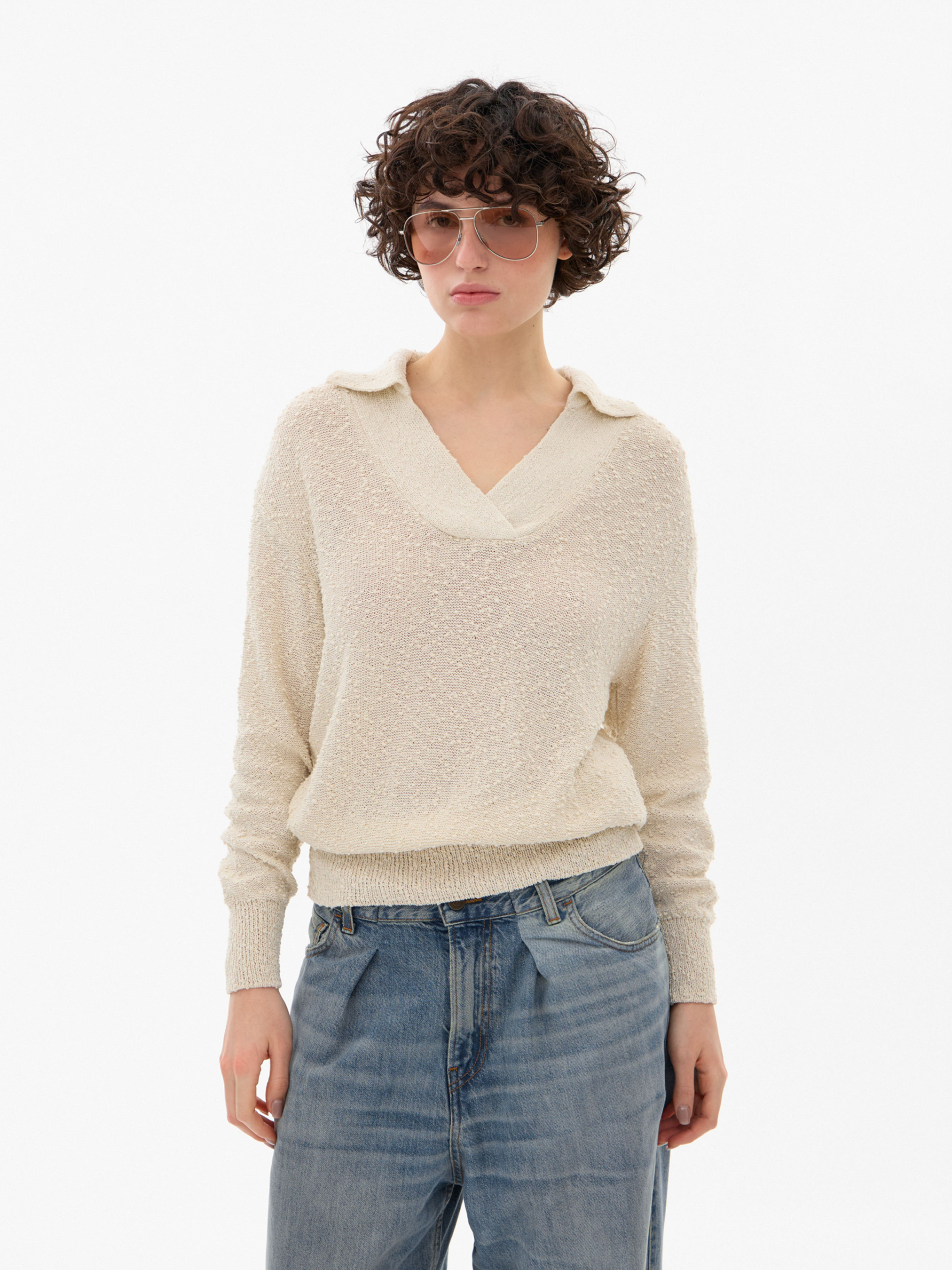 Свитер букле ТМ Promin - только высококачественные натуральные ткани. Состав: Хлопок - 44%, Акрил - 47%, Вискоза - 9% Цвет: Бежевый