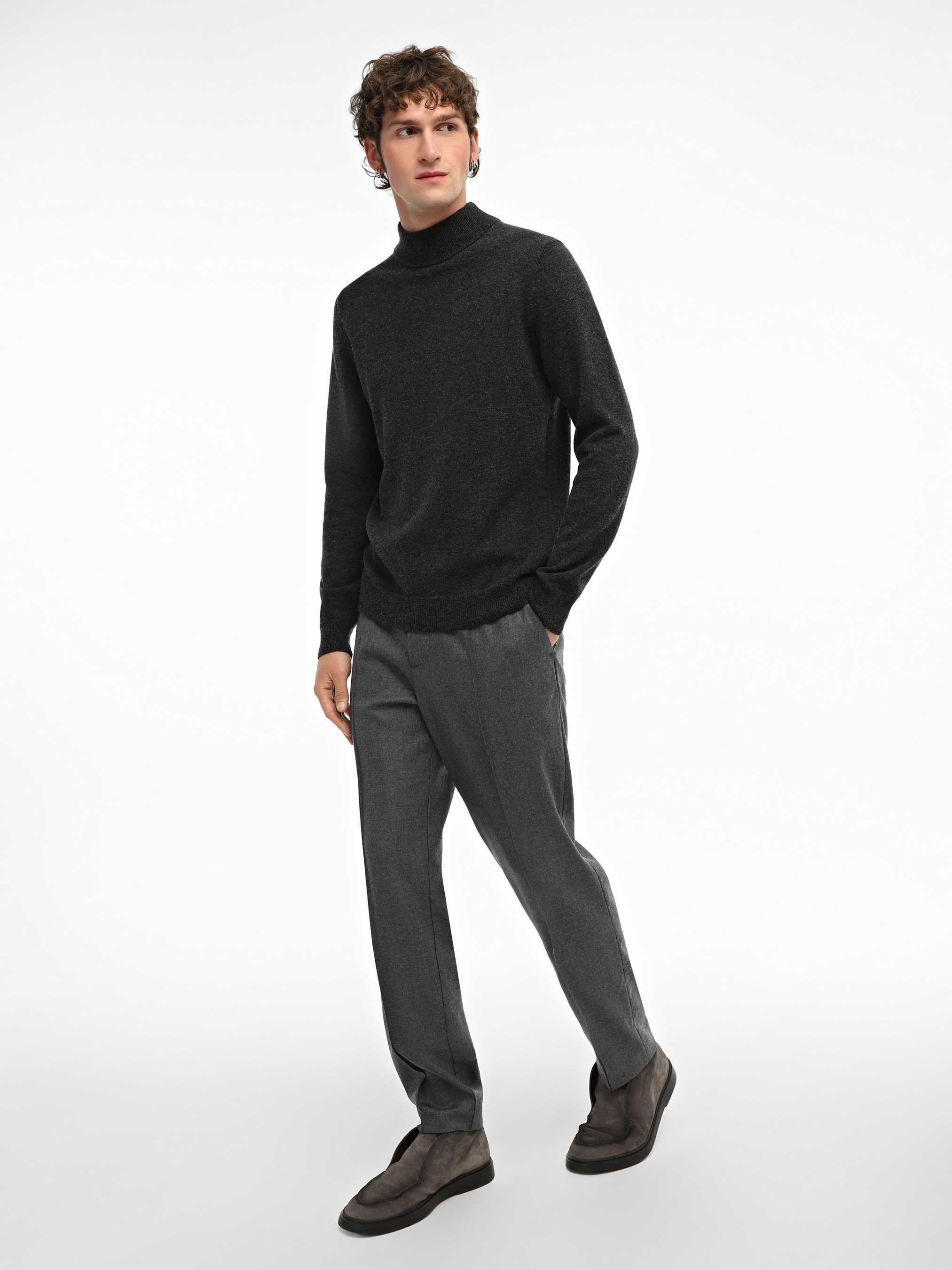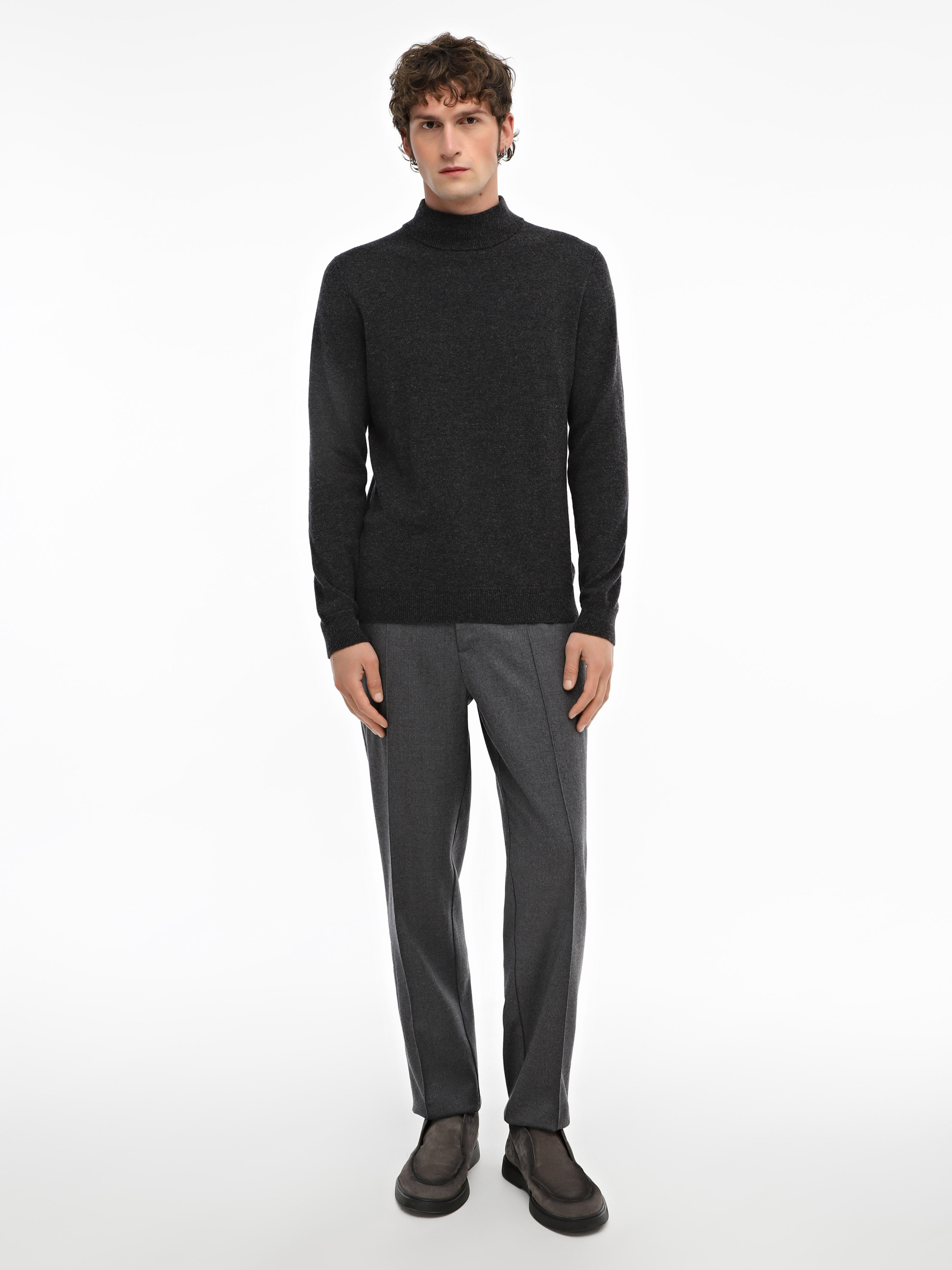Гольф ТМ Promin - только высококачественные натуральные ткани. Состав: Меринос - 90%, Кашемир - 10% Цвет: Темный-серый меланж