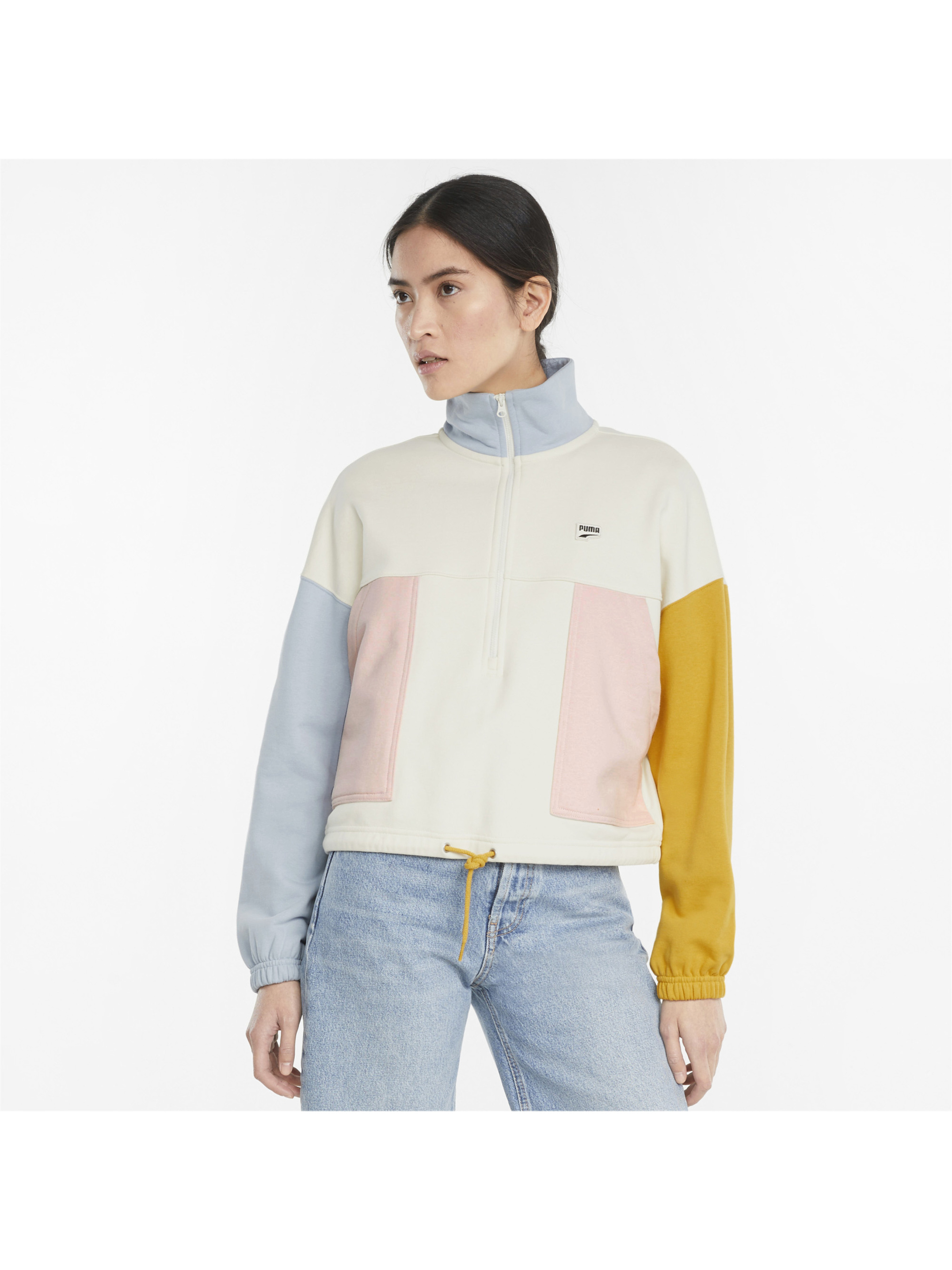 Стиль и комфорт органично сочетаются в уютной модели. Олимпийку Downtown Half-Zip Women's Jacket отличают классический высокий ворот, защищающий от ветра, и молния длиной 1/2, делающая эту одежду максимально универсальной. Функциональная и стильная, с удобными боковыми карманами, эластичной отделкой манжет и низа, оснащенного внешним шнурком, она подходит как для улицы, так и для дома. Вышитая эмблема PUMA на груди добавляет фирменный флер. Детали Коллекция: Осень-зима 2021 Стиль: Стрит-стайл Характеристики Состав: 70% хлопок BCI, 30% переработанный хлопок; материал содержит переработанные волокна – PUMA заботится о снижении воздействия на окружающую среду Женская олимпийка Свободная посадка – для повседневного образа Универсальность за счет молнии длиной 1/2 Высокие, глубокие боковые карманы для ключей, кошелька и других вещей Эластичная отделка манжет и низа с внешним шнурком для регулировки Эффектная эмблема PUMA (вышивка) на груди Страна-производитель: Китай