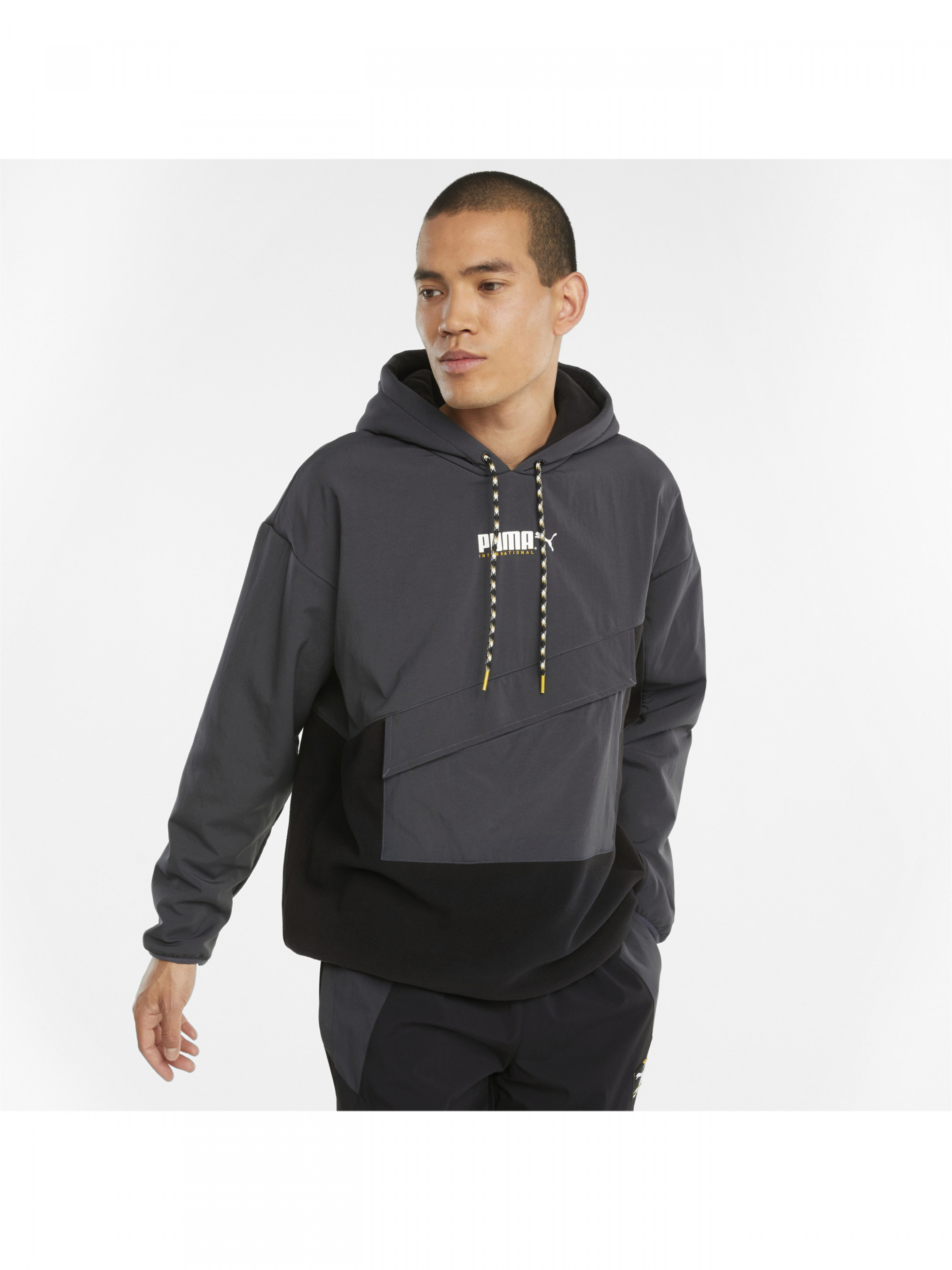 Спортивные силуэты, классные цветовые блоки и современный городской стиль - отличительные черты нашей коллекции PUMA International. Благодаря перекрестному капюшону с контрастными затягивающими шнурками, асимметричным элементам дизайна, переднему накладному карману, эластичным переплетам и яркому брендингу PUMA эта модная толстовка лидирует по популярности. Характеристики Стандартная посадка Перекрестный капюшон с контрастными затягивающими шнурками для регулируемой посадки Тканый накладной карман с застежкой на кнопке для безопасного хранения Эластичные манжеты и нижний край Цветные блоки как элемент дизайна Логотип PUMA International на груди Логотип PUMA Cat по нижнему краю с левой стороны Страна-производитель: Китай