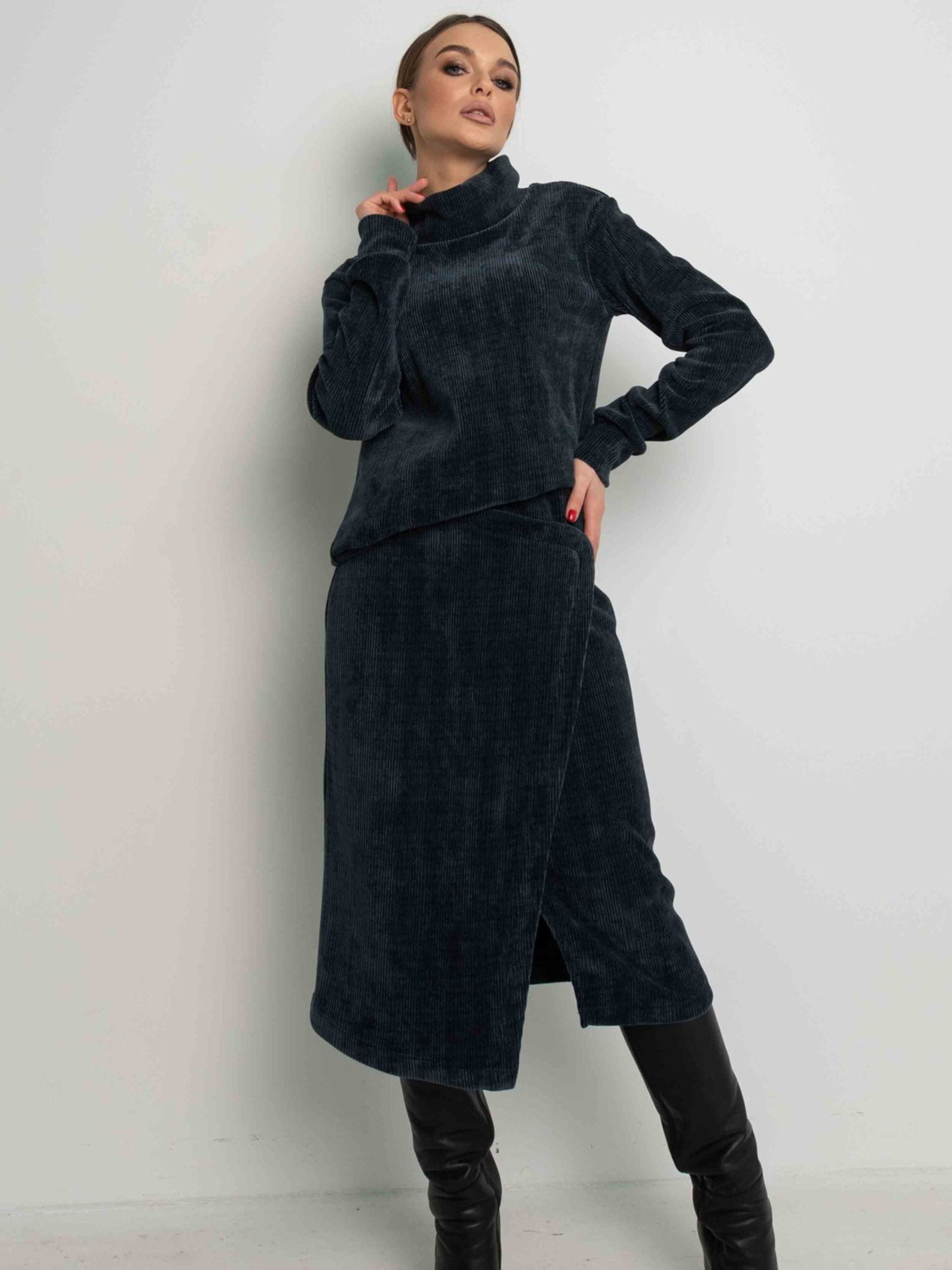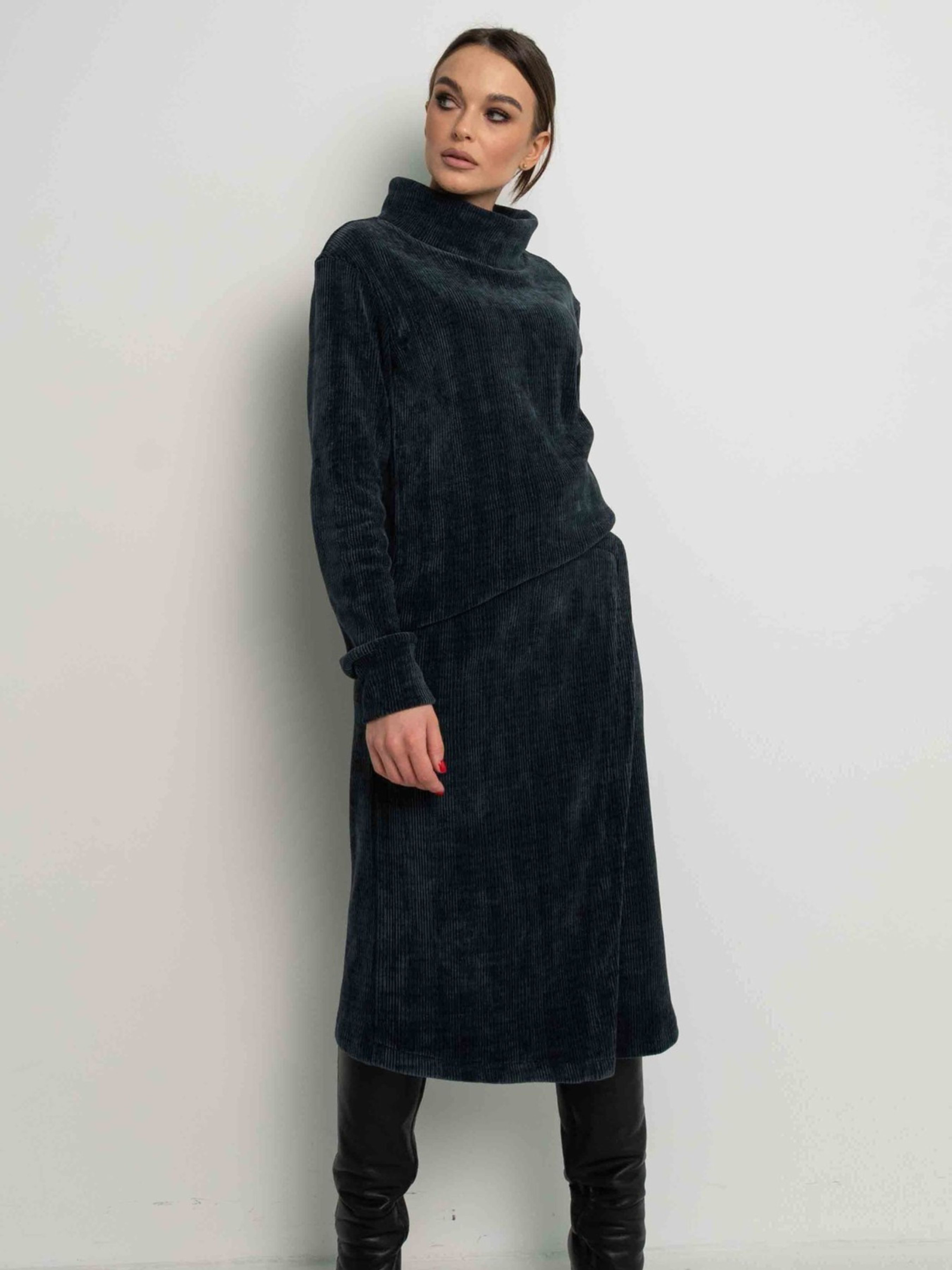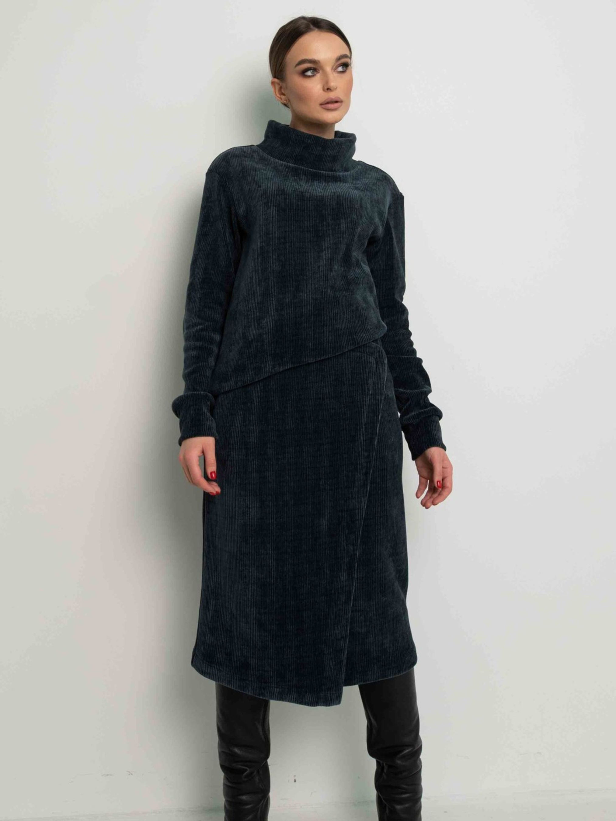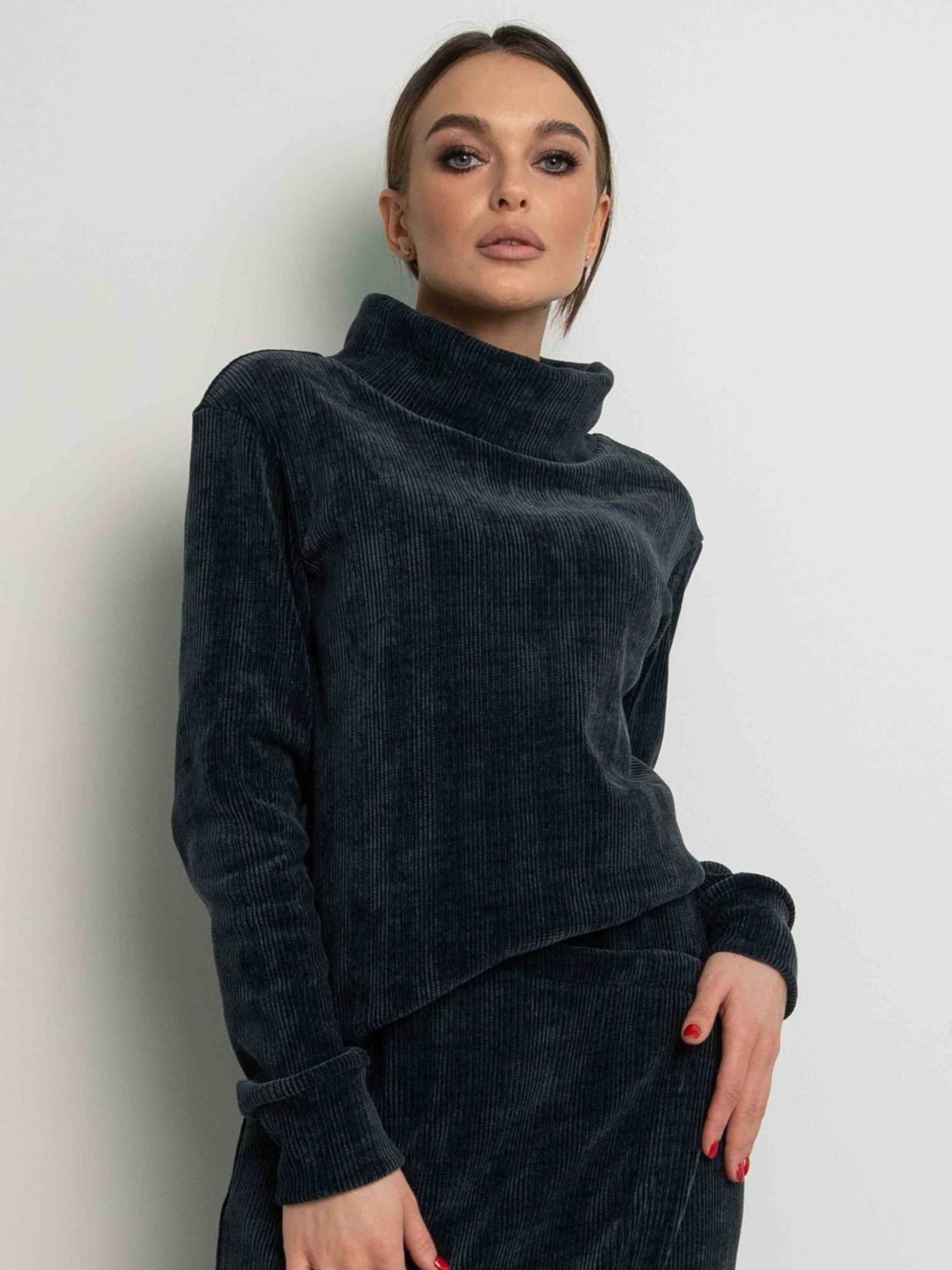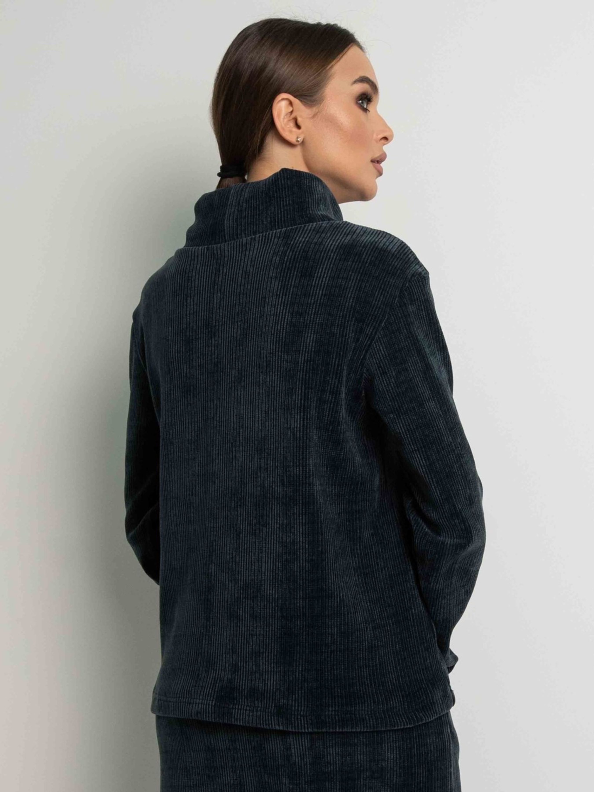 Універсальний світшот вільного силуету, що елегантно сягає лінії стегон, стане затишним та стильним доповненням вашого гардеробу. Його особливістю є подовжена горловина та бічні шви, перенесені на передню частину виробу, що створює цікавий акцент. Рукави зі спущеною лінією плеча завершуються акуратними манжетами. Виготовлений з м'якого та приємного на дотик щільного трикотажу велюр, цей світшот подарує вам відчуття комфорту протягом усього дня. Його вільний крій не сковує рухів, а універсальний дизайн дозволяє легко поєднувати його з будь-яким низом – від спідниць різної довжини та фасонів до брюк як вільного, так і вузького крою, створюючи різноманітні стильні образи. Характеристики: Матеріал: Щільний трикотаж велюр (56% поліестр, 34% віскоза, 10% бавовна) Крій: Вільний силует Довжина: До лінії стегон Горловина: Подовжена Рукав: Зі спущеним плечем, з манжетою Деталі: Бічні шви перенесені на перед Стиль: Універсальний, повсякденний, стильний Комбінаторність: Відмінно поєднується зі спідницями та брюками різного крою Властивості: М'який, приємний на дотик, комфортний