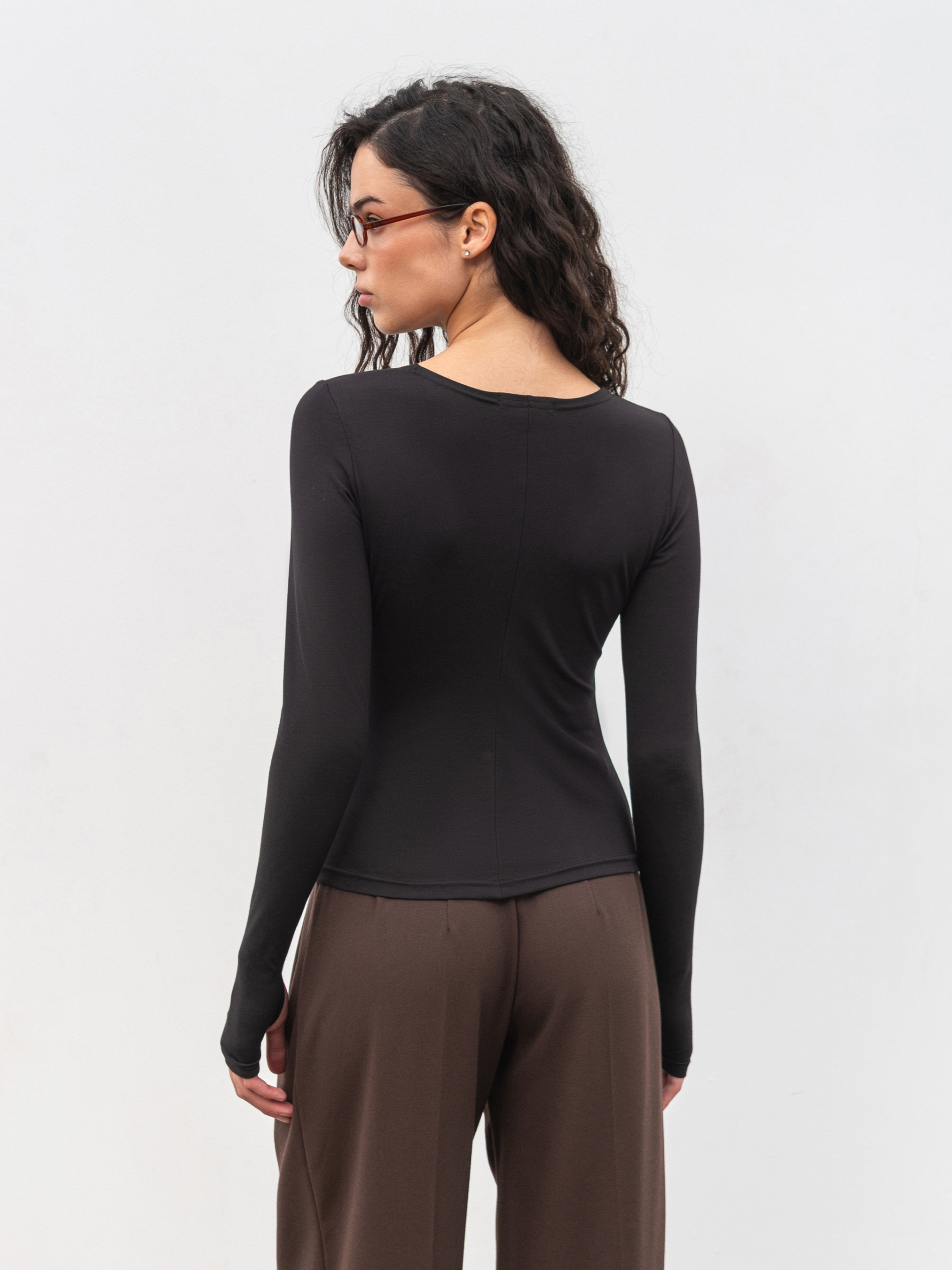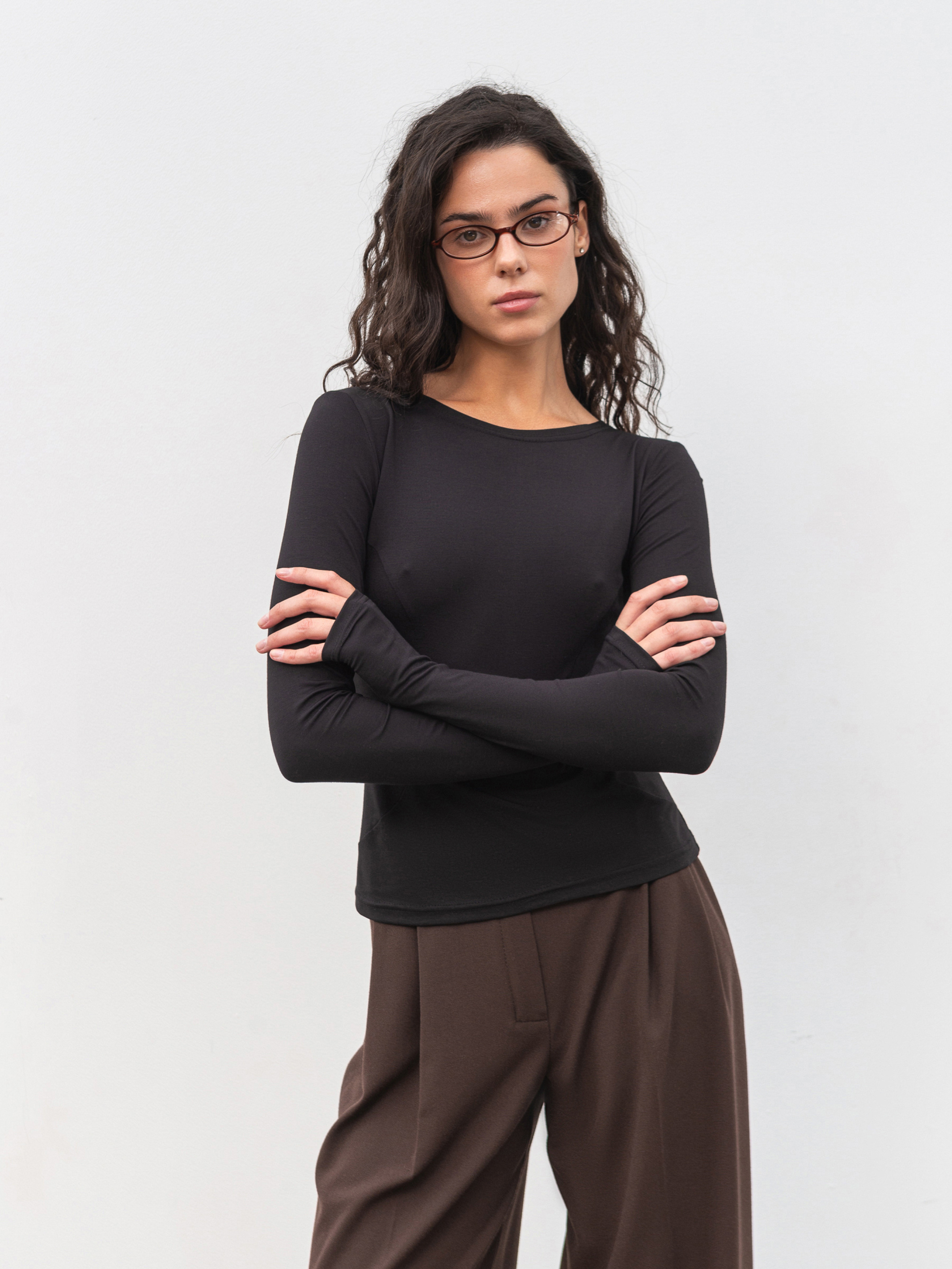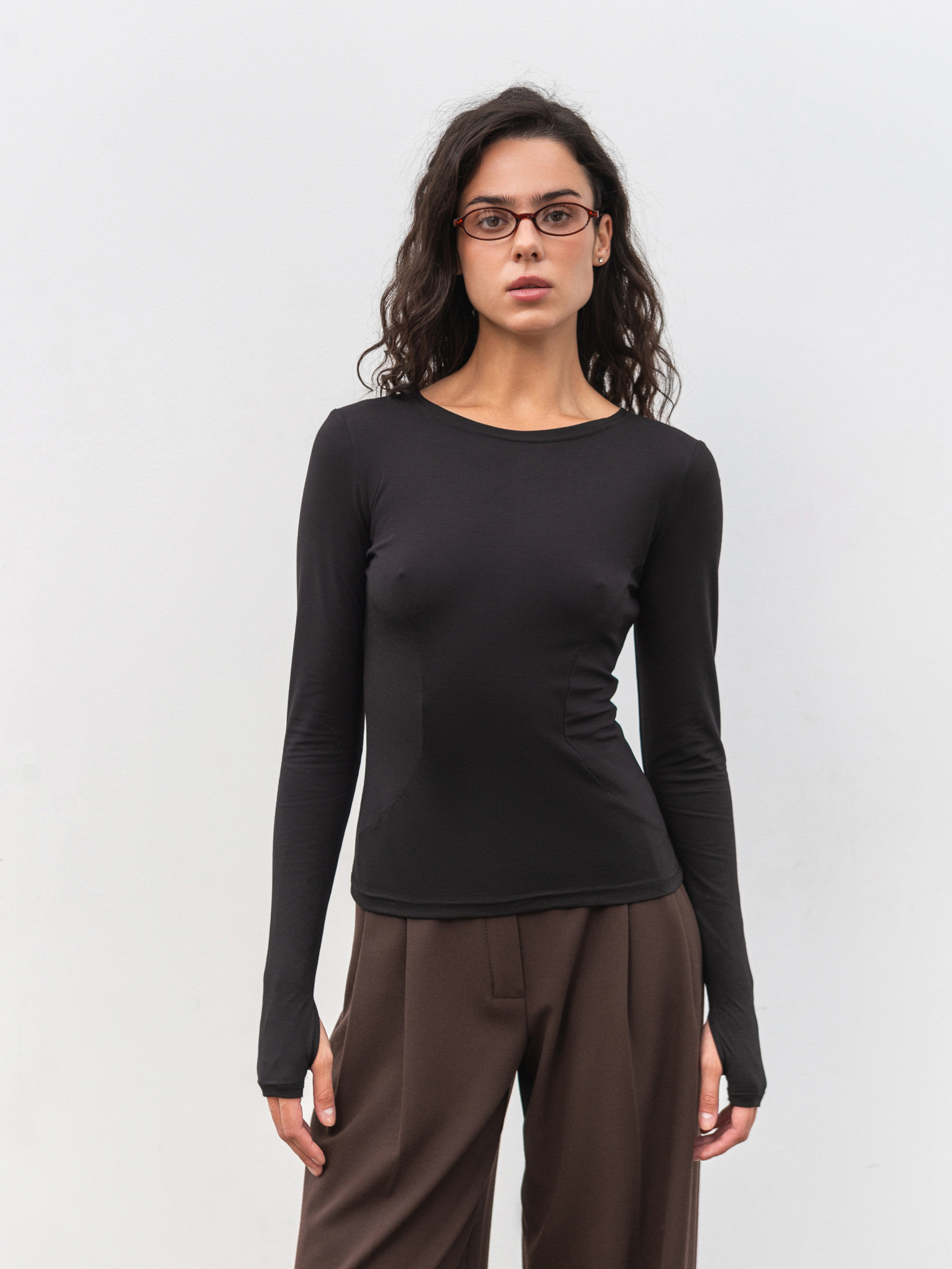 Базовый приталенный лонг с деликатными вертикальными швами, визуально удлиняющими силуэт. Дополнительный акцент разрезы для пальцев, придающие модели современный спортивный вайб. Изготовлен из плотного трикотажа (65% вискоза, 30% нейлон, 5% спандекс), приятного к телу и устойчивого к катанию. Лонг хорошо держит форму, обеспечивает комфорт и легко сочетается как с повседневными, так и спортивными образами. Доступные цвета: молочный, черный, коричневый. К черному варианту можно подобрать штаны из комплекта.