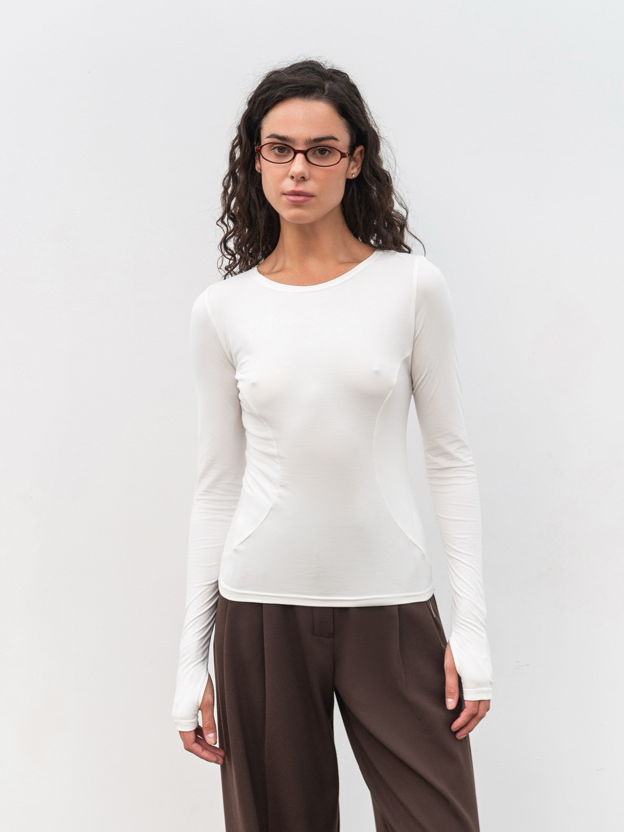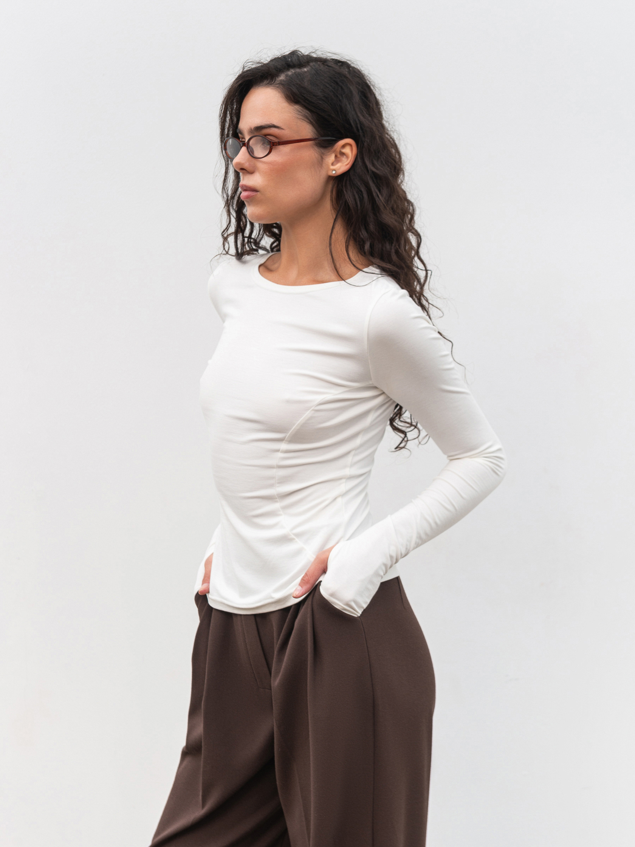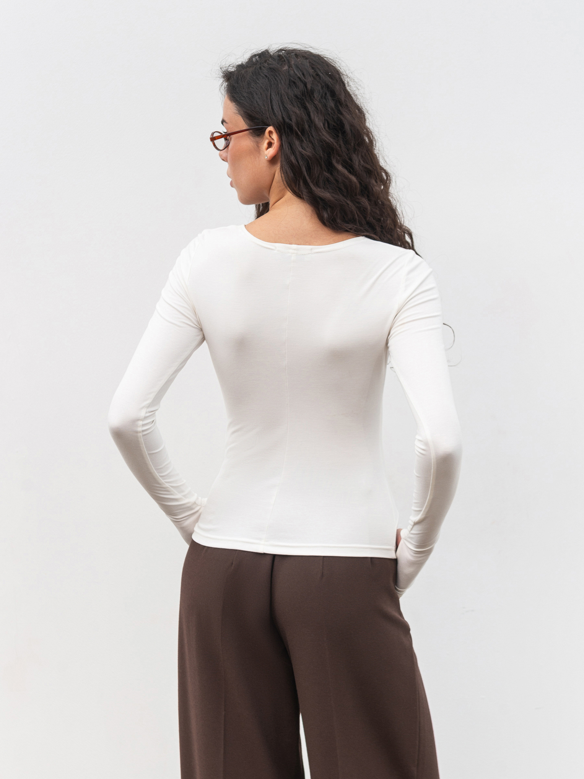 Базовый приталенный лонг с деликатными вертикальными швами, визуально удлиняющими силуэт. Дополнительный акцент разрезы для пальцев, придающие модели современный спортивный вайб. Изготовлен из плотного трикотажа (65% вискоза, 30% нейлон, 5% спандекс), приятного к телу и устойчивого к катанию. Лонг хорошо держит форму, обеспечивает комфорт и легко сочетается как с повседневными, так и спортивными образами. Доступные цвета: молочный, черный, коричневый. К черному варианту можно подобрать штаны из комплекта.
