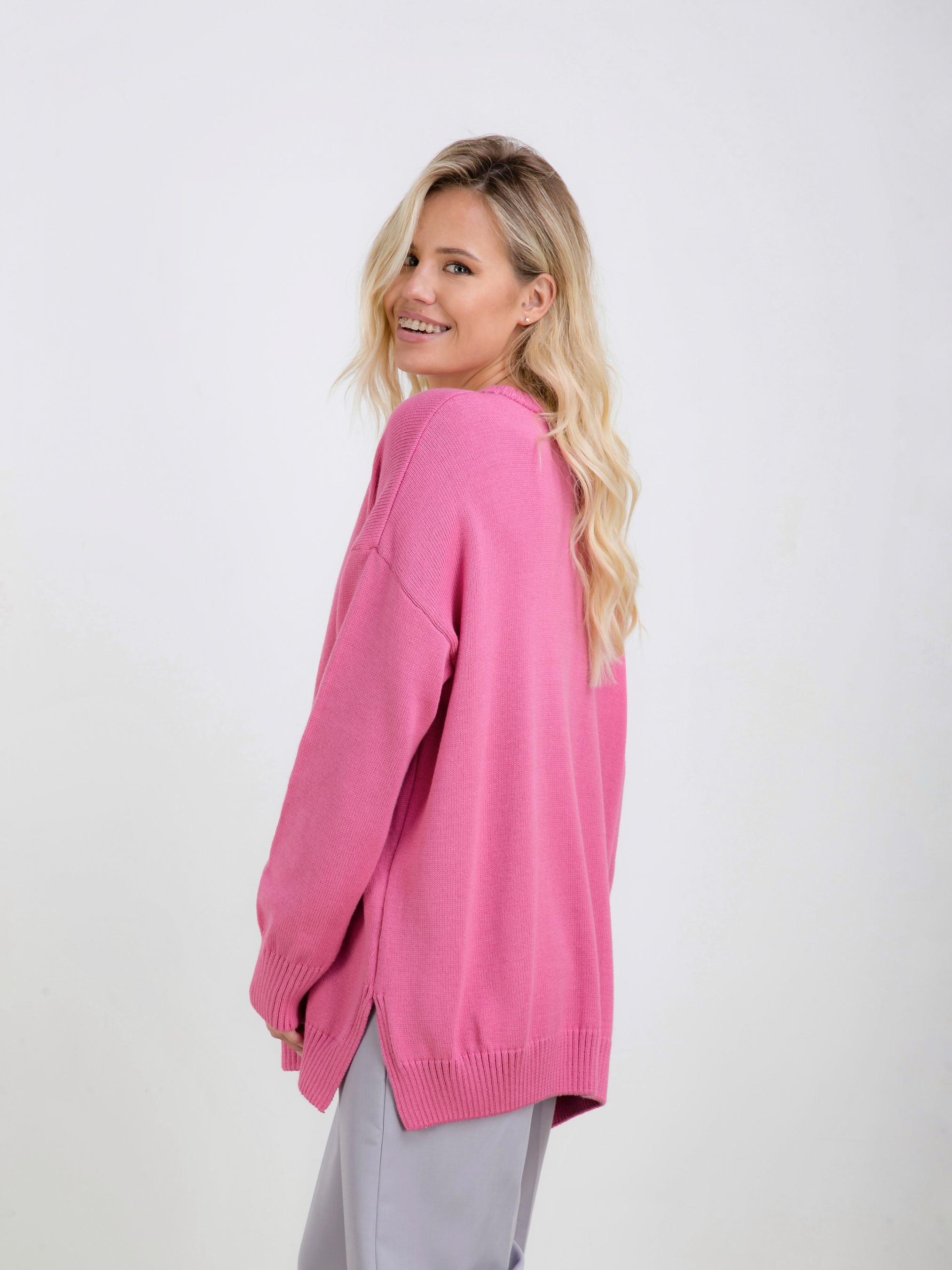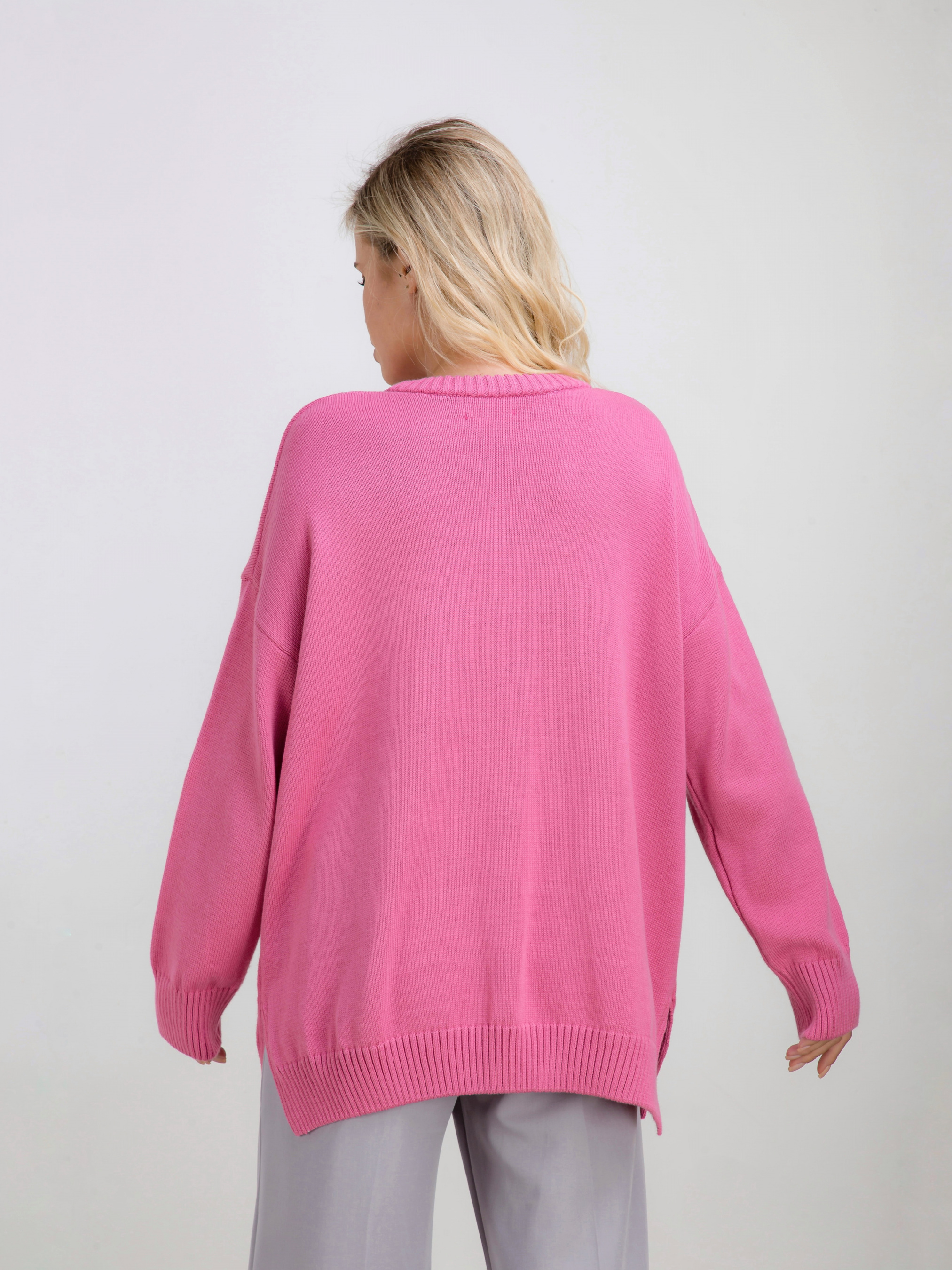 Повседневный комфортный свитер. Свободный крой, спущенный плечевой шов. По бокам есть небольшие разрезы. Модель станет хорошим дополнением образам с джинсами, классическими брюками или юбками. Комбинировать можно с лаконичной сумкой и аксесуарами на запястья.