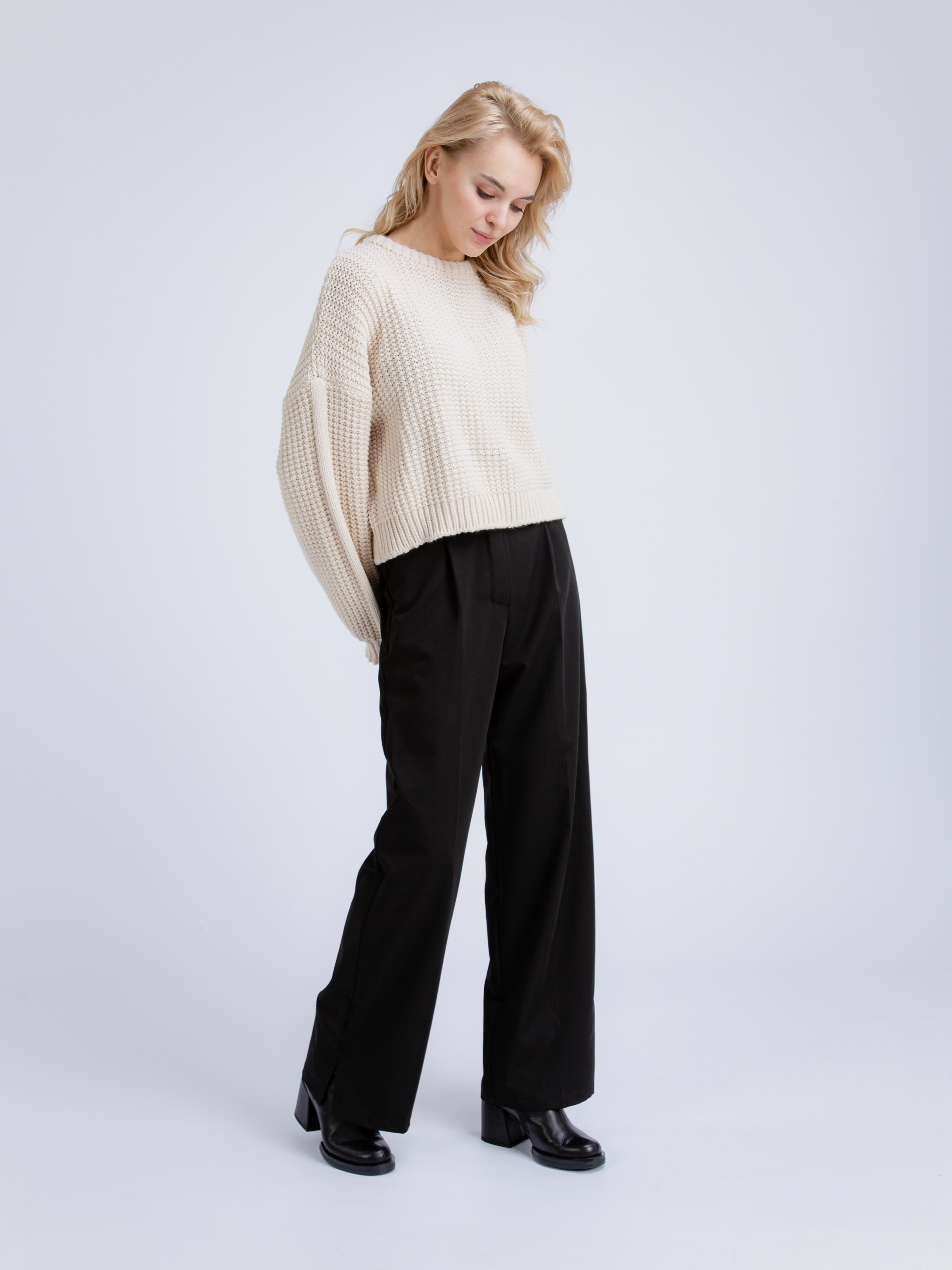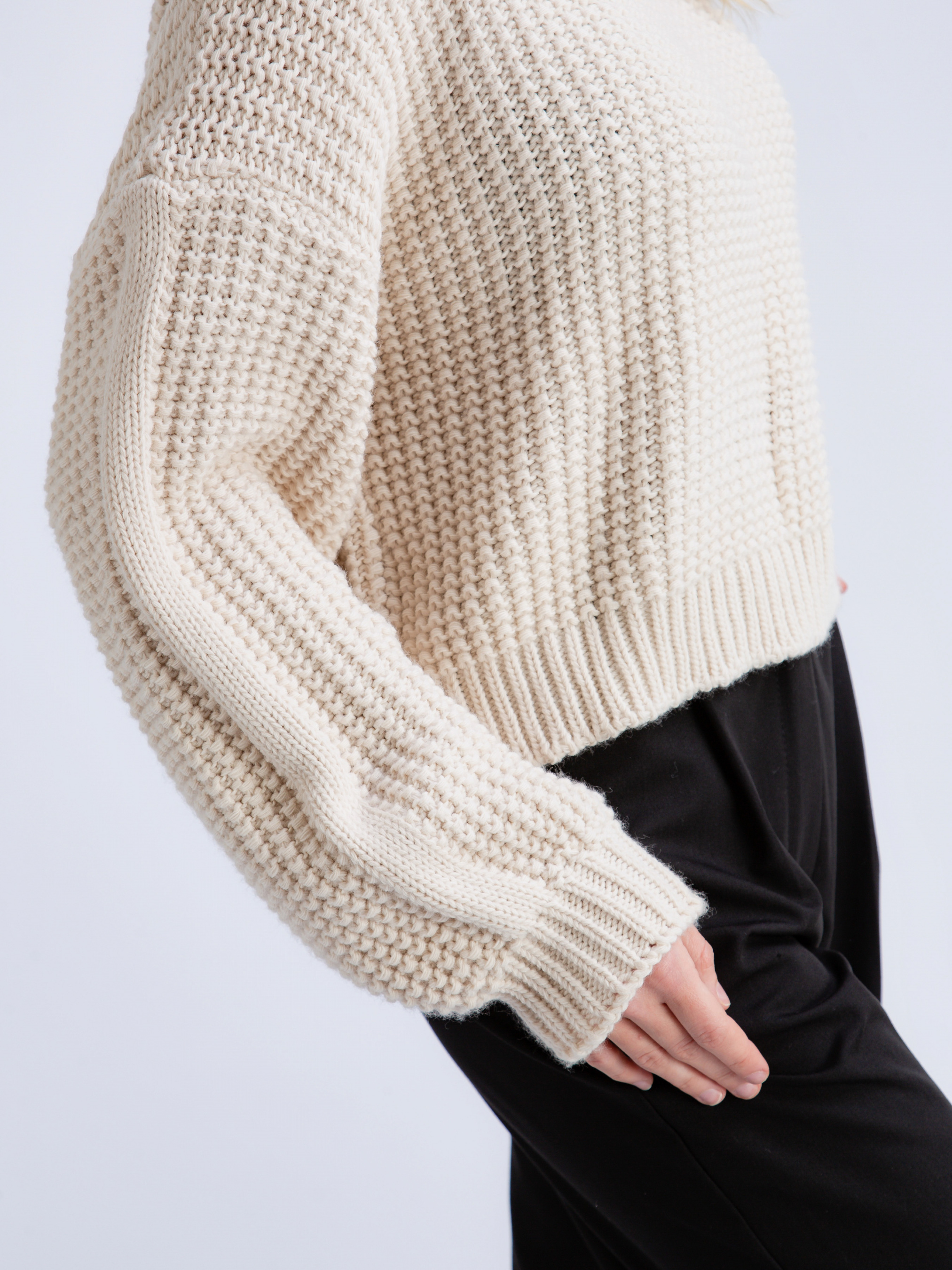 Свитер "Такома" ROMASHKA Укороченый свитер средней вязки. Трендовый и теплый вариант на прохладную погоду. Манжеты закрывают кисть руки, что прибавляет больше уюта. Можно сочетать с брюками, юбками, обыгрывая образ небольшой сумкой и украшениями.