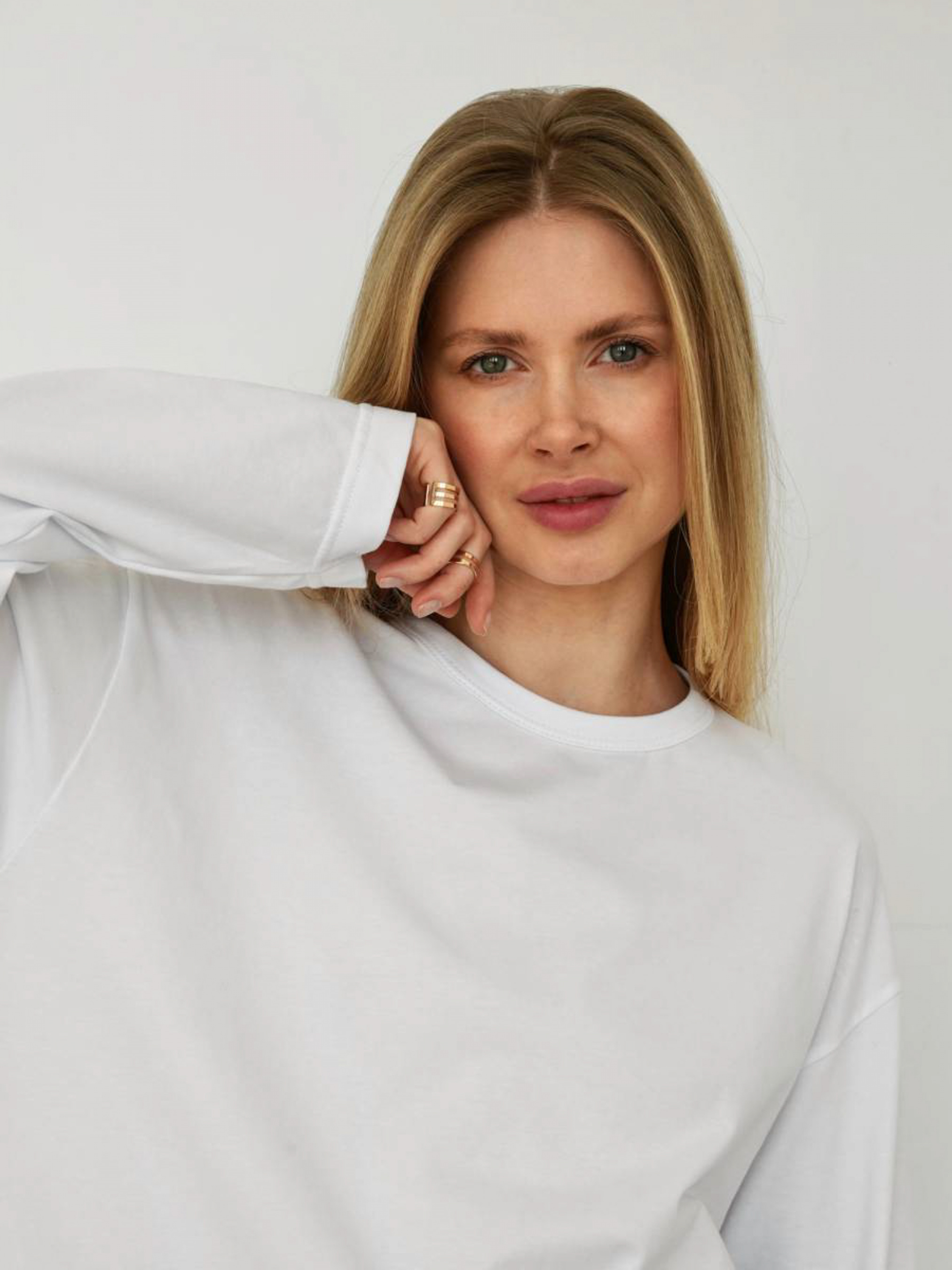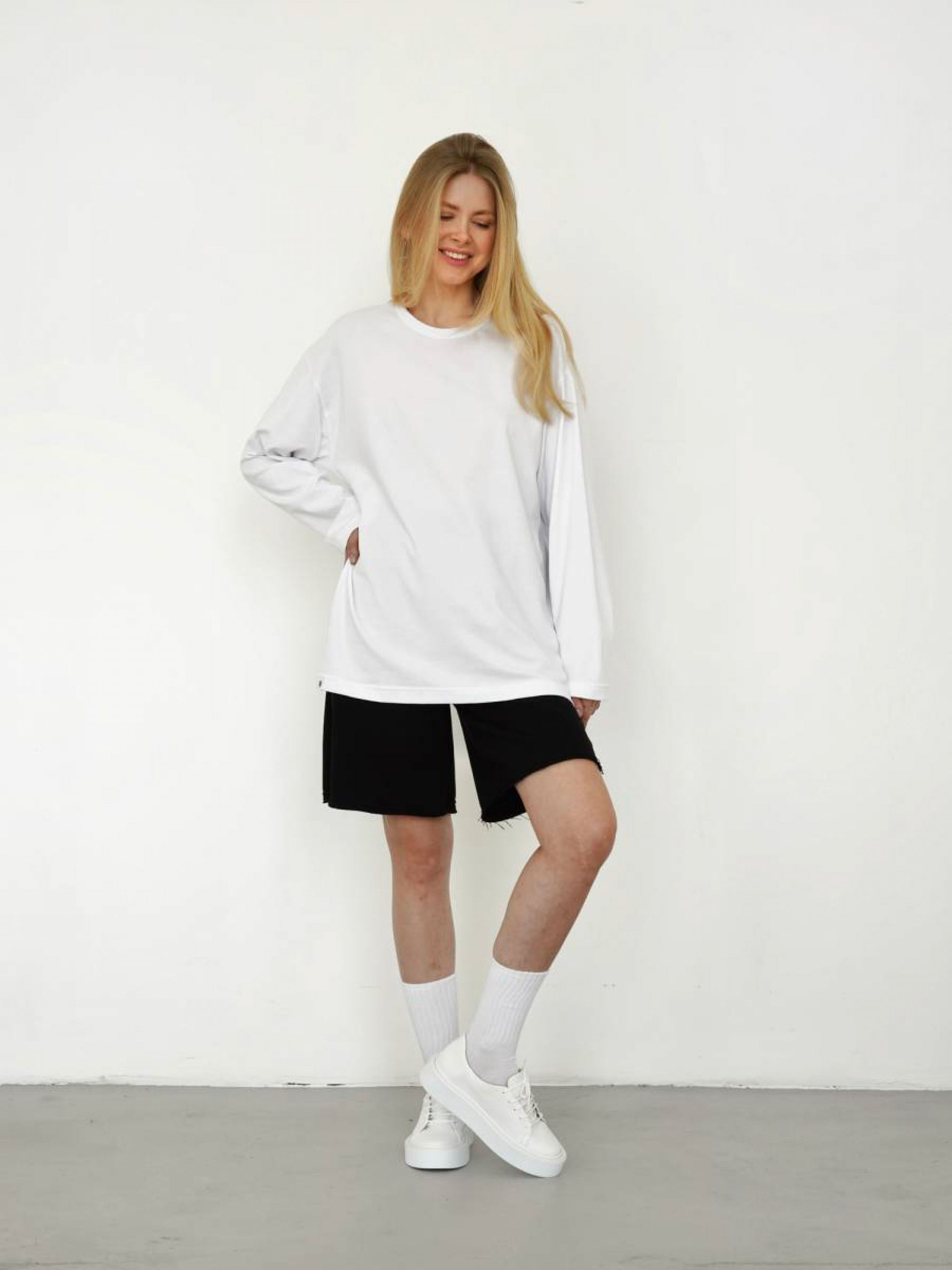 Удобный базовый лонгслив на каждый день. Два вариант цветов: в полностью белом цвете и в розом с белой горловиной. Выполнен из кулира (50% хлопок, 47% вискоза, 3% эластан). Очень мягкий и приятный на ощупь. Лонгслив можно носить как в спортивных (например, в сочетании с шортами "Фехта" или джогерами "Сальвадор"), так и в кежуал образах с джинсами ("Таллин", "Хартум") и юбками (например, "Найроби", "Ватерлоо" ). В весенне-осенний период лонгслив будет стильно выглядеть в образе с нашей косухой Твист, особенно если отстегнуть рукава, и курткой Буффало. Цвет изделия на фотографии может отличаться от реального цвета товара, что связано с особенностями цветопередачи на мониторе, настройками фотоаппаратуры или другими факторами. One size - Длина по спине: 78 Длина рукава : 52 Полуобхват груди: 59 Плечи : 52