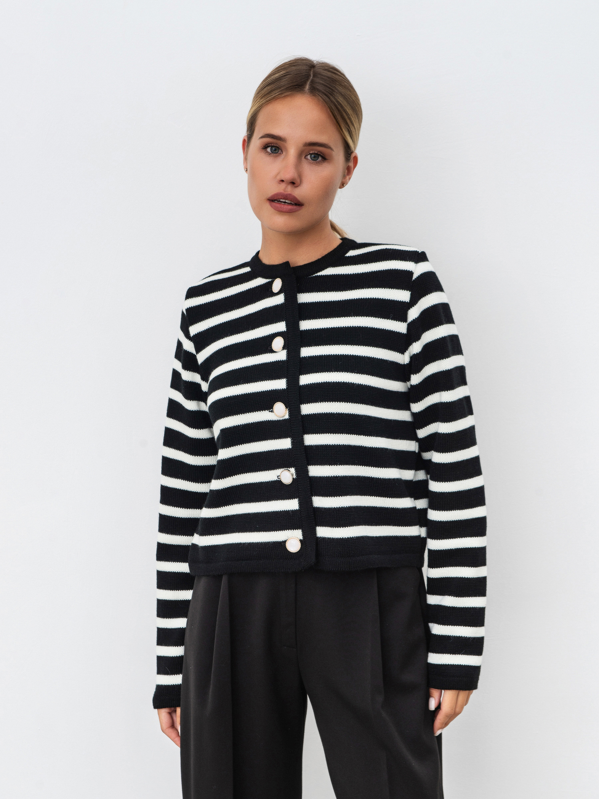 Кардиган лаконичного фасона в стиле Old monay . Идеально подойдет под джинсы, брюки или юбки классического или повседневного фасона. Теплая нитка, в составе 20% шерсти.