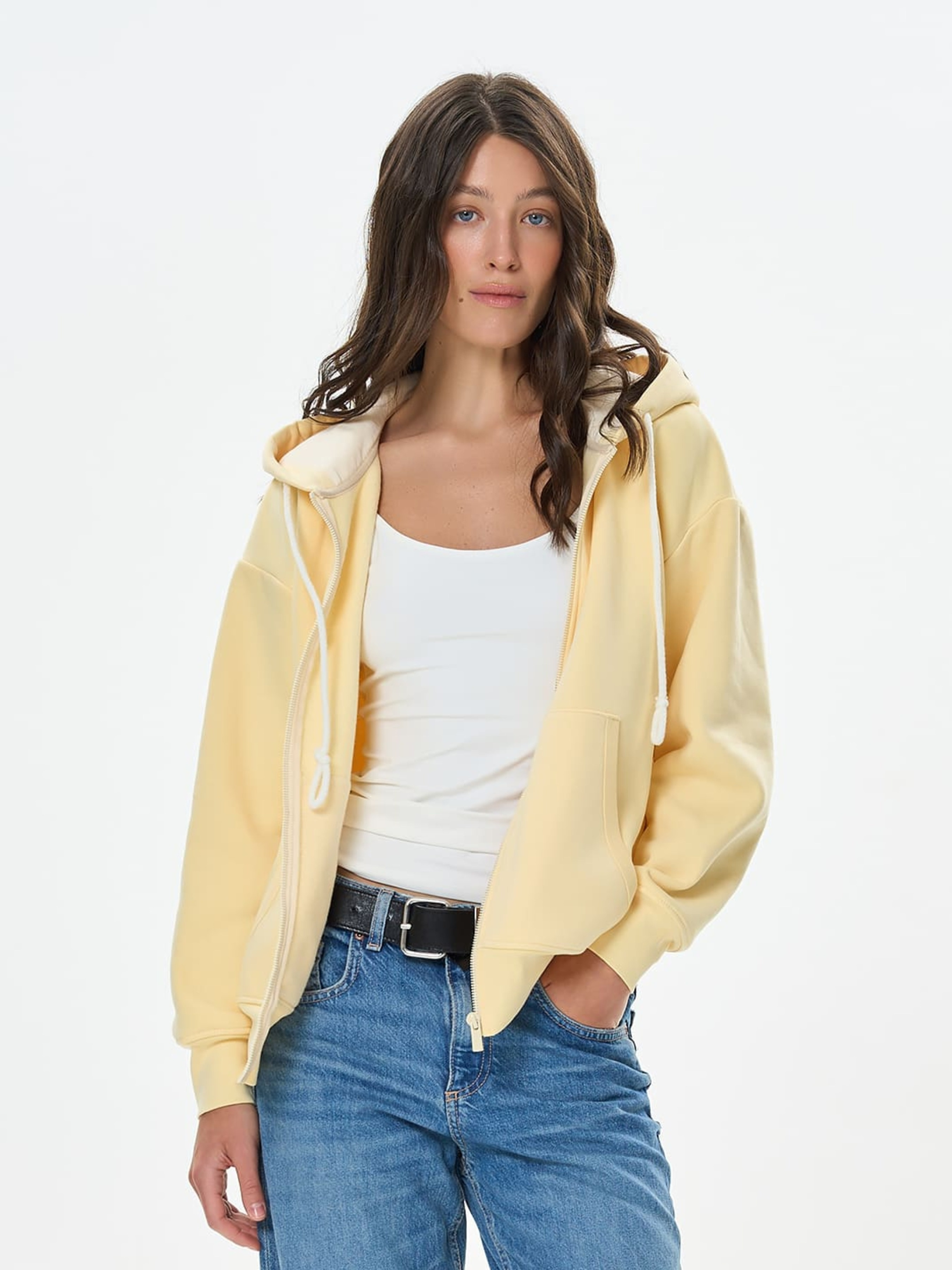 Теплое женское худи на молнии создано для комфорта и уюта в прохладное время года. Модель имеет капюшон со шнурком, прорезные карманы спереди и приспущенную линию плеча, что придает образу непринужденности. Свободный крой и мягкий трикотаж с начесом приятно греют и не сковывают движений. Благодаря универсальному дизайну худи легко сочетается со спортивными и повседневными вещами, становясь надежным основанием зимнего гардероба. Материал Футер с начесом изготовлен с использованием современных технологий на трикотажной фабрике Роза. Это высококачественное трикотажное полотно имеет плотную структуру с внутренней мягкой начесной поверхностью, которая сохраняет тепло и обеспечивает ощущение комфорта даже в самые холодные дни. Благодаря добавлению 14% полиэстера ткань остается эластичной, сохраняя форму и вид даже после многократной стирки. Натуральный состав и продуманная разработка производства обеспечивают долговечность материала и его устойчивость к деформации. Рекомендации по уходу Стирать вручную или в деликатном режиме при температуре не выше 30°C. Применять неагрессивные средства для стирки.