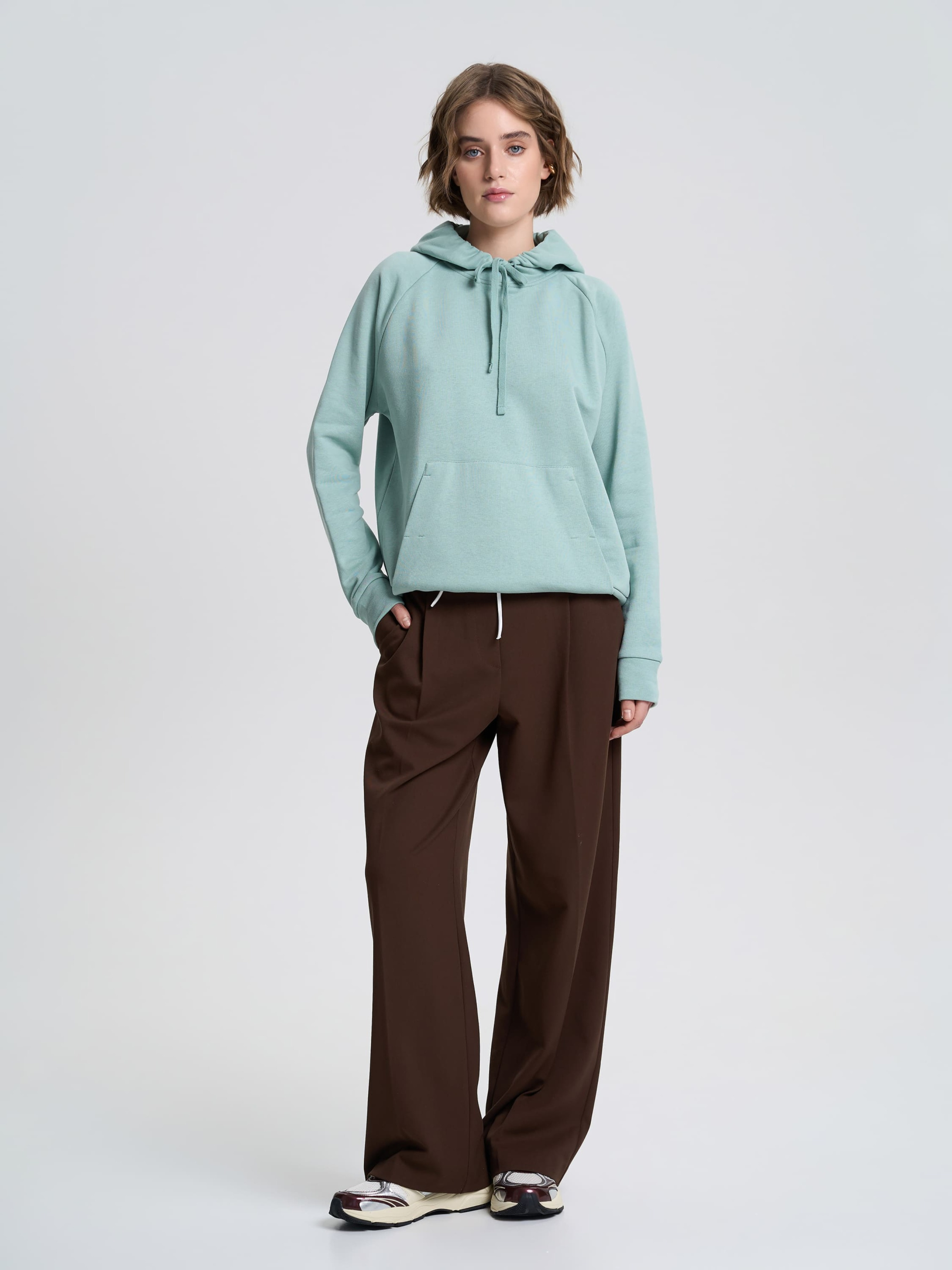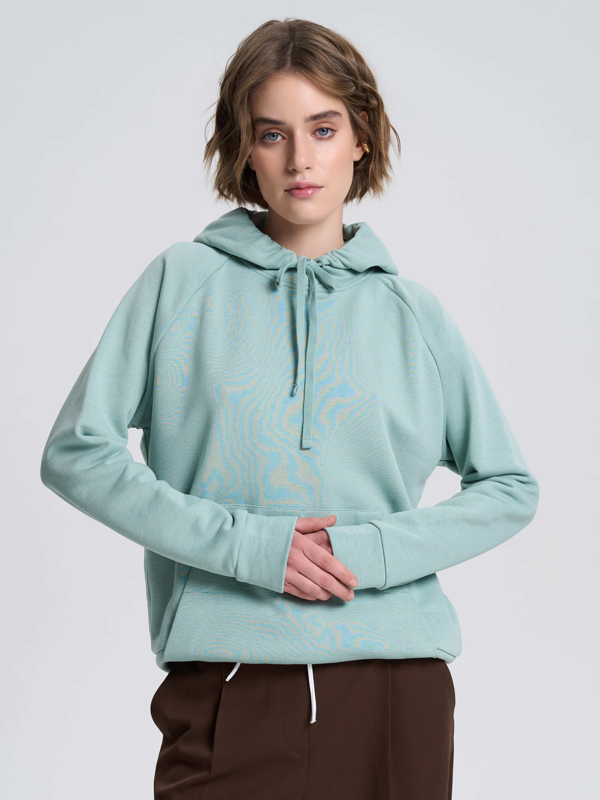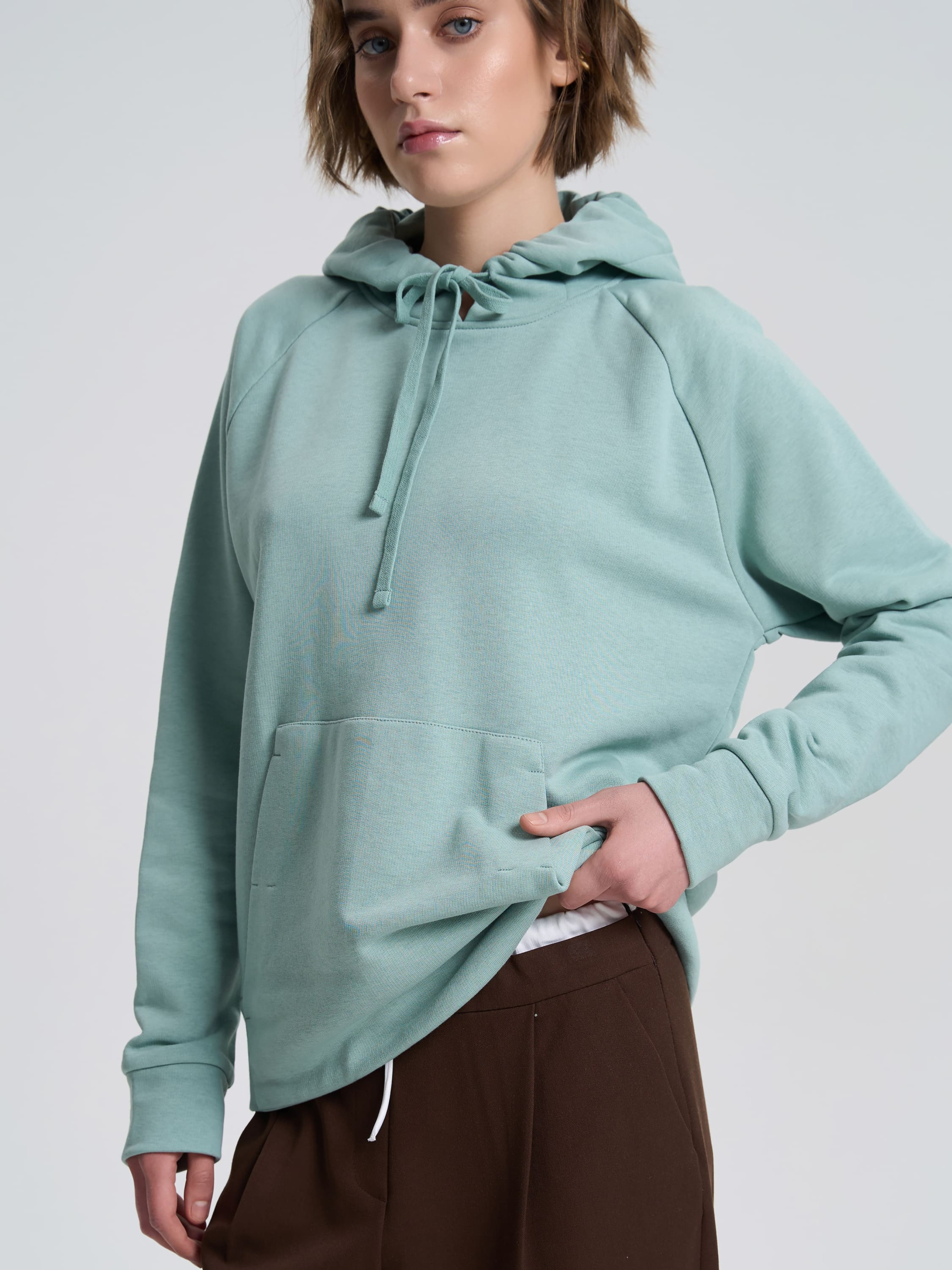 Женское худи с акцентным кроем – стильная и комфортная модель для повседневного гардероба. Свободный силуэт с мягкими линиями дополнен рукавами-регланами, обеспечивающими свободу движений. Спереди размещен накладной карман, который гармонично интегрирован в дизайн за счет смещенных швов. Капюшон со шнурком добавляет худи функциональности, а манжеты и нижний край собраны для лучшей посадки. Благодаря тщательно продуманным деталям это изделие сочетает эстетику и комфорт, идеально дополняя как спортивные, так и casual-образы. Материал Ткань с тремя составляющими, состоящая из петелек. На изнанке ткани приятный гриф в виде петель. Технология производства обеспечивает полотну плотность, прочность и долговечность. Практичный, натуральный материал, стойкий к деформации. Хорошо пропускает воздух и отлично впитывает влагу, поддерживая комфортную температуру тела. Рекомендации по уходу Изделия из трехнитки рекомендуется стирать либо вручную, либо в стиральной машине в деликатном режиме при температуре не выше 30 градусов.