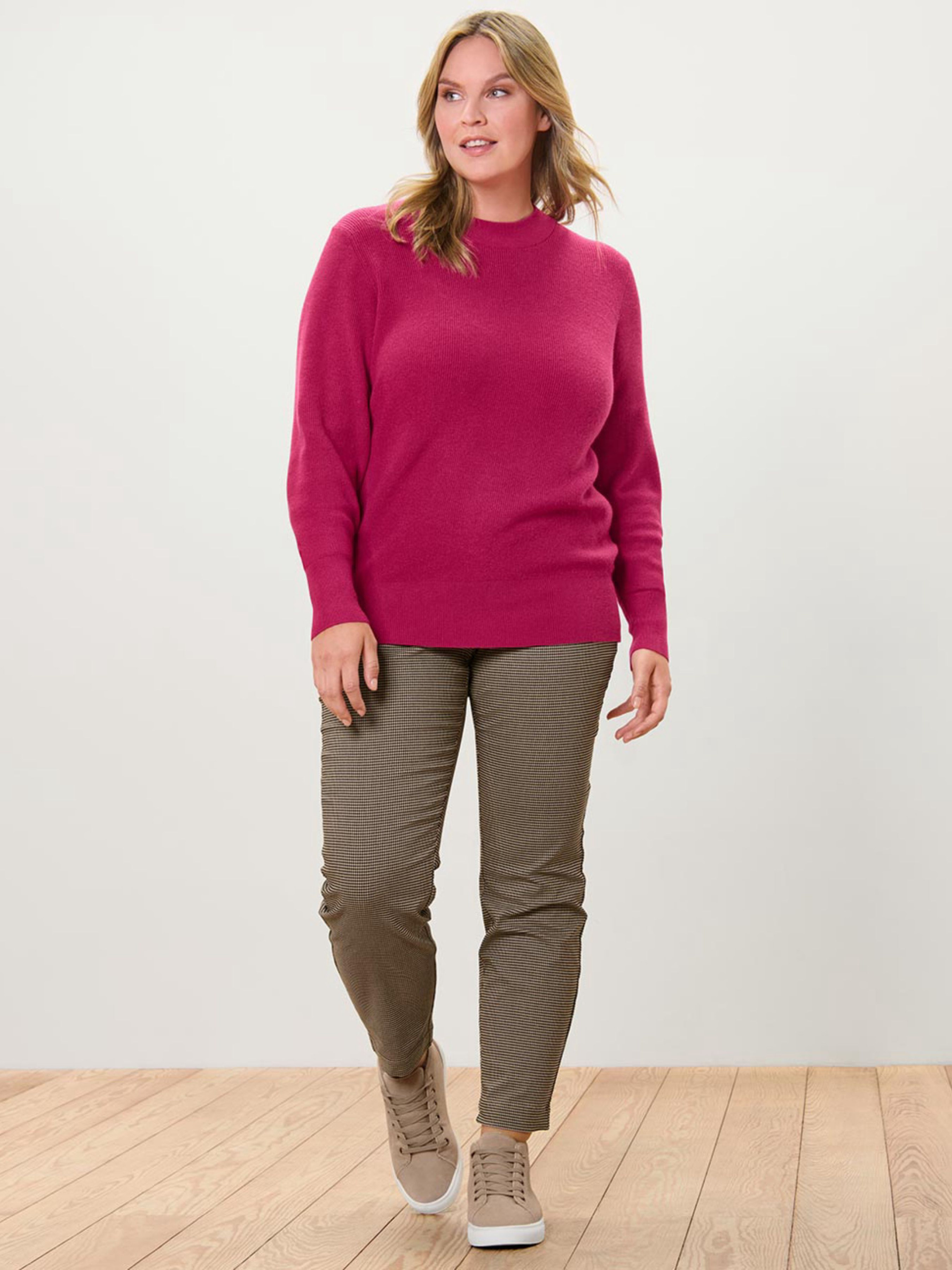 Стильный базовый свитер из мягкой вискозной смеси станет универсальным дополнением к любому гардеробу. Лаконичный круглый вырез и широкие манжеты на рукавах и подоле придают изделию аккуратности и современный вид. Благодаря тонкой связке свитер комфортно сидит по фигуре, легко сочетается как с классическими брюками, так и с джинсами. Материал: 49% вискоза (Livaeco™), 30% полиэстер, 21% полиамид Цвет: Малиново-красный Крой: базовый, удобный Детали: круглый вырез, широкие манжеты на рукавах и подоле Особенности: мягкое качество с вискозой, приятная к телу ткань Проверка: протестировано на наличие вредных веществ Размер 36-38 (S/M или 42-44 по украинской шкале): ПОГ: 50 см Длина рукава: 61 см Длина: 66 см Одежда бренда Tchibo обычно не имеет бумажных этикеток – в большинстве случаев внутренние бирки с составом ткани, названием бренда или размером могут отсутствовать или срезать.