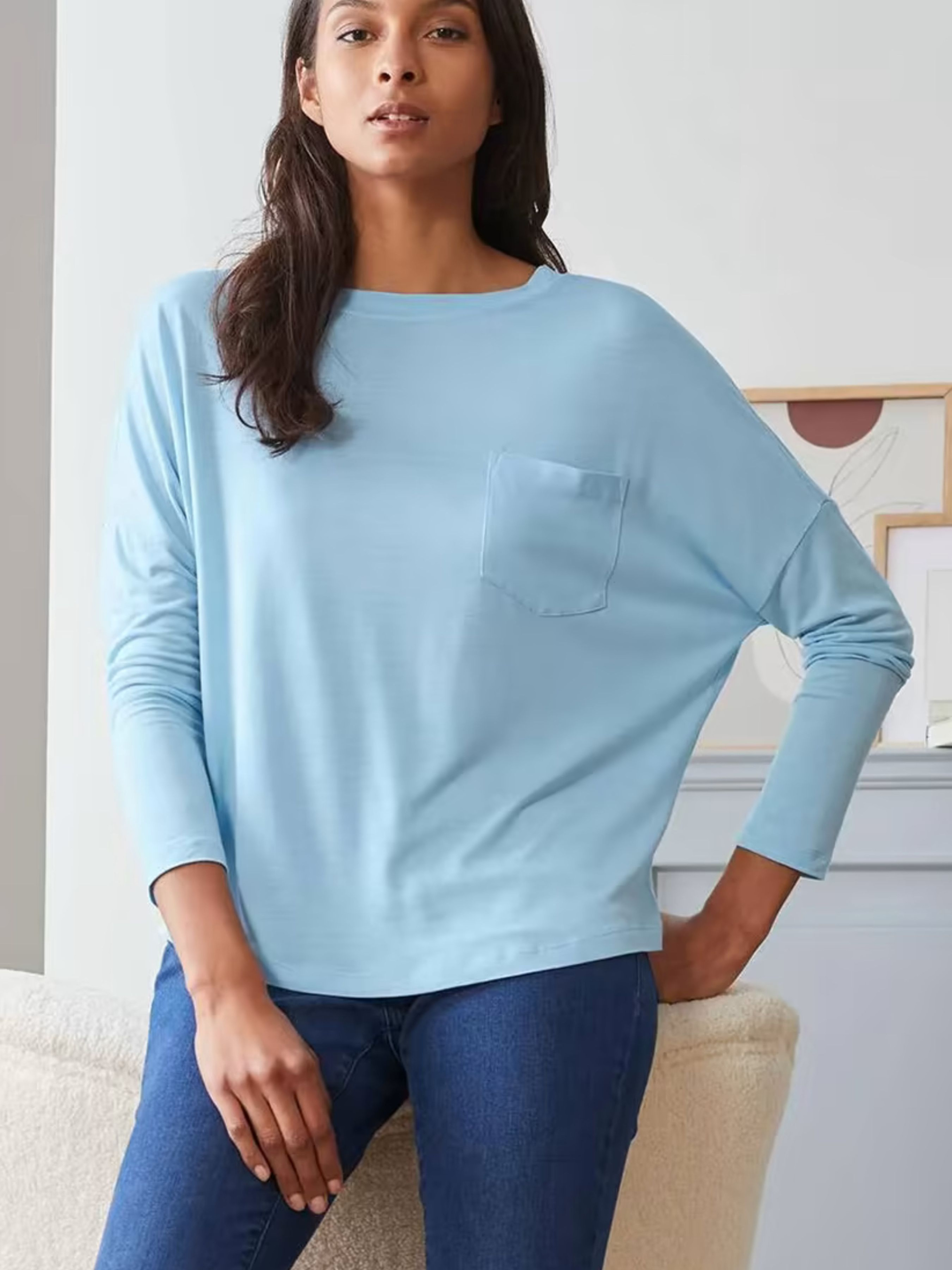 Мягкое качество, изготовленное из чистой лиоцелли. Вырезные плечи с прикрепленными рукавами «летучая мышь» длиной 7/8. Накладной нагрудный карман. Слегка закругленный край. Рубашка летучая мышь с круглым вырезом. Спинка с разделением. Проверено содержание вредных веществ – посторонними аккредитованными институтами. Обратите внимание, указаны размеры по Евро шкале (Украинский размер = Евро + 6) Состав: 100% лиоцелл. 44/46 евро размер (50/52 или XL/XXL европейский) ПОГ: 75 см, Длина рукава от горловины: 68 см, Длина: 69 см. Одежда бренда TCM Tchibo практически вся без бумажных этикеток, за редким исключением, и со срезанными частично или полностью внутренними бирками и ярлыками с составом ткани и другими данными.