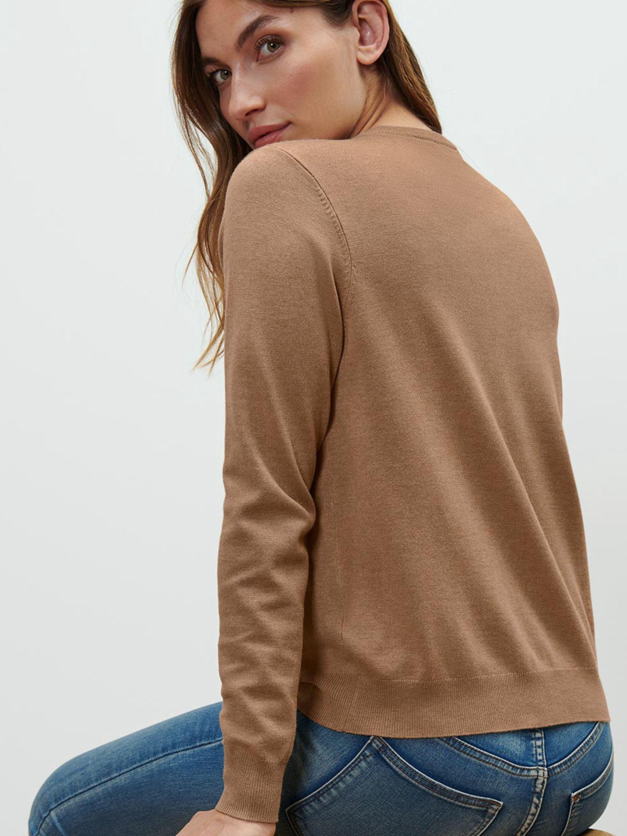 Кардиган софт качества – с вискозой. Эластичные манжеты в рубчике на горловине, манжетах и подоле. планка на пуговицах с блестящими золотыми пуговицами. круглая горловина. Проверено содержание вредных веществ – посторонними аккредитованными институтами. Обратите внимание, указаны размеры по Евро шкале (Украинский размер = Евро + 6) Состав: 70% вискоза, 30% полиамид. Размер 36/38 евро размер (42/44 или XS/S европейский) ПОГ: 52 см, Длина рукава от плеча: 61 см, Длина: 66 см. Одежда бренда TCM Tchibo практически вся без бумажных этикеток, за редким исключением, и со срезанными частично или полностью внутренними бирками и ярлыками с составом ткани и другими данными.