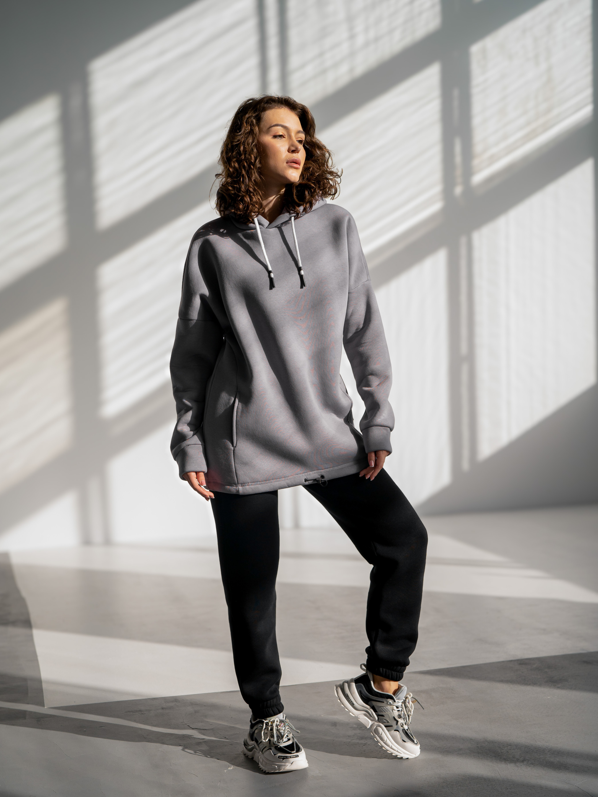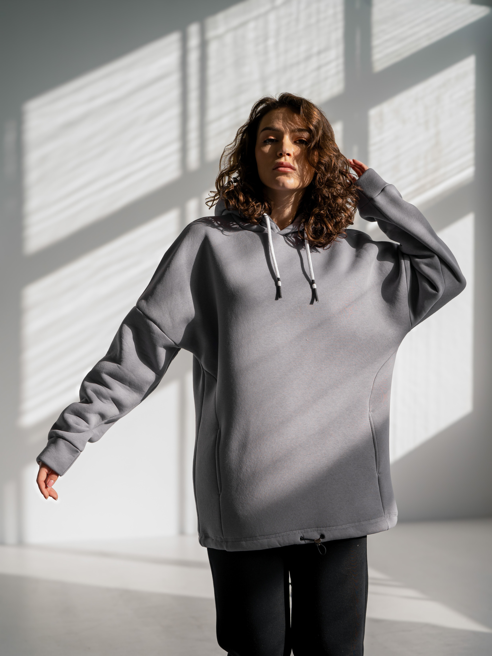 Женская теплая толстовка с двойным капюшоном. Крой свободный "оверсайз" с заниженной линией плеча, также по низу хлопковый шнурок с утяжкой. Ткань: 3-х ниточный футер с гладкой лицевой стороной и тёплой изнанкой с начесом, отлично впитывает и выводит влагу. Состав: 80% хлопок, 20% полиэстер. Рост модели 165 см Параметры 88/62/93 Размер на модели S Внимание! Возможны незначительные отличия фотографии по цветопередачи оттенка цвета одежды: яркость , тон или насыщенность, а не глобально другой цвет.