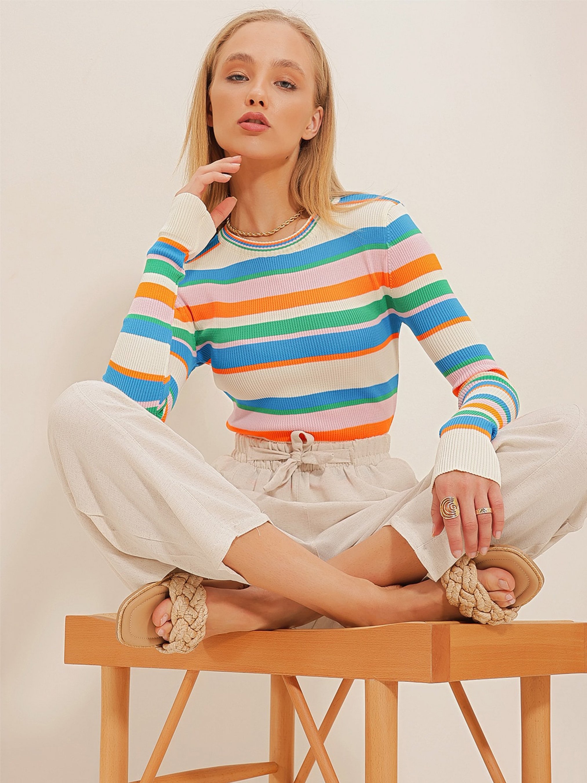 Лонгслив Trend Alacati Stili модель ALC-X10646/Turuncu-Mavi
