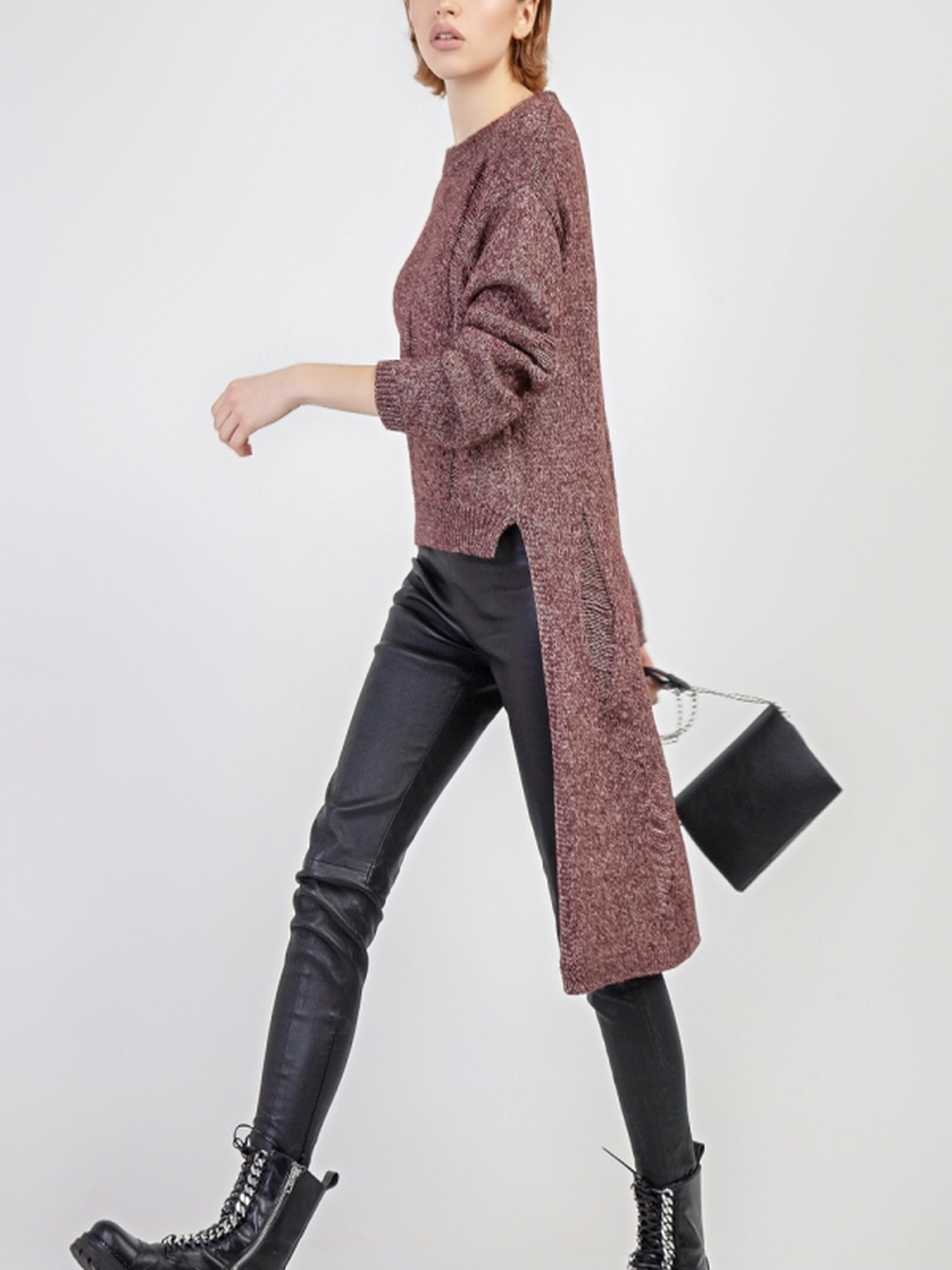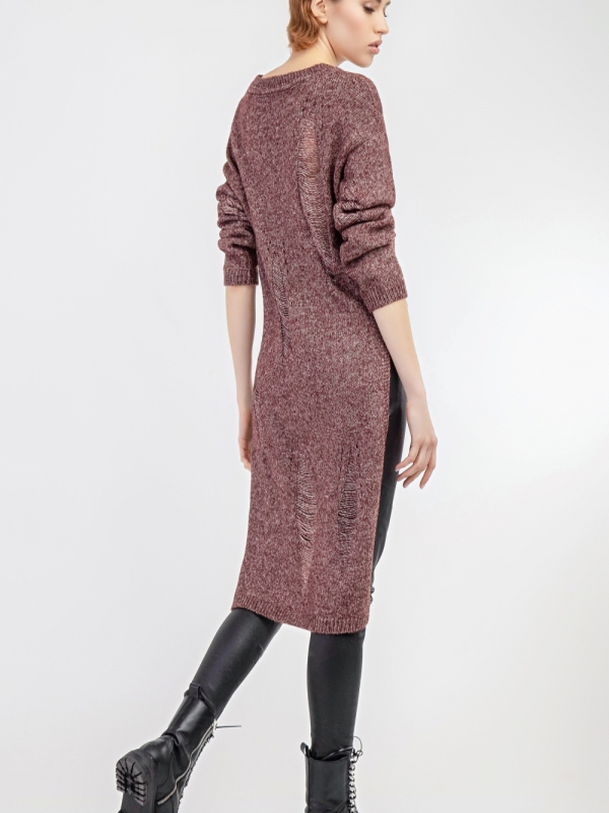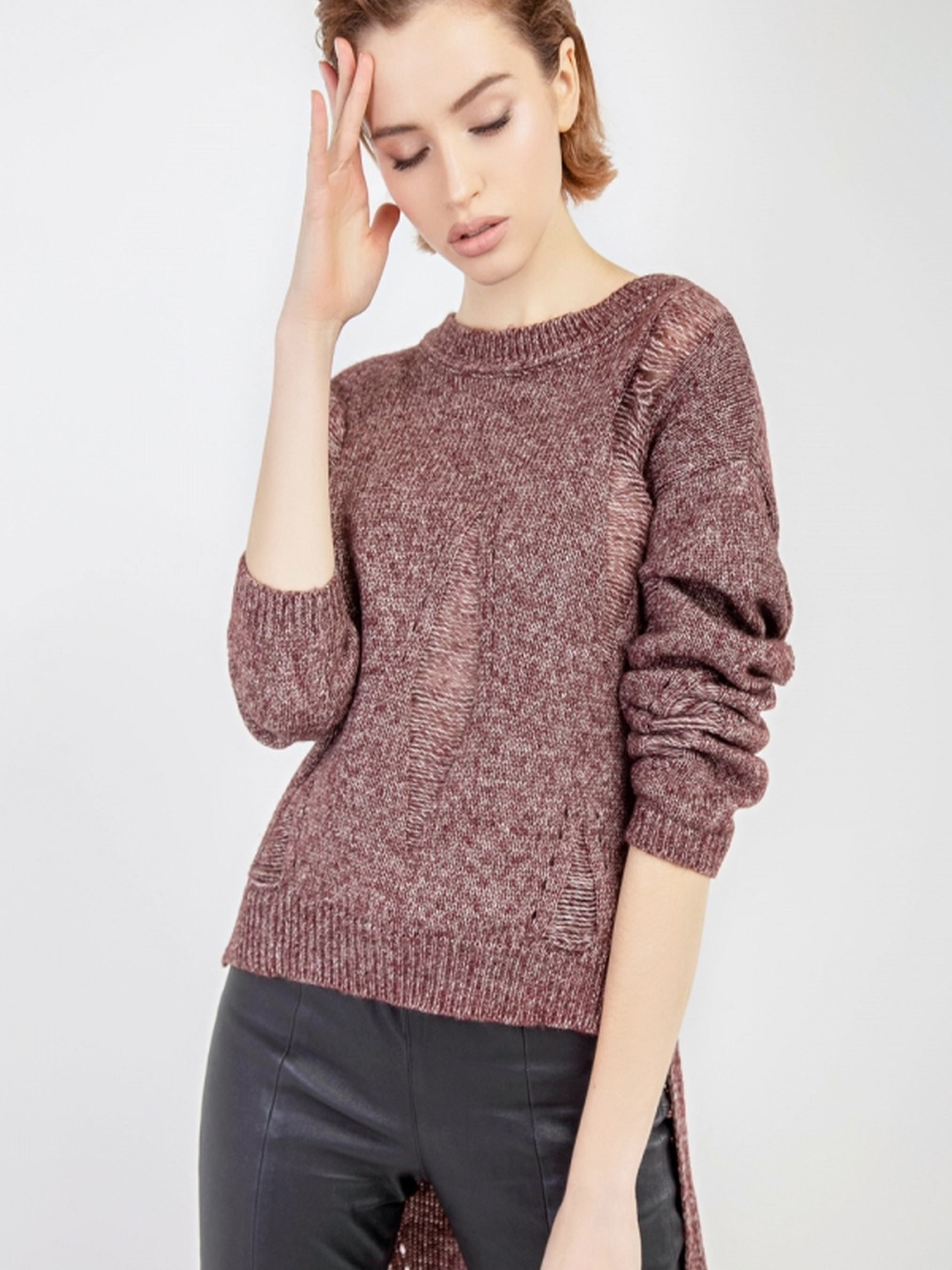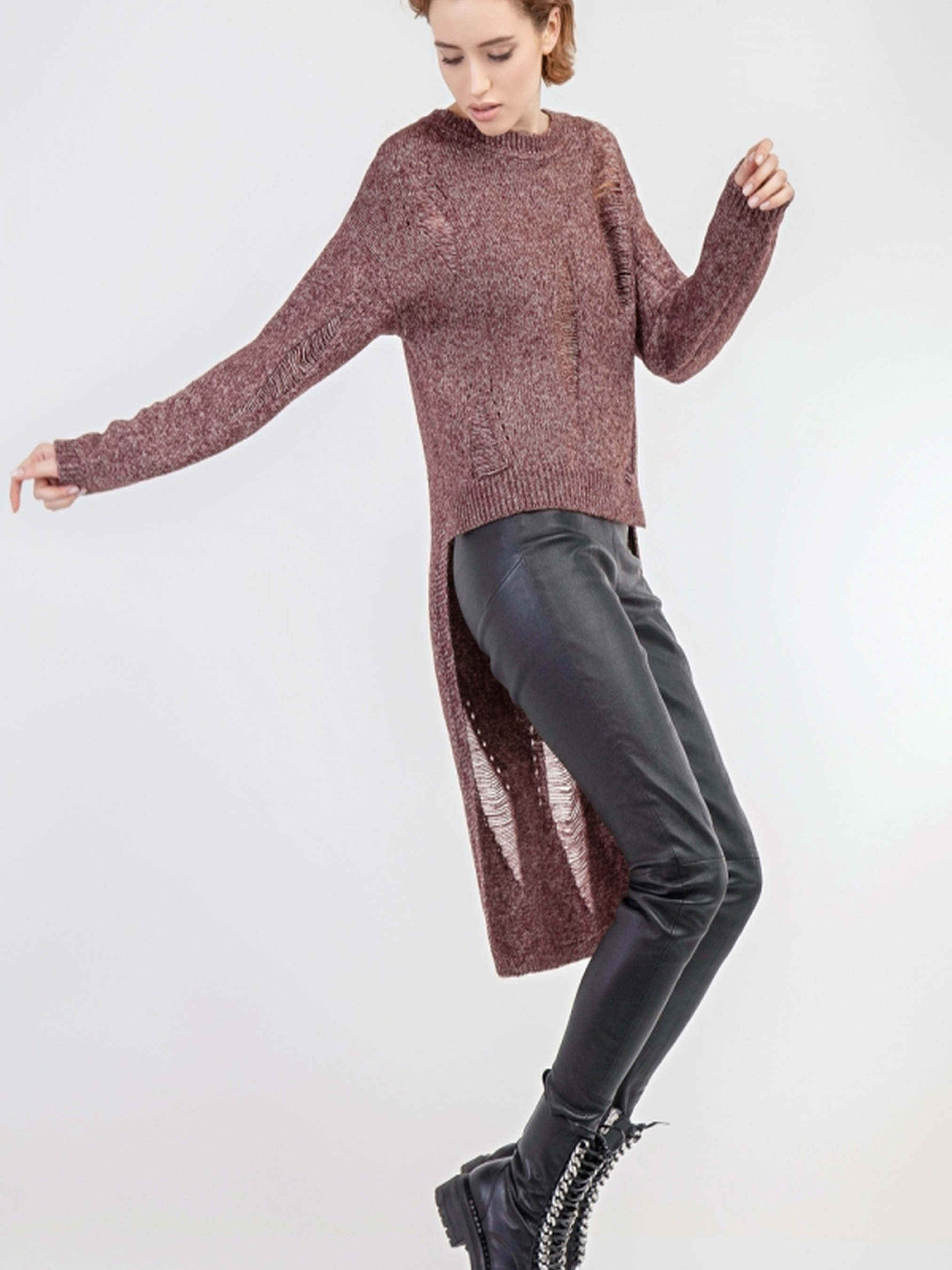Молодіжний асиметричний джемпер з довгою спинкою — стильний та трендовий вибір для створення актуальних образів у стилі casual. Модель виконана з комфортної сумішевої пряжі, що м'яко огортає тіло та дарує приємні тактильні відчуття. Особливістю джемпера є асиметричний низ: коротший спереду (близько 55 см) та видовжений ззаду (до 105 см), що додає образу динаміки та легкості. Легка напівпрозора текстура з протяжками створює витончений візуальний ефект і надає виробу оригінального характеру. Кругла горловина з бейкою та довгий рукав забезпечують зручну посадку. Ідеально поєднується з легінсами, джинсами або вузькими спідницями. Підійде як для повсякденного носіння, так і для стильних міських луків.