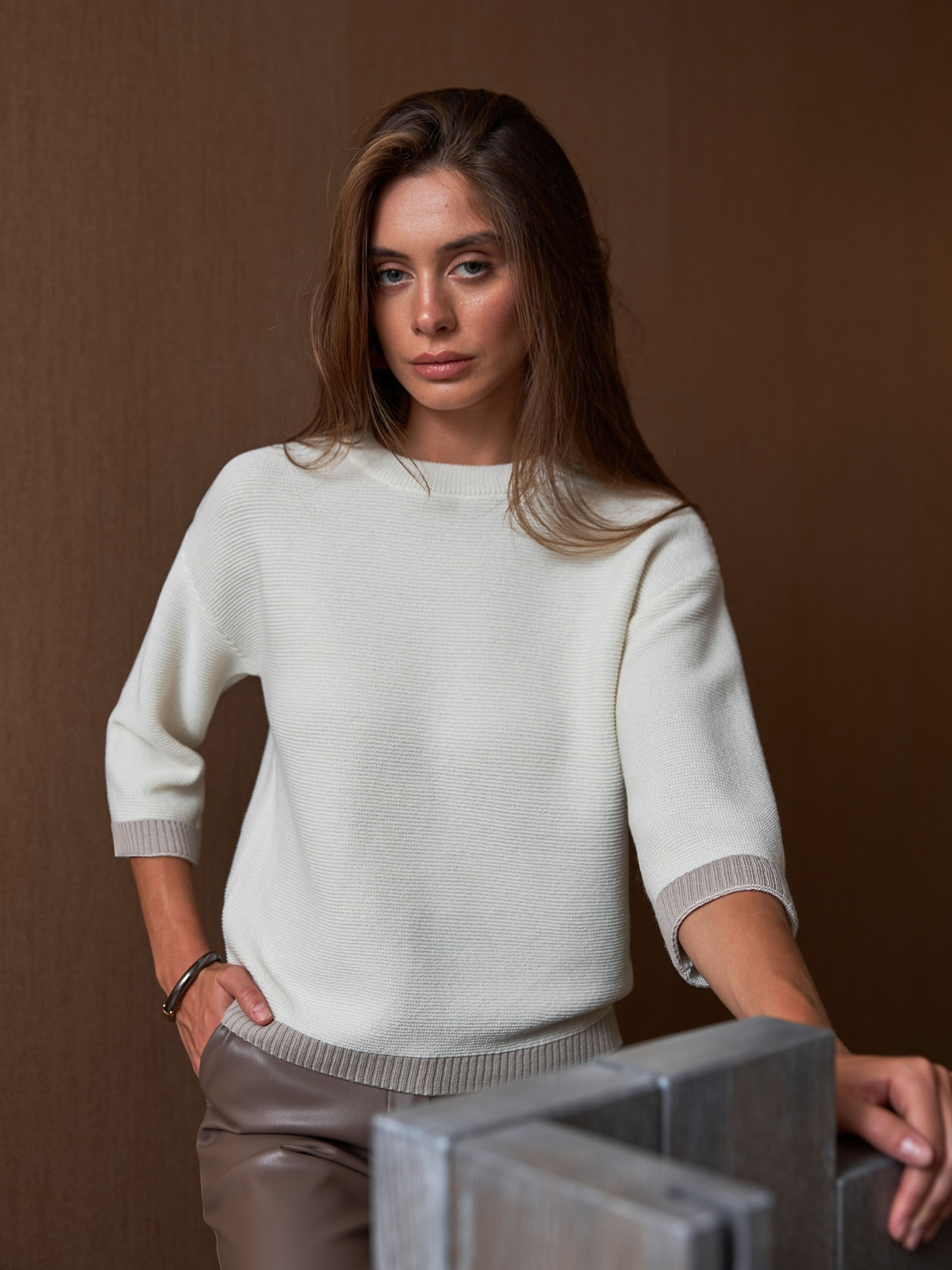 Джемпер TrikoBakh модель 2791-molochnij-z-naturalxnim