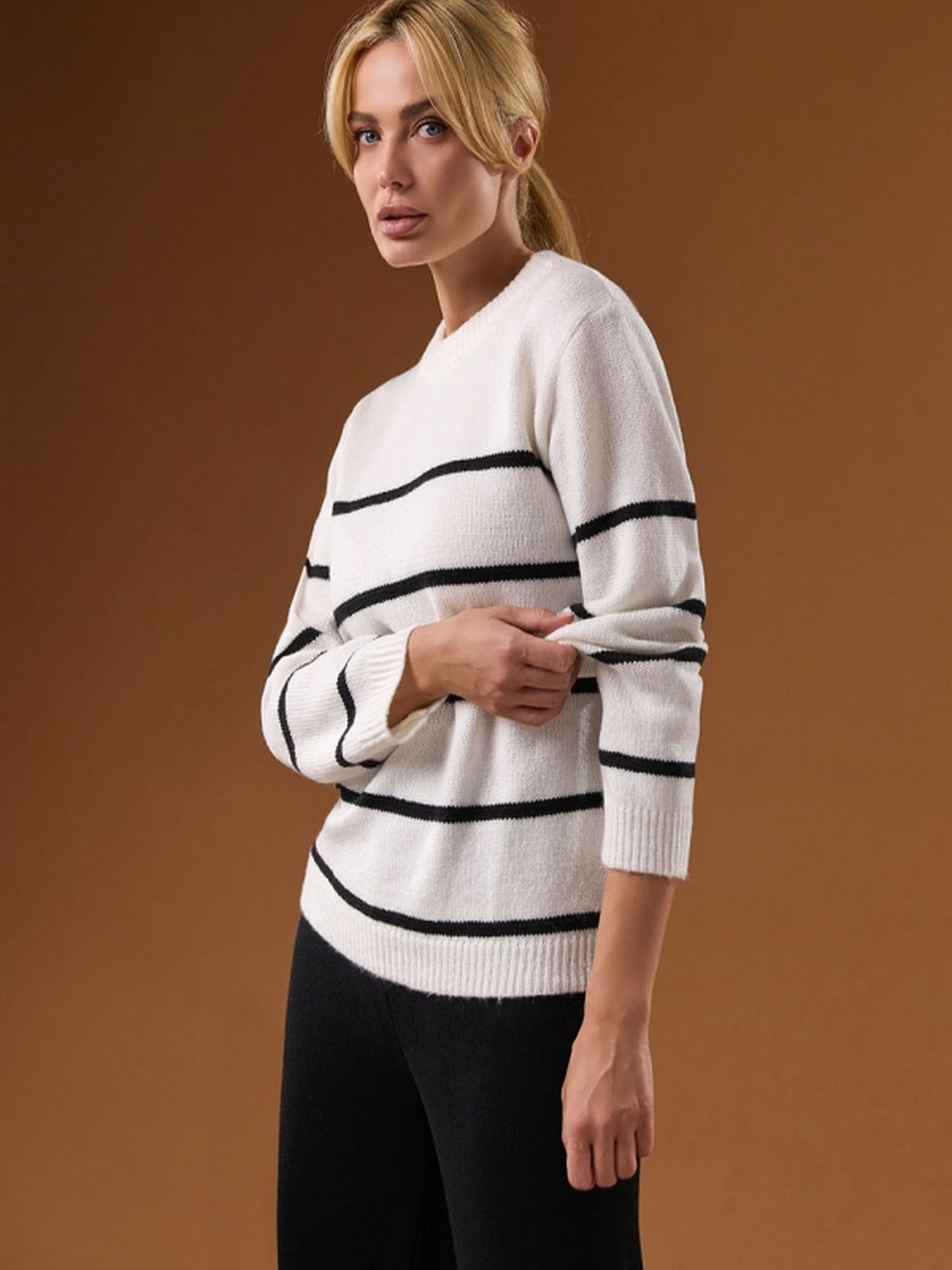 Джемпер TrikoBakh модель 2786-blij-z-chornim ФотоДжемпер TrikoBakh модель 2786-kemel-z-chornim Фото