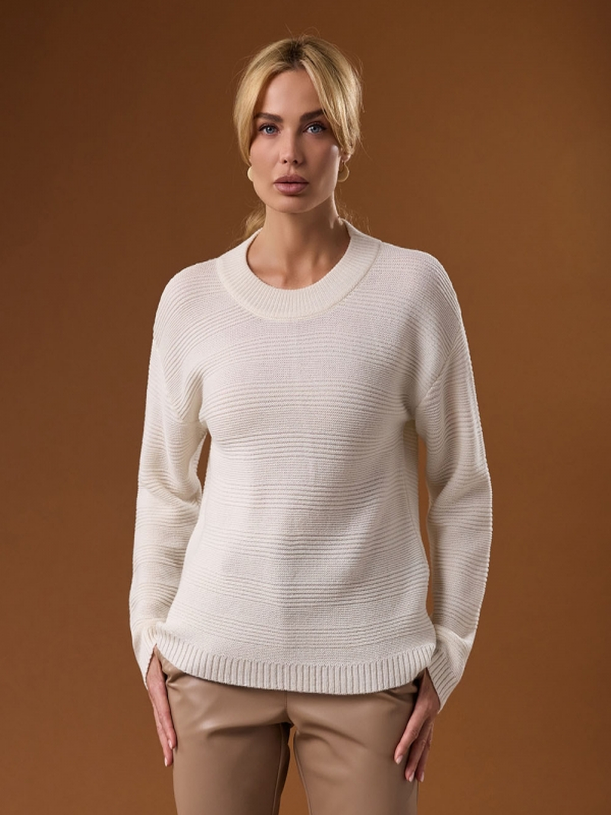 Елегантний джемпер з натуральної вовни – ваш вибір для тепла та стилю! Насолоджуйтесь неперевершеним комфортом та теплом з нашим новим джемпером, виготовленим з високоякісної натуральної вовняної пряжі. Трендовий малюнок у горизонтальну смужку додає образу стильності та оригінальності. Переваги: Натуральна вовняна пряжа преміум-якості: м'яка, тепла, приємна до тіла. Трендовий малюнок у горизонтальну смужку: додає образу стильності та актуальності. Тонкий та теплий: ідеальний вибір для прохолодної погоди. Універсальний дизайн: легко поєднується з будь-яким одягом, від джинсів до спідниць. Характеристики: Матеріал: 100% натуральна вовна Дизайн: горизонтальна смужка Довжина: 58-61 см (+- 2 см) Ширина під проймою: 48-53 см (нерозтягнутий стан), 58-63 см (розтягнутий стан) Ширина у талії: 46-51 см (нерозтягнутий стан), 56-61 см (розтягнутий стан) Ширина по низу: 45-50 см (нерозтягнутий стан), 55-60 см (розтягнутий стан) Довжина рукава: 52-51 см Ширина плеча: 14,5-17,5 см