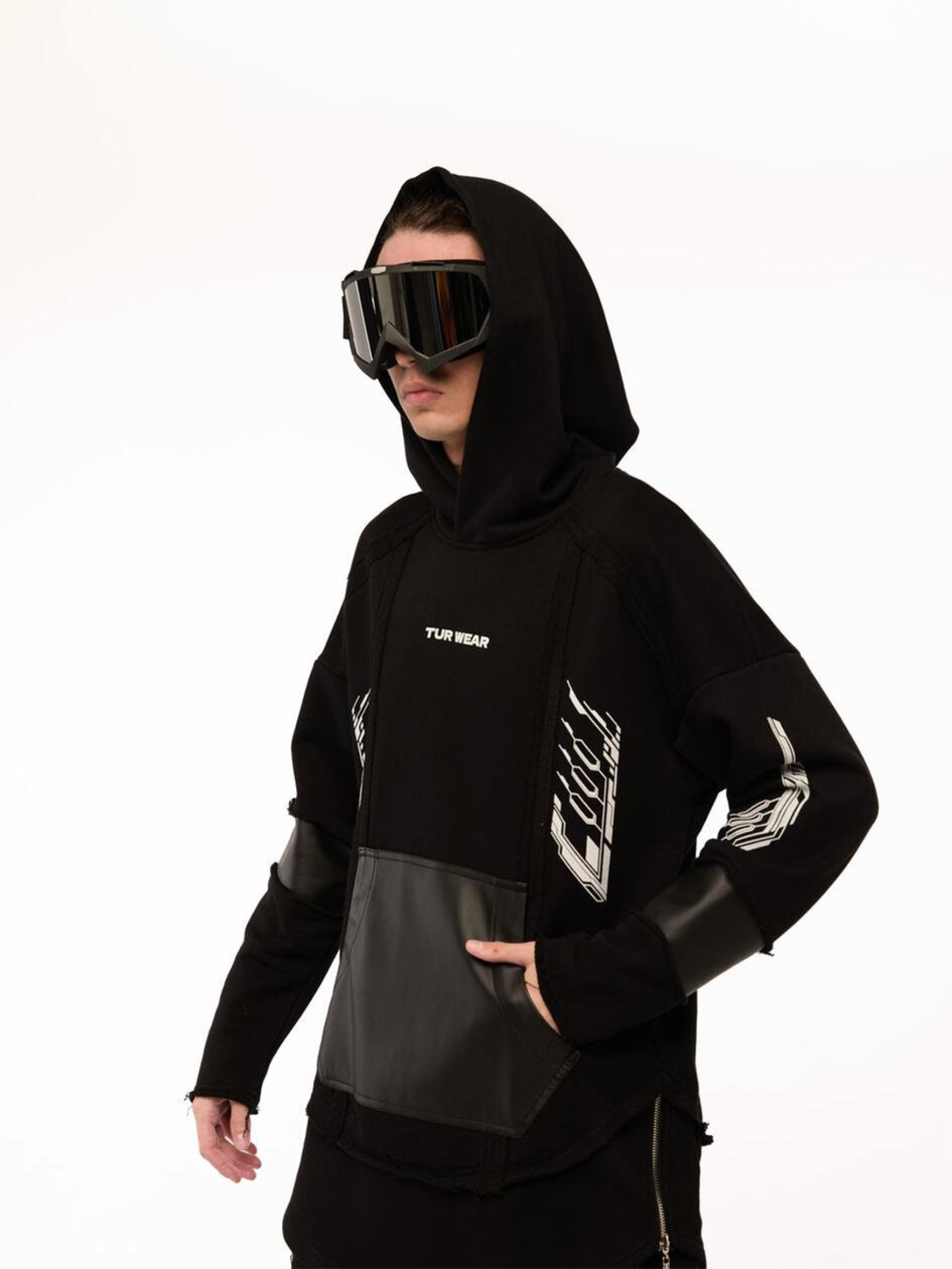 TUR: роботизированные и независимые производители одежды из Харькова. Свой путь начали в 2015 году, после вспышки войны на Востоке Украины. Это событие продиктовало милитаристский дух, которым пронизаны коллекции бренда. А с остальным мы сочетали воинственный настрой и модернизм в новые стили: теквир, киберпанк и варкор.