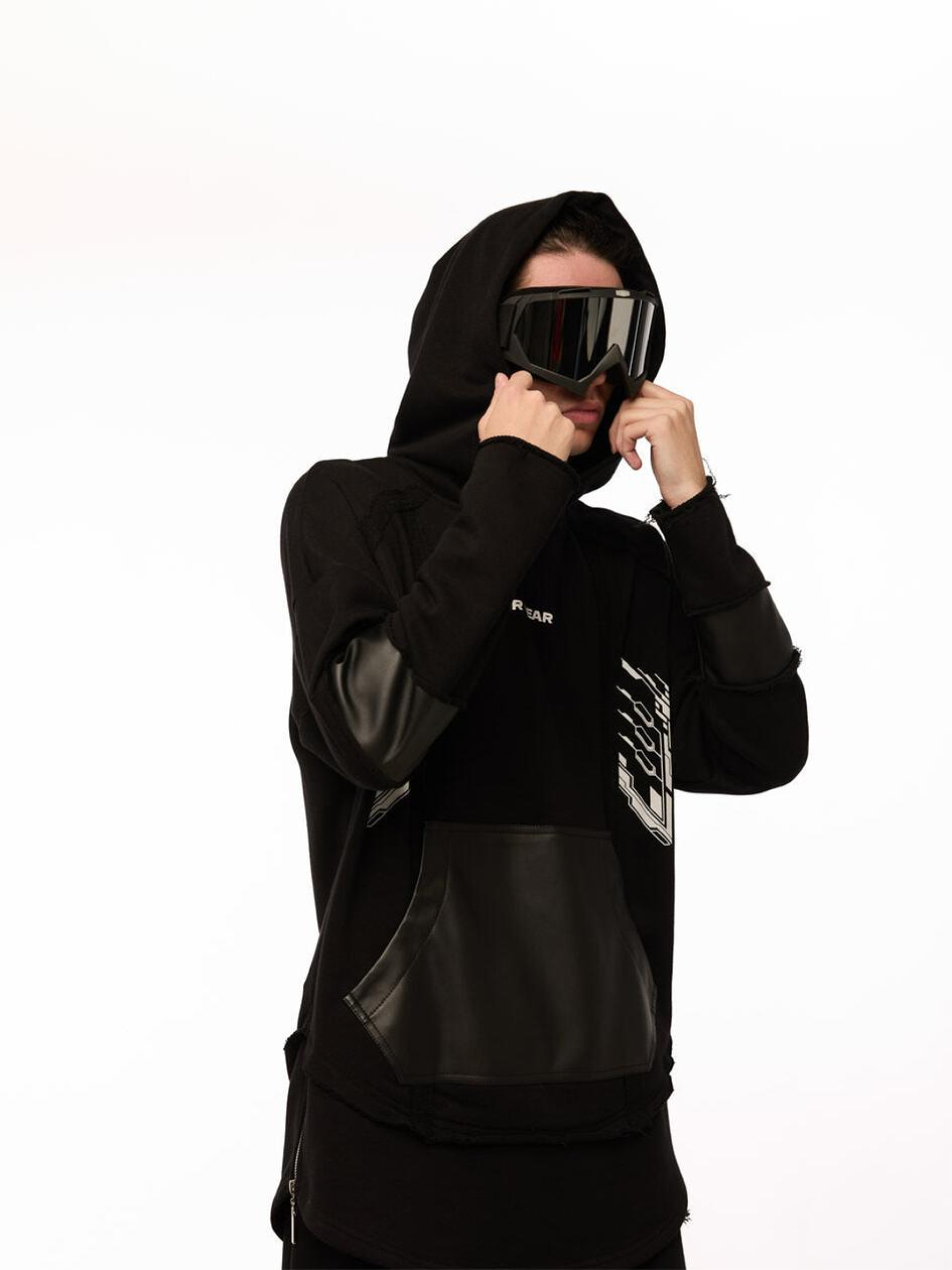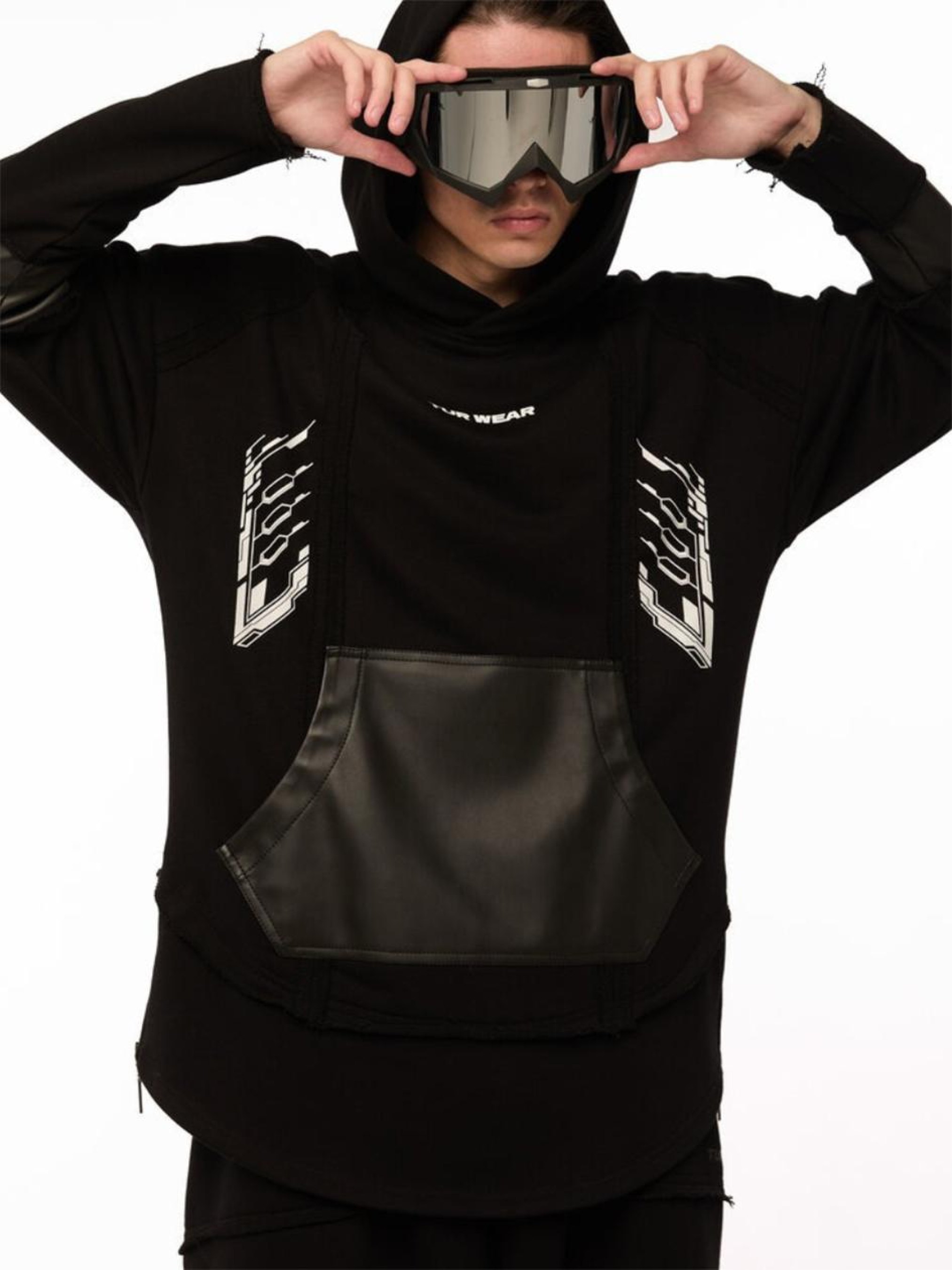 Состав ткани: Основная ткань: 85% коттон, 15% полиэстер. Вставки: искусственная кожа (100% полиэстер). Особенности материалов и фурнитуры: Тринитка - плотный трикотаж, сочетающий мягкость хлопка с износостойкостью полиэстера. Комфортная к телу, неэластичная, хорошо держит форму. Вставки из искусственной кожи имеют гладкую поверхность, добавляют контраста и усиливают зоны с повышенной нагрузкой. Ключевые особенности модели: Худи оверсайз кроя с декоративными швами, необработанными краями и многослойной конструкцией - для тех, кто выбирает бунт как стиль. Накладной карман и вставки на рукавах из искусственной кожи добавляют агрессивного акцента. Двойной низ: верхний слой - с сырым краем, нижний - подшитый с разрезами, в которые вшиты металлические молнии. Пять белых принтов: на переде, спине и рукаве - манифест визуальной силы. Объемный капюшон с отсылкой к силуэту мантии - будто готовит к трансформации. Стрит, кибер и дух самурая - в одном изделии. Сопутствующие товары: Шорты SM-2416, Брюки карго с сумками SM-2411 Рекомендации по уходу: Машинная стирка при макс. 30 ºC с коротким циклом отжима Нельзя использовать щелочные средства / отбеливатель Химчистка запрещена Можно использовать сушилку