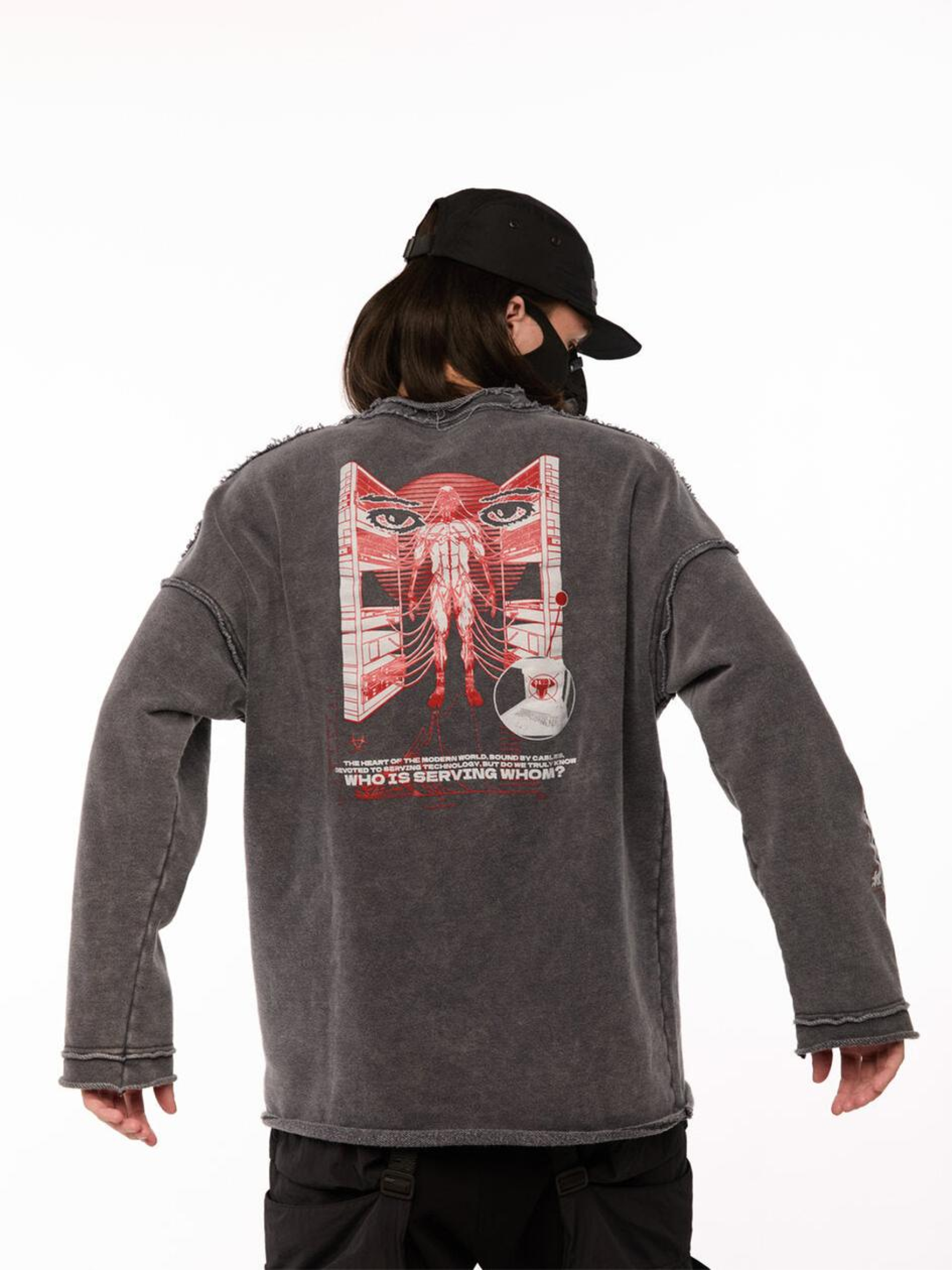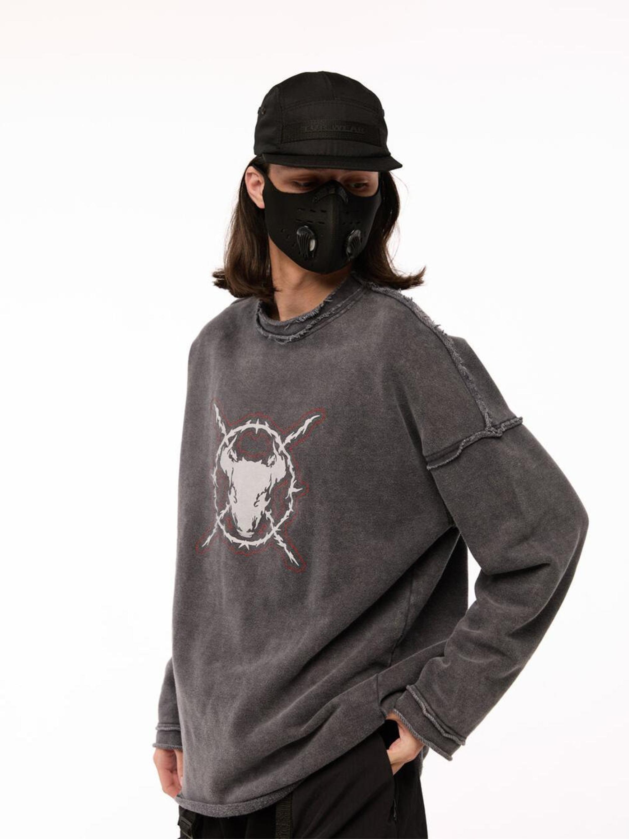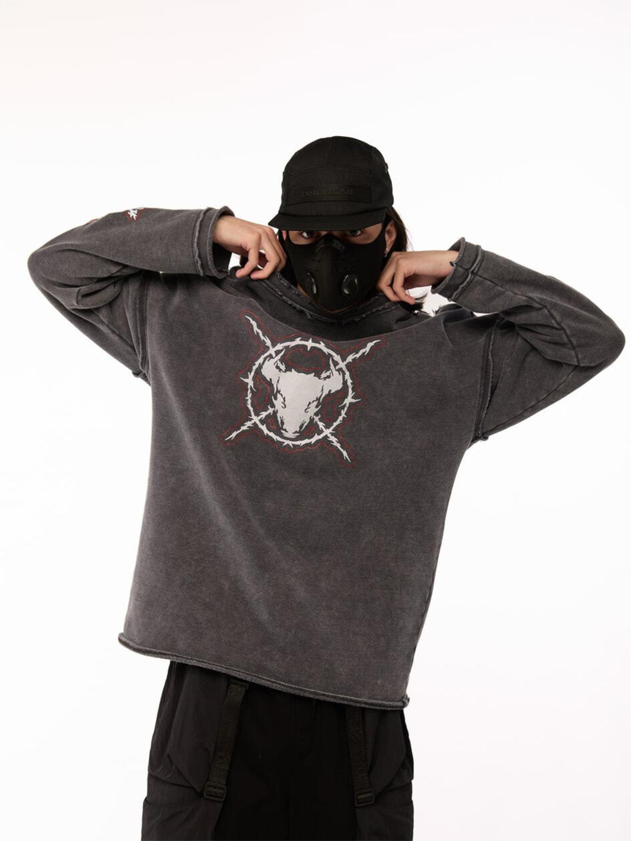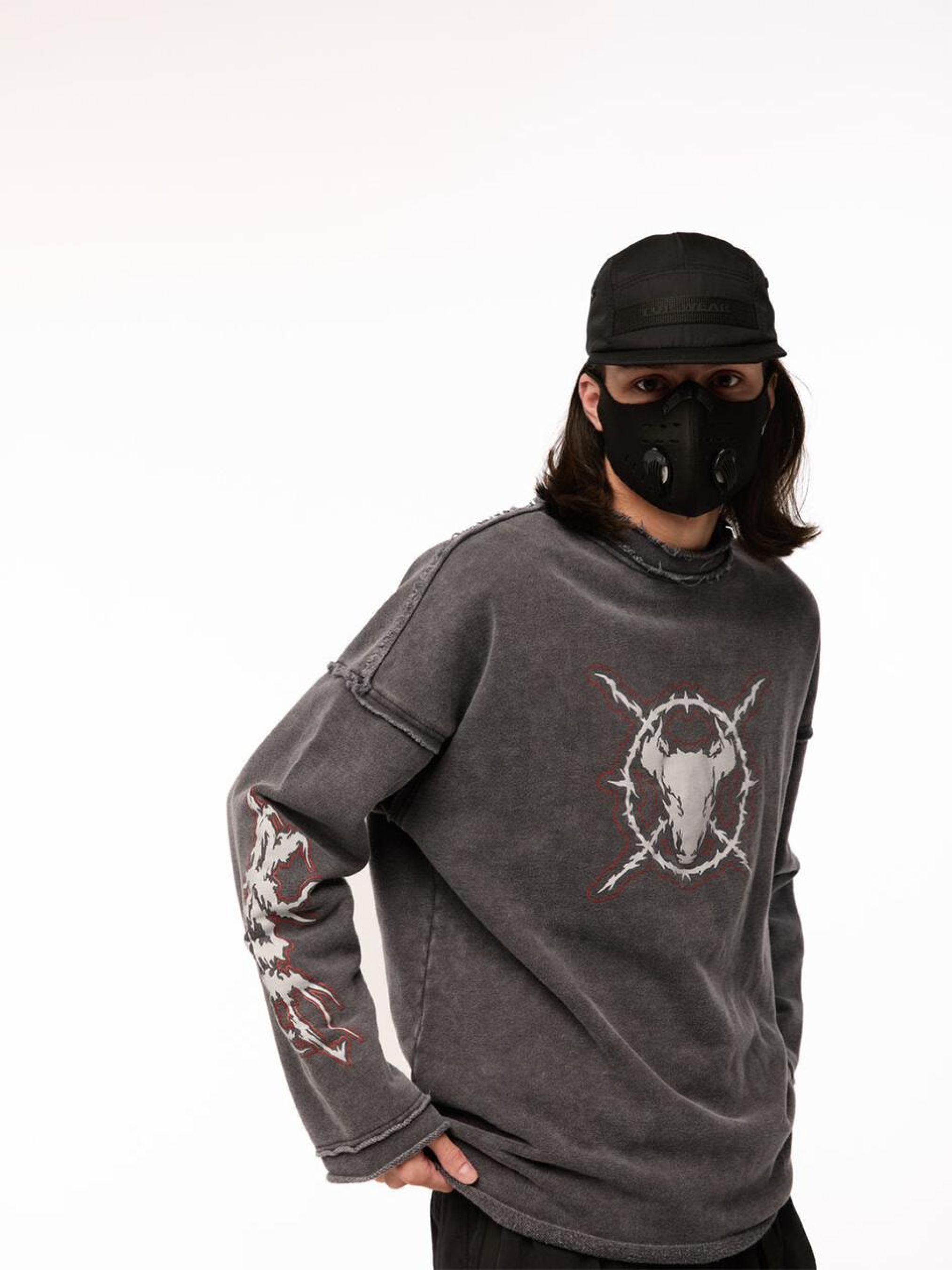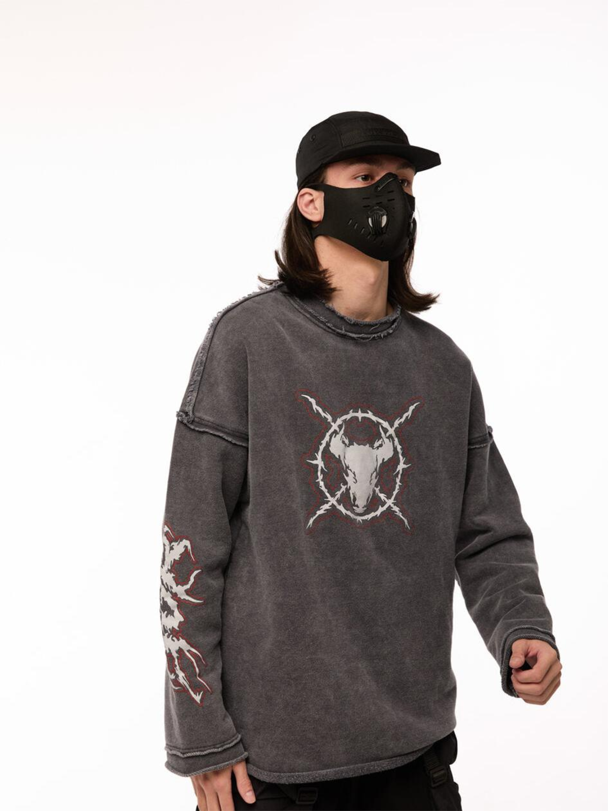 Состав ткани: 95% коттон, 5% полиэстер. Особенности материалов и фурнитуры: Тринитка с предварительной промышленной стиркой - плотный трикотаж, прошедший обработку для уменьшения усадки и достижения стабильной формы. Ткань мягкая на ощупь, комфортная, хорошо дышит и устойчива к износу. Стирка на производстве обеспечивает легкий винтажный эффект и готовность к носке без дополнительной усадки после покупки. Ключевые особенности модели: Вываренный лонгслив свободного кроя с круглым воротником и необработанными краями - будто из арсенала постапокалиптического рейдера. Спущенное плечо добавляет расслабленного вайба, но в образе читается уверенность. Три принта - на груди, спине и рукаве - формируют целостный графический язык. Создан для тех, кто не играет по правилам, а придумывает свои. Рекомендации по уходу: Машинная стирка при макс. 30 ºC Нельзя использовать отбеливатель Глажка при макс. 150 ºC Химчистка запрещена< Можно сушить в сушилке при низкой температуре
