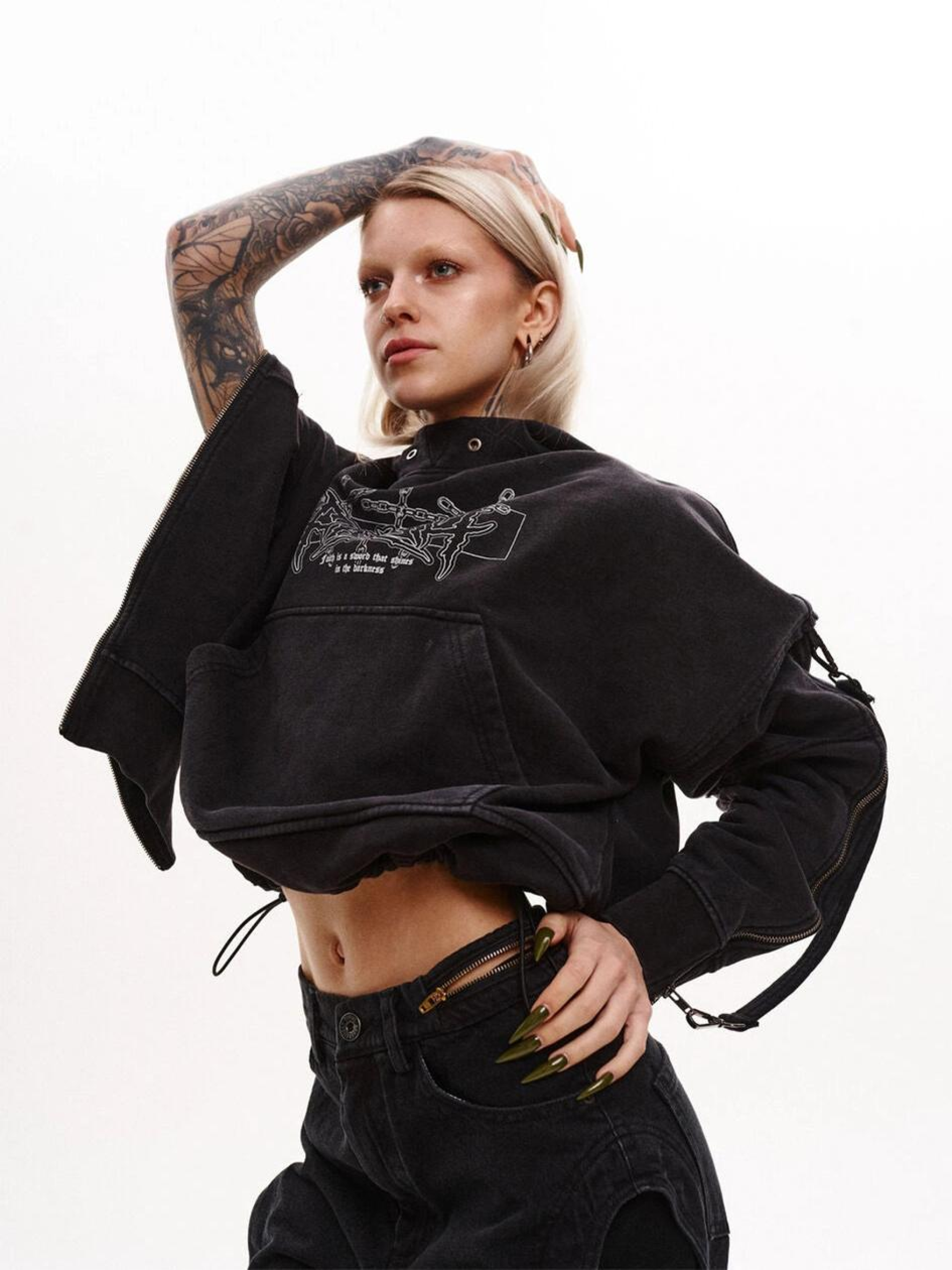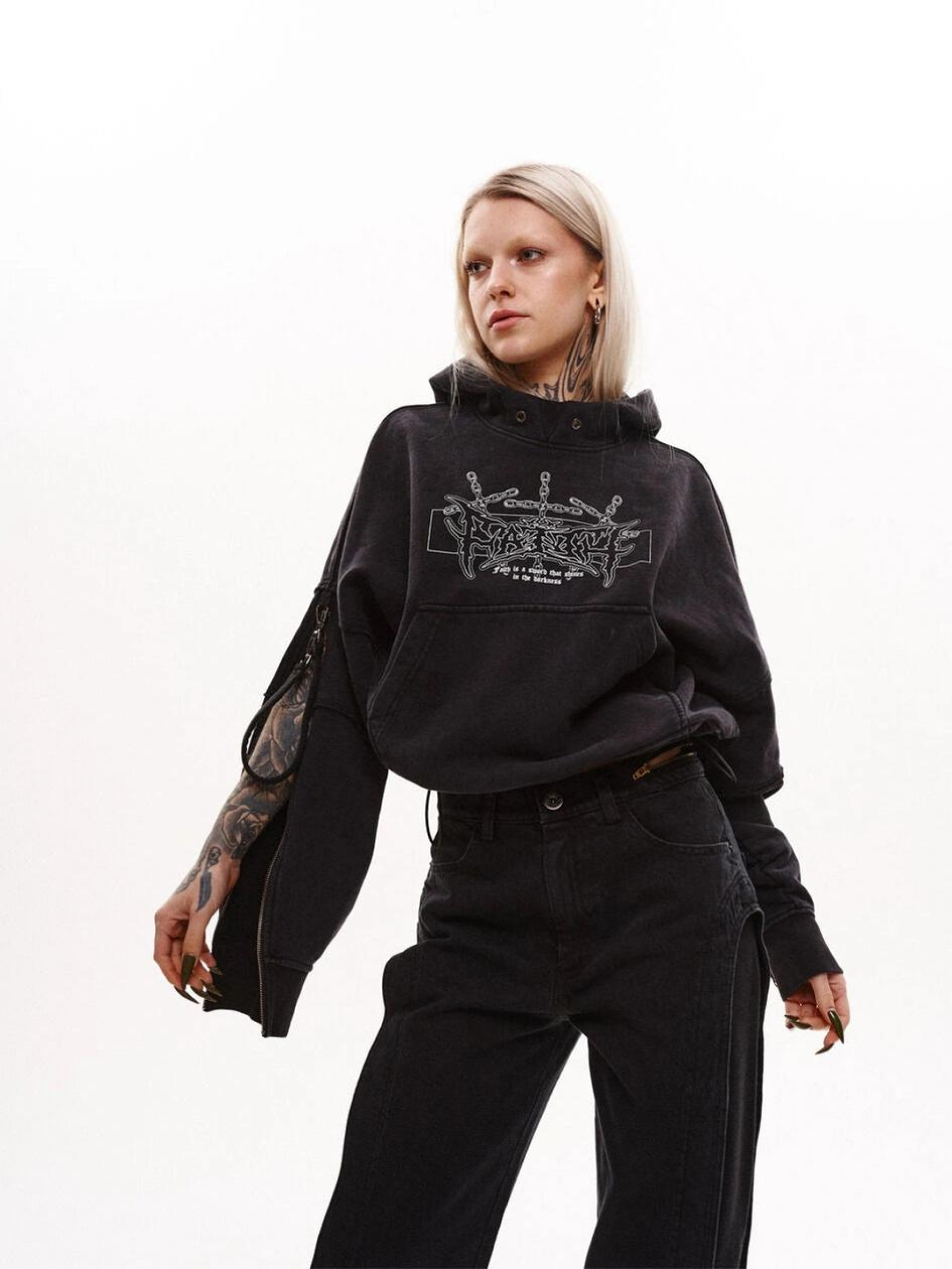 TUR: роботизированные и независимые производители одежды из Харькова. Свой путь начали в 2015 году, после вспышки войны на Востоке Украины. Это событие продиктовало милитаристский дух, которым пронизаны коллекции бренда. А с остальным мы сочетали воинственный настрой и модернизм в новые стили: теквир, киберпанк и варкор.
