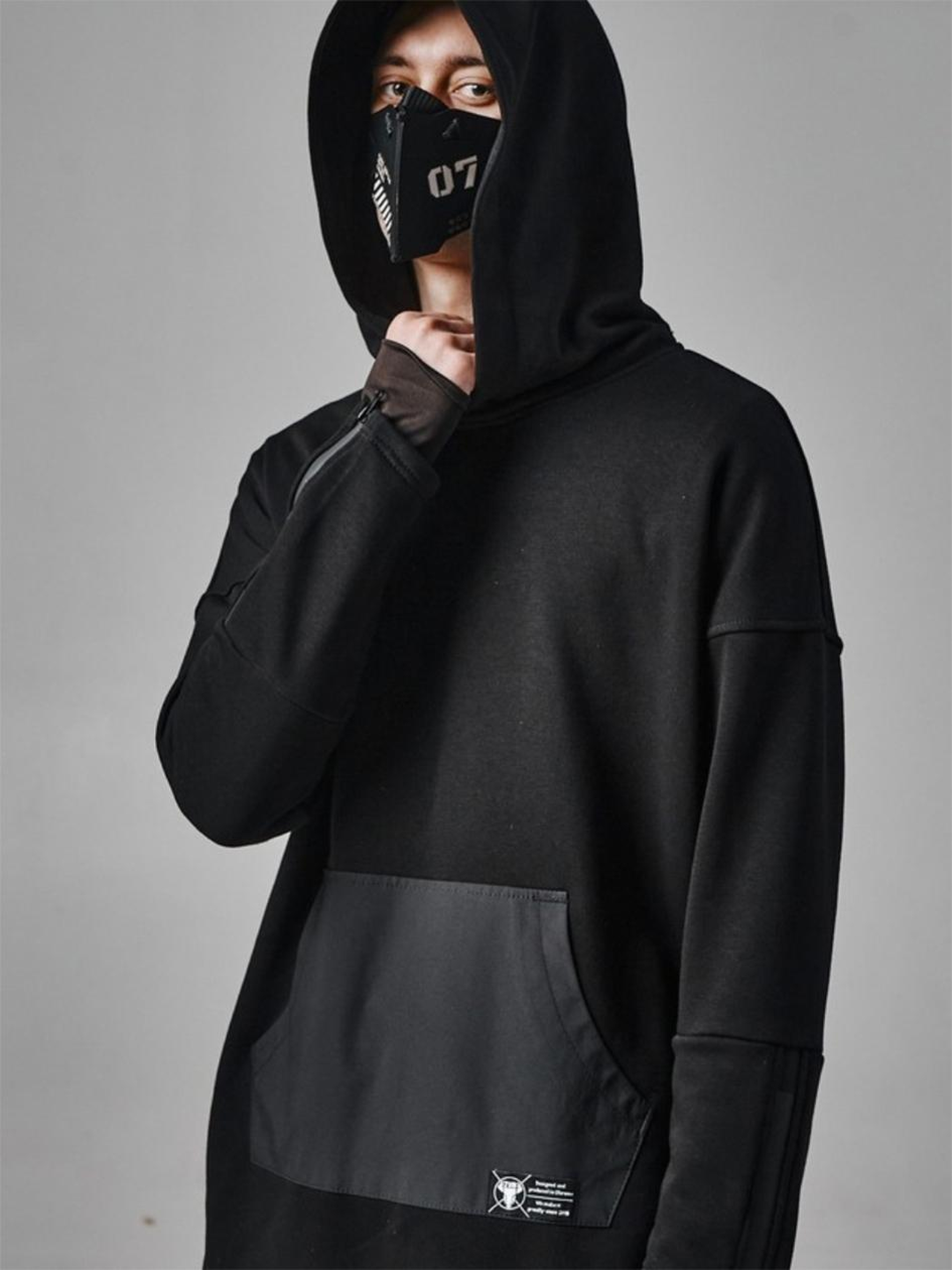 Состав ткани: Основная ткань: 80% хлопок, 20% полиэстер. Карман: 100% полиэстер. Внутренний рукав: 80% полиэстер, 20% эластан. Особенности материалов и фурнитуры: Основная ткань - плотная трикотажная база с преобладанием хлопка, обеспечивающая комфорт и дышащие свойства. Примесь полиэстера повышает прочность и стабильность формы. Карманы выполнены из гладкого полиэстера для износостойкости. Внутренний рукав с добавлением эластана - эластичный, прилегает к руке, создавая дополнительную термоизоляцию и удобство в носке. Ключевые особенности модели: Худи с удлиненным силуэтом, созданное для городских воинов. Глубокий двойной капюшон - как шлем, защищающий от шума внешнего мира. Вставки из техматериалов, боковые разрезы для удобного доступа к накладному карману и анатомический внутренний рукав с эффектом «перчатки» - каждая деталь работает на комфорт и мобильность. Молнии на рукавах добавляют трансформативности и стиля. Это худи - твоя оболочка в мире, который постоянно меняется. Рекомендации по уходу: Машинная стирка при максимальной температуре 30 ºC с коротким циклом отжима. Не использовать щелочные средства или отбеливатель. Можно сушить в сушилке при низкой температуре. Химчистка запрещена.