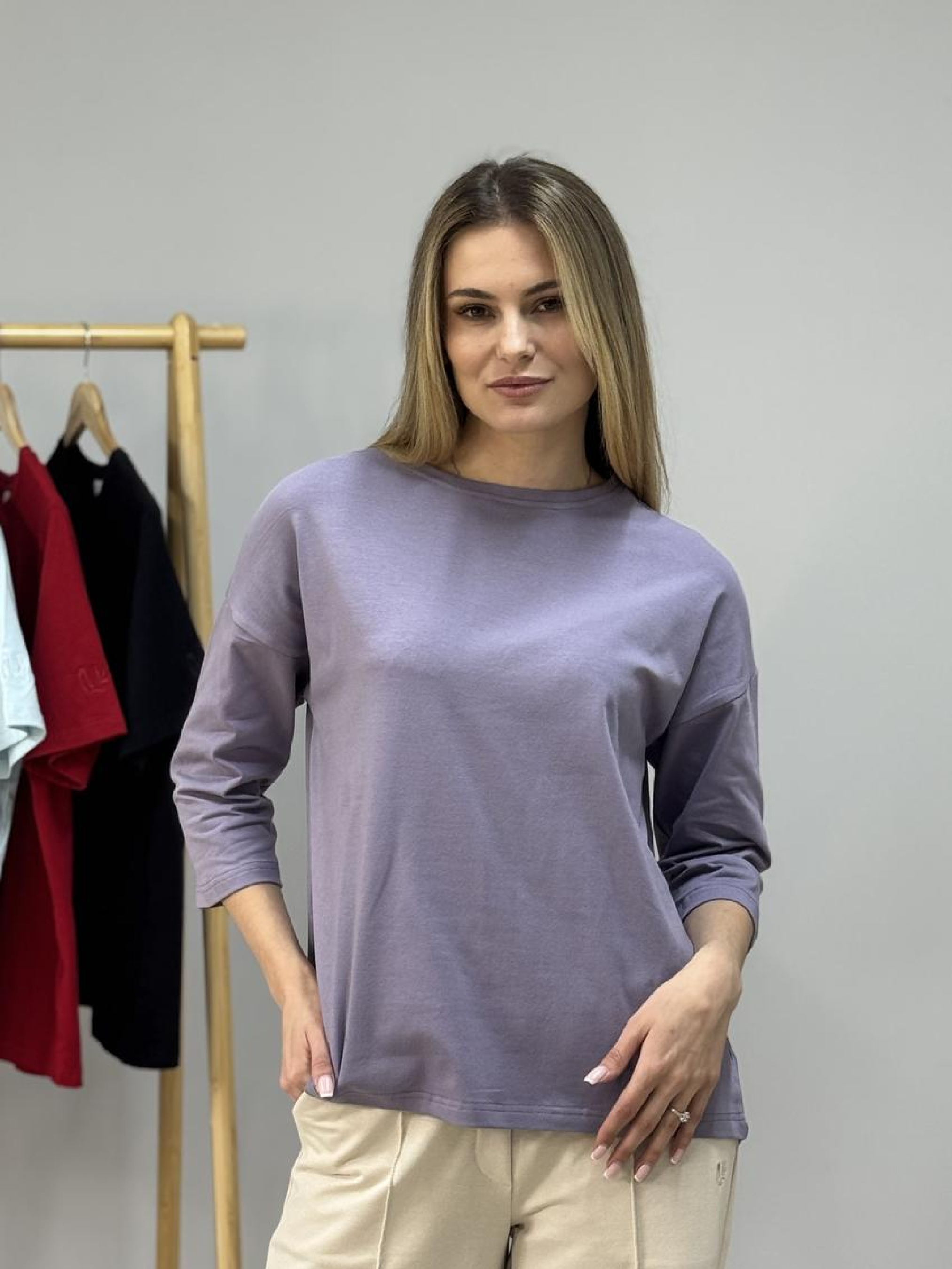 Женская кофта-лонгслив с рукавом 3/4 свободного кроя — элегантная непринужденность для любого образа Стильная и удобная кофта-лонгслив с рукавом 3/4 — это идеальное сочетание комфорта, легкости и современного дизайна. Свободный крой придает изделию непринужденность, подчеркивает женственность и позволяет чувствовать свободу движений в любой ситуации. Рукав 3/4 — универсальное решение для межсезонья и теплых дней, когда хочется выглядеть стильно и при этом чувствовать себя комфортно. Благодаря лаконичному дизайну, кофта легко сочетается с джинсами, брюками, шортами или юбками, позволяя создавать как casual-образы, так и более элегантные луки. Выполнена из приятного к телу материала, который обеспечивает дышащий эффект и комфорт в течение всего дня. Идеально подходит для прогулок, офиса, встреч с друзьями или путешествий. Преимущества: Современный свободный крой, подходящий для любой фигуры Удобный рукав 3/4 — идеально для демисезона Легкая и универсальная модель для разных случаев Комфортный, дышащий материал Легко сочетается с базовым гардеробом Выбирайте кофту-лонгслив с рукавом 3/4 — вашу универсальную вещь для стильных и комфортных образов на каждый день!