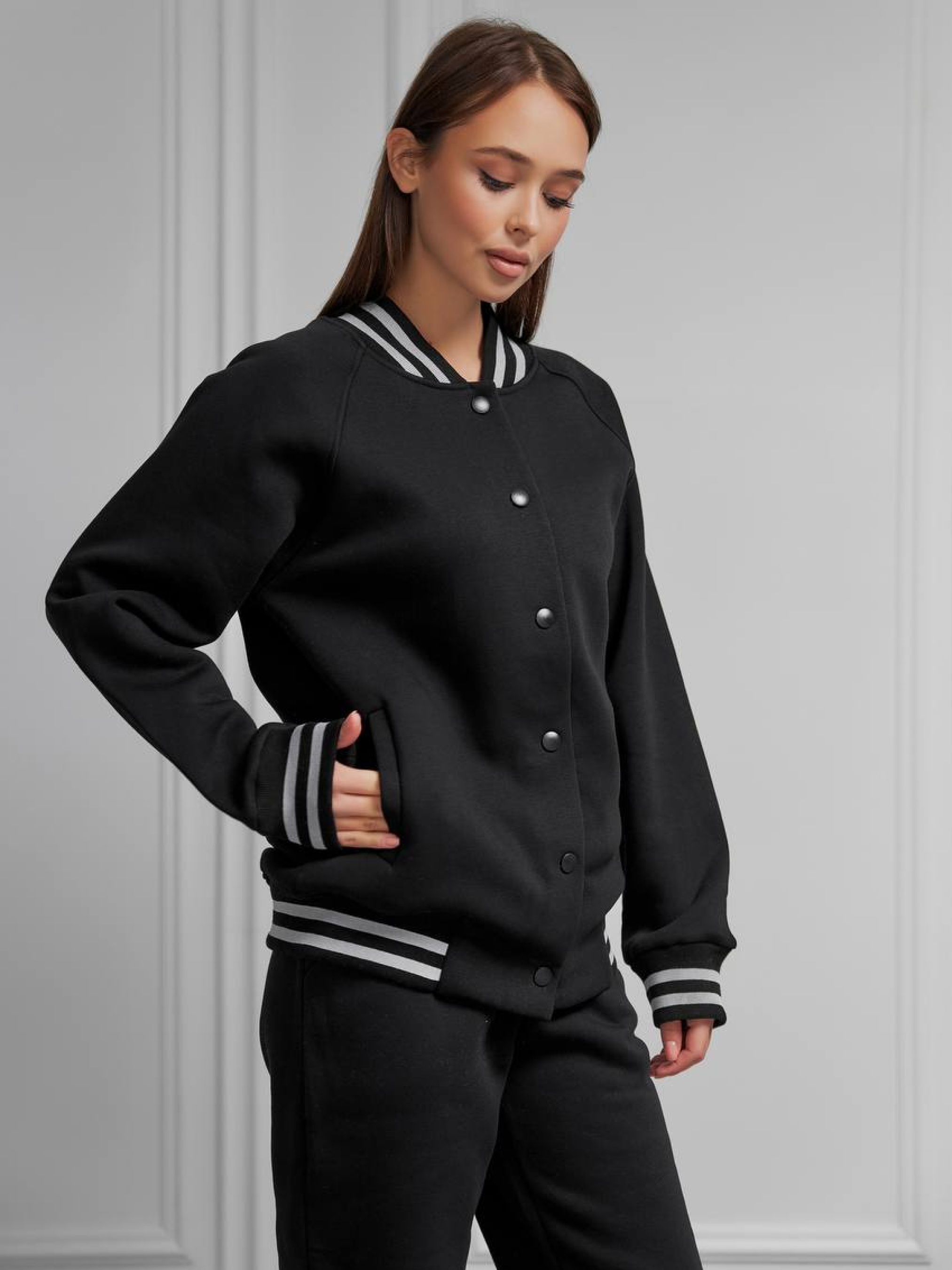Женский бомбер с начесом – стильный и теплый выбор на каждый день. Этот женский бомбер с начесом идеально подходит для прохладных дней, объединяя стиль и комфорт. Изготовлен из мягкой и теплой ткани, бомбер обеспечивает уют и удобство во время ношения. Модель имеет два практичных боковых кармана для хранения мелочей и застегивается на кнопки, что придает ему современный вид. Бомбер легко сочетается с джинсами, юбками или спортивными брюками, создавая модные и функциональные образы на любой день. Особенности: Теплый материал с начесом для дополнительного комфорта Два удобных боковых кармана Застежка на кнопках для легкости использования Универсальный дизайн для повседневных образов Этот бомбер станет вашим надежным спутником в холодную погоду, сочетая практичность и стиль!