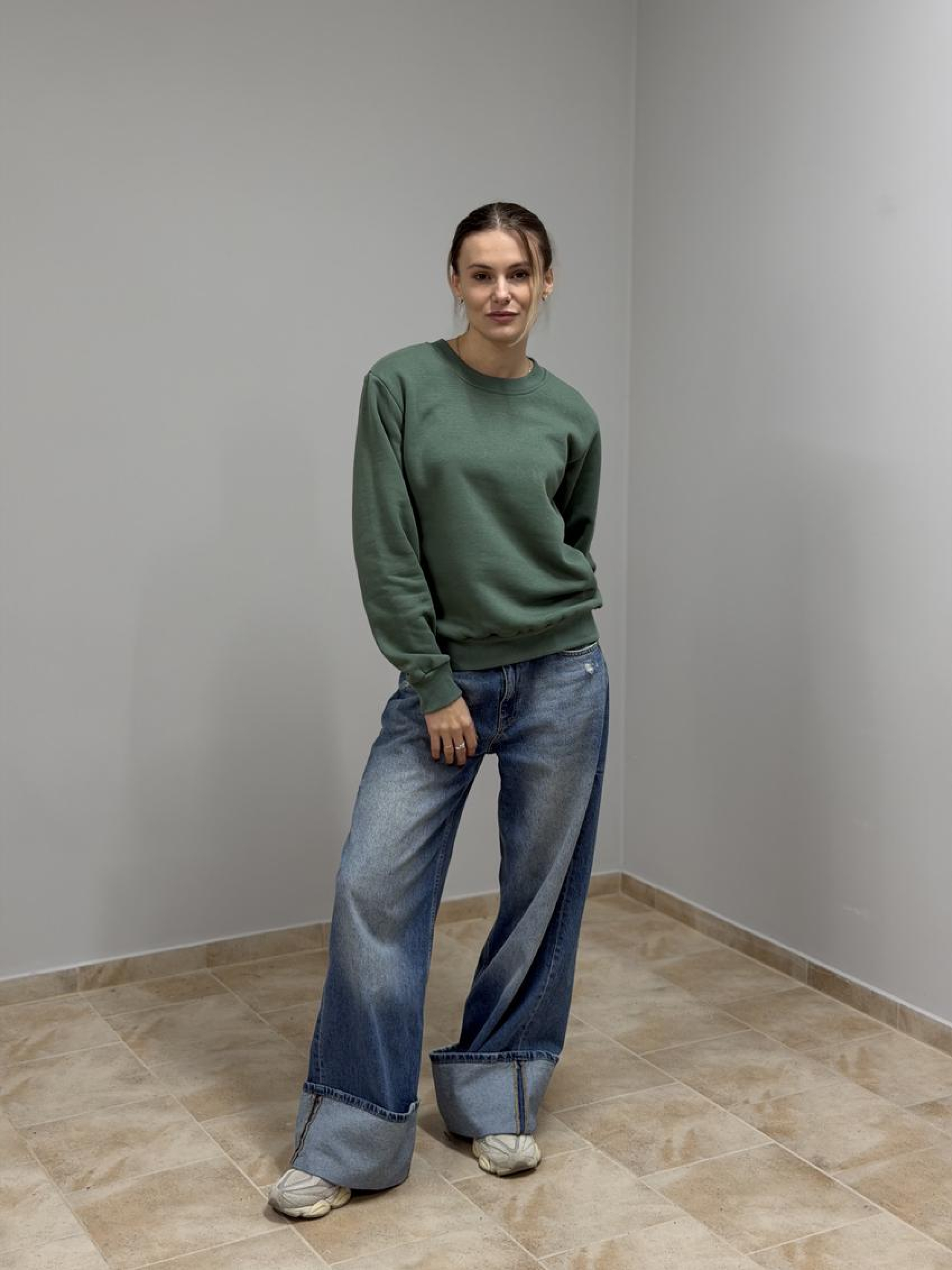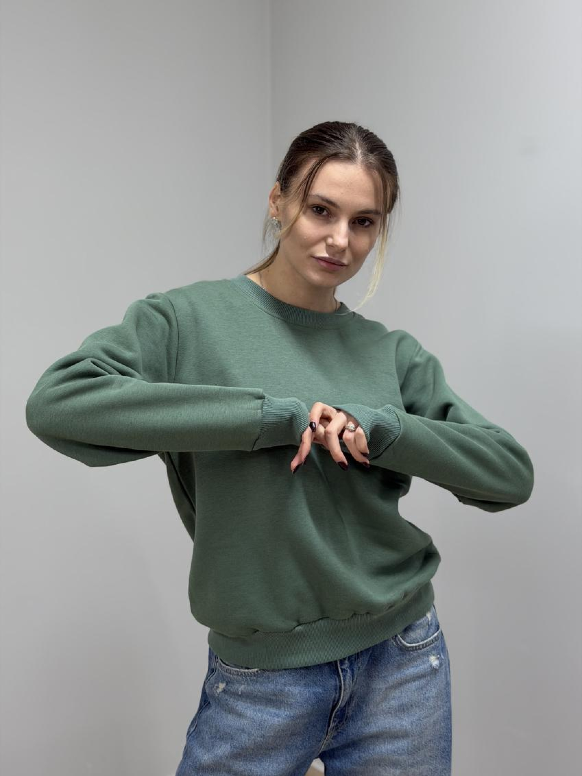 Свитшот женский с начёсом, однотонный Тёплый и мягкий базовый свитшот для повседневных образов. Внутренний начёс согревает, а плотный трикотаж держит форму и выглядит аккуратно после множества стирок. Преимущества Мягкий тёплый начёс изнутри — уют в прохладную погоду. Плотный трикотаж (футер/флис) не просвечивает и устойчив к пилингу. Женский комфортный крой: свободное плечо, достаточная длина. Округлая горловина с рибаной — держит форму и не растягивается. Эластичные манжеты и нижняя резинка формируют аккуратный силуэт. Усиленные швы и аккуратные закрепки — надёжность и долговечность. Однотонные базовые цвета — легко комбинировать с гардеробом. Детали кроя Свободная посадка без утяжеления, dropped-shoulder, аккуратная пройма и горловина, удобная длина для комфорта в движении. Состав и материал Хлопок/полиэстер (точные пропорции и плотность указаны на ярлыке партии). Внутри — мягкий начёс для дополнительного тепла и приятного ощущения к коже. Уход Стирка при 30 °C в деликатном режиме, вывернув изделие наизнанку. Не использовать отбеливатели и агрессивные средства. Сушить вдали от прямых источников тепла; барабанная сушка — щадящий режим. Гладить на низкой температуре через ткань, обходя принты.