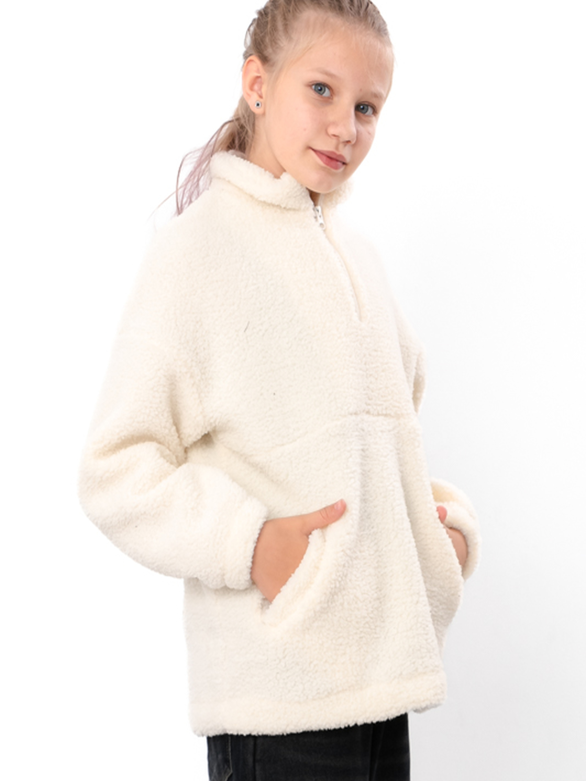 Полотно: штучне хутро баранчик однотонний Склад полотна: 30% вовна, 70% поліестер Зріст: 140-170 Дитячий джемпер для дівчинки із штучного хутра “баранчик” — ідеальний вибір для осені та зими. М’яке, об’ємне хутро забезпечує тепло, ніжність і комфорт, не викликає подразнень та є гіпоалергенним. Джемпер має вільний крій, високий комір-стійку на блискавці та кишеню кенгуру, що не сковує рухів і дозволяє активно проводити час. Однотонний дизайн легко комбінується з джинсами, лосинами або спортивними штанами. Виріб зберігає форму та колір навіть після багаторазового прання. Стильний, практичний і затишний, джемпер стане улюбленим елементом гардероба дівчинки для школи, прогулянок, подорожей та вихідних.
